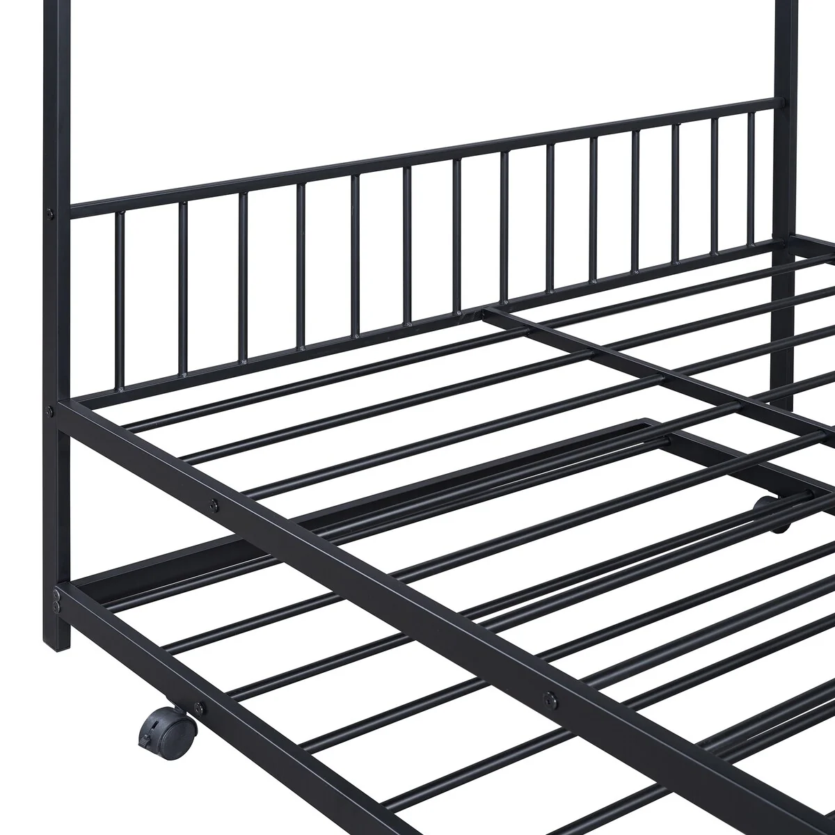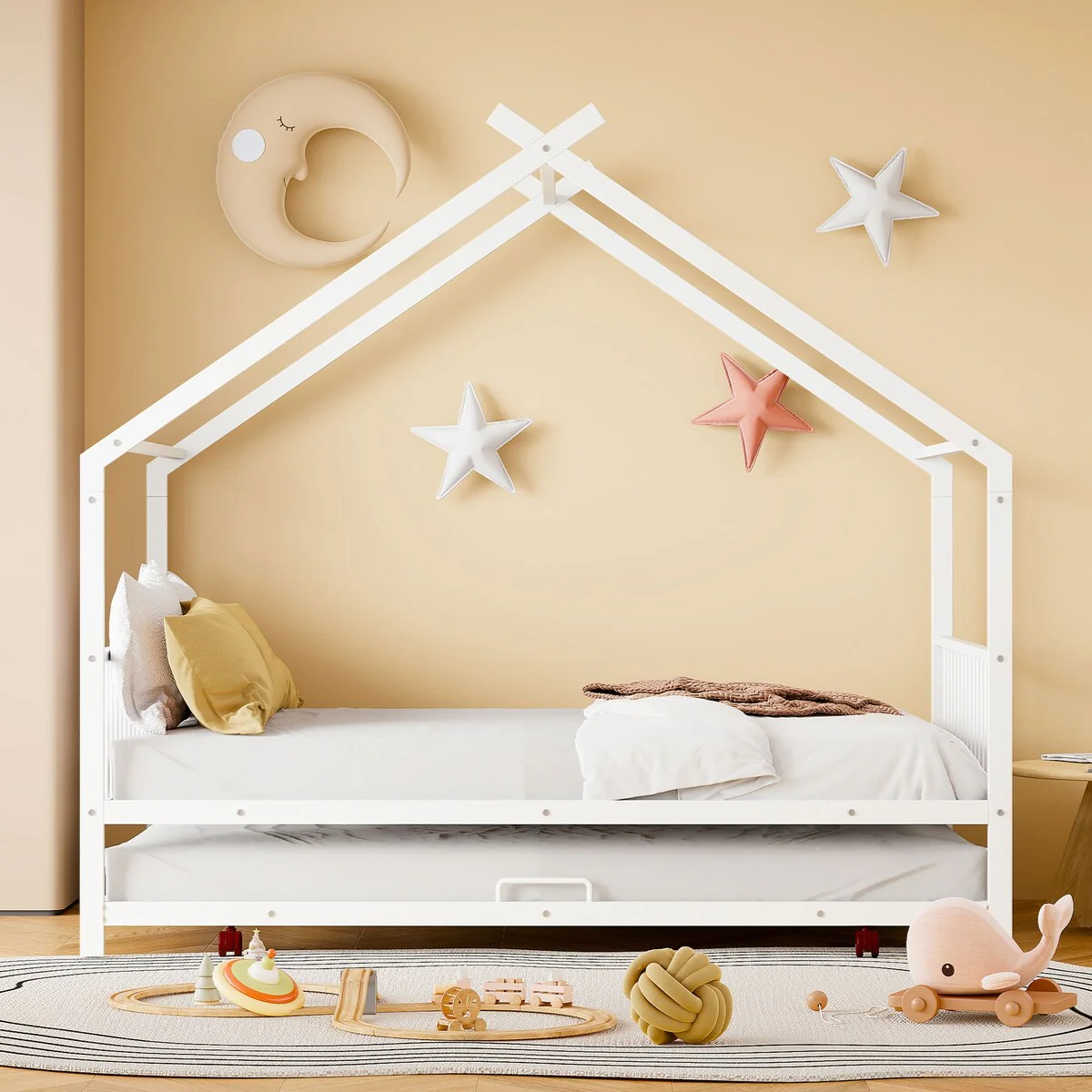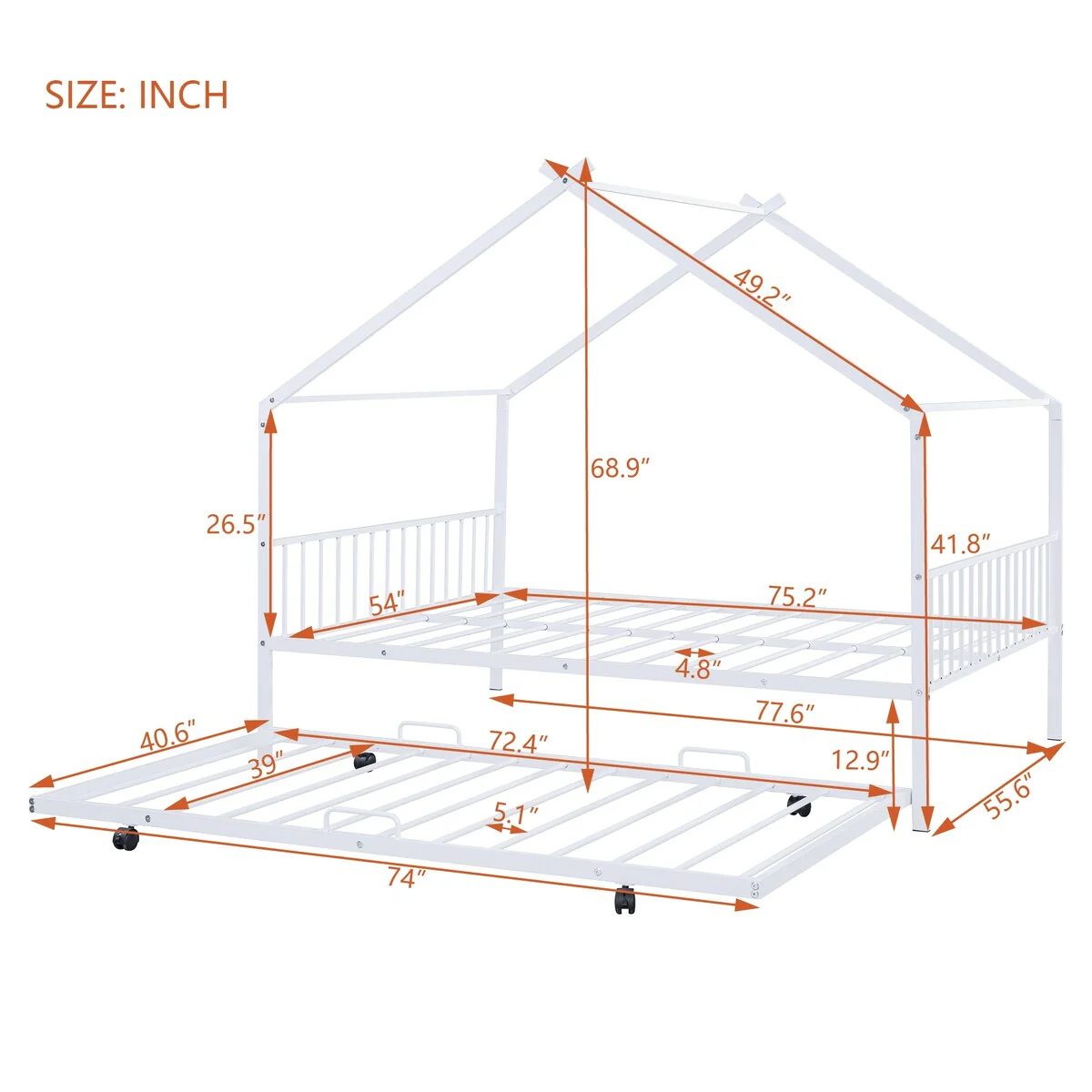 - [Superior Quality] The house bed is constructed with a sturdy metal frame that can enhance stability and durability. Slats are included, you don't need to prepare box springs or foundations.