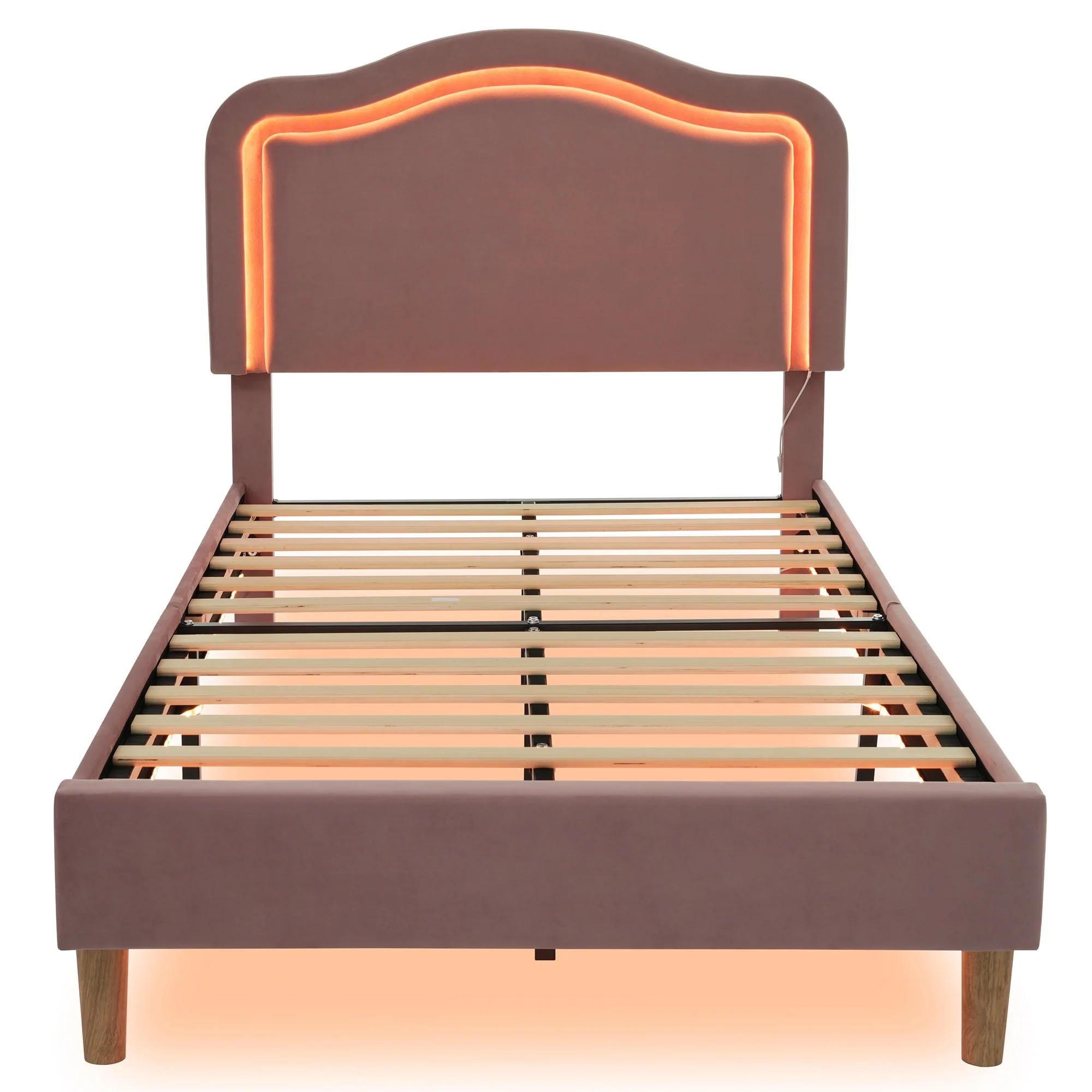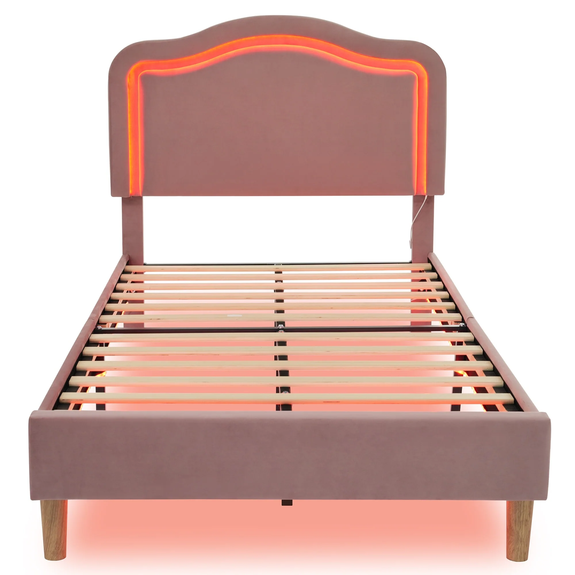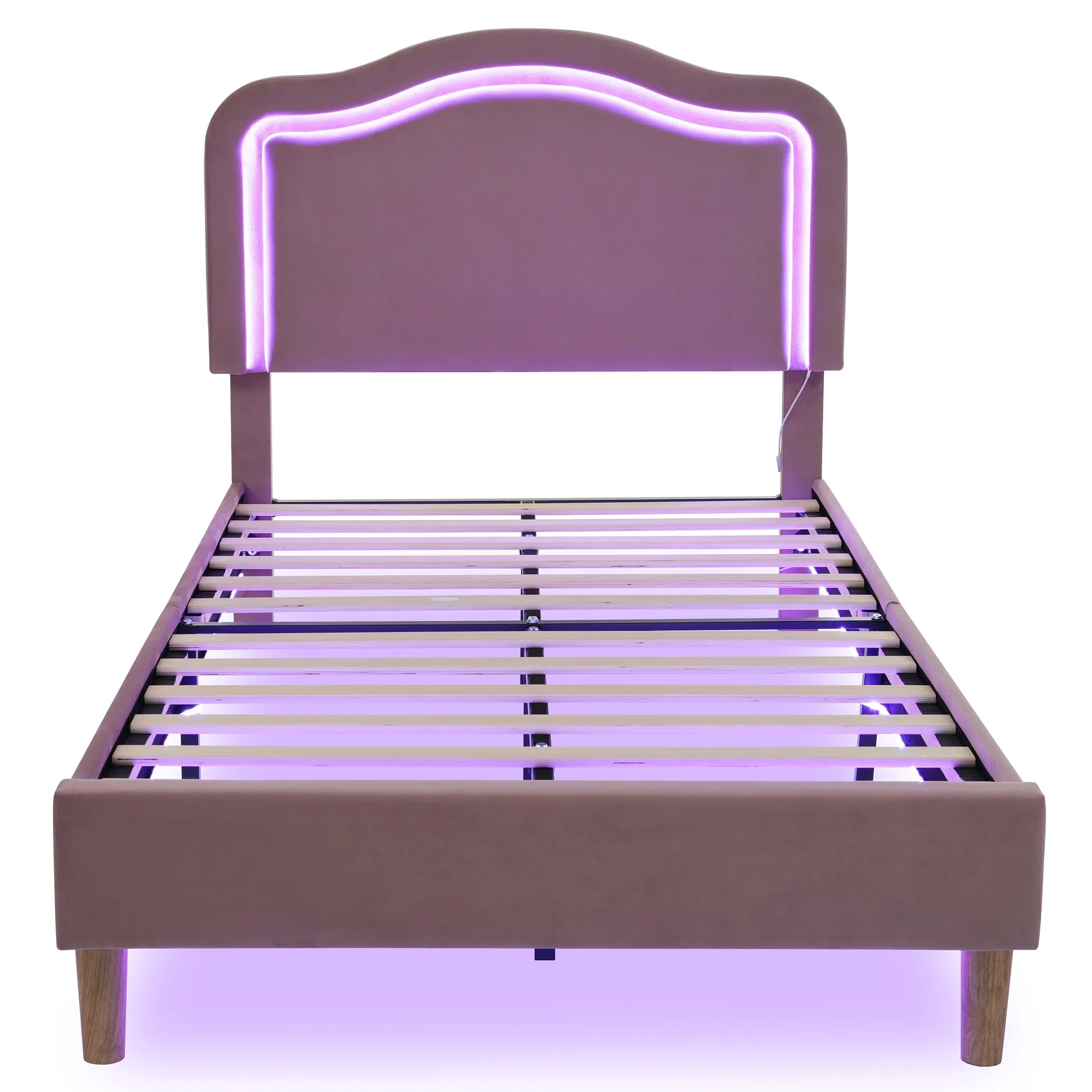 Transform Your Bedroom with Our LED Velvet Platform Bed Frame