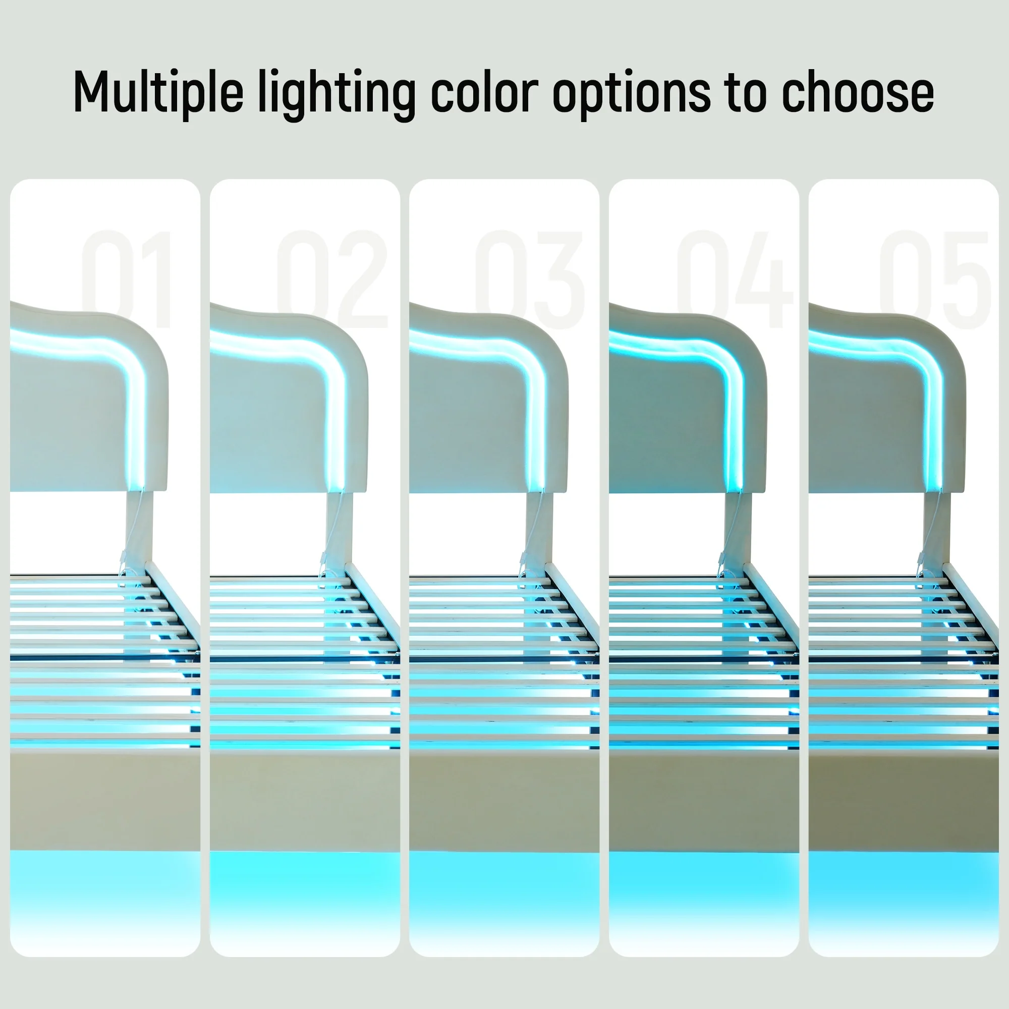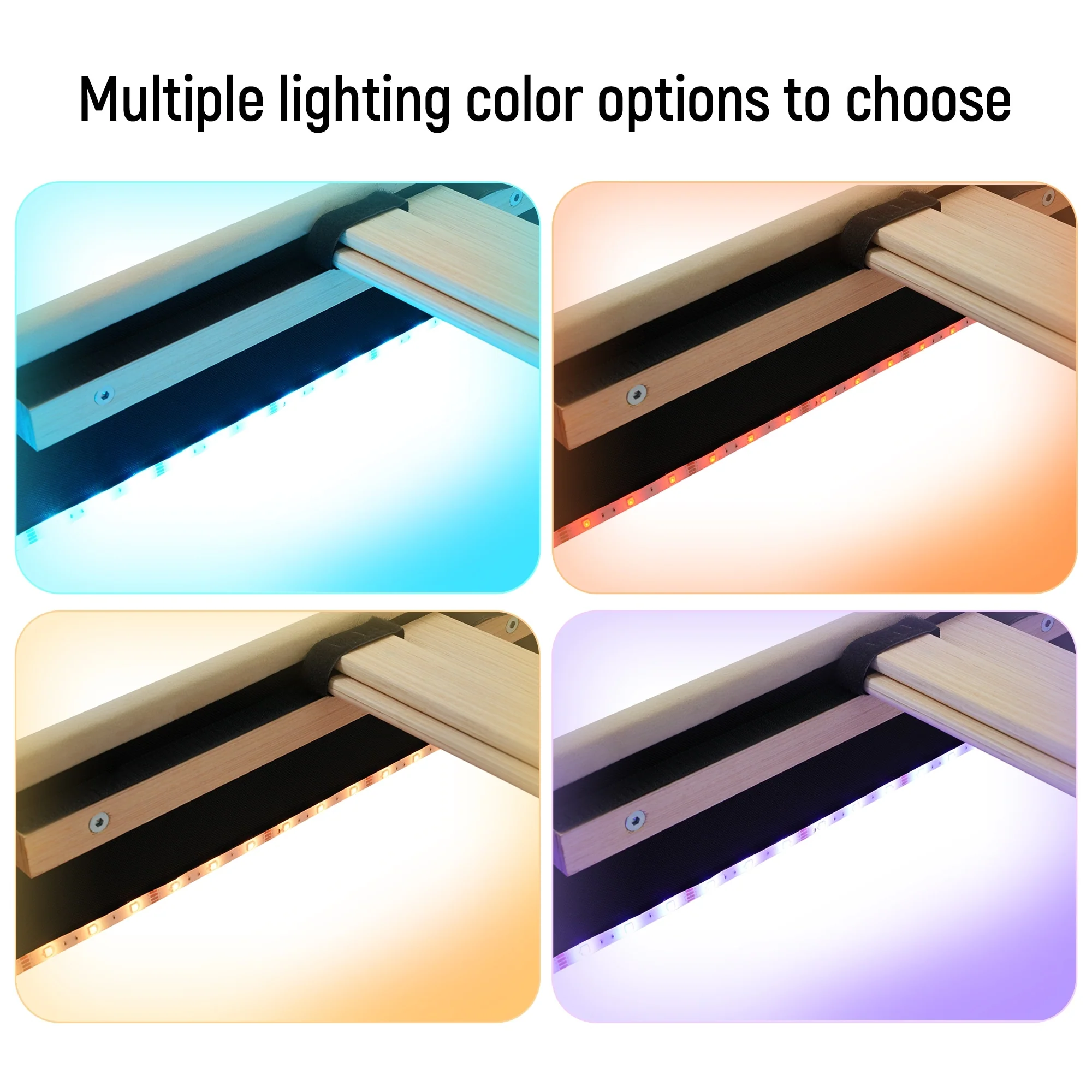 - Adjustable LED Lights: Customize your bedroom atmosphere with the built-in RGB LED lights on the headboard and around the bed frame. Adjust the color, brightness, and mode via the included remote control or smartphone app, creating captivating ambiances that suit your mood.