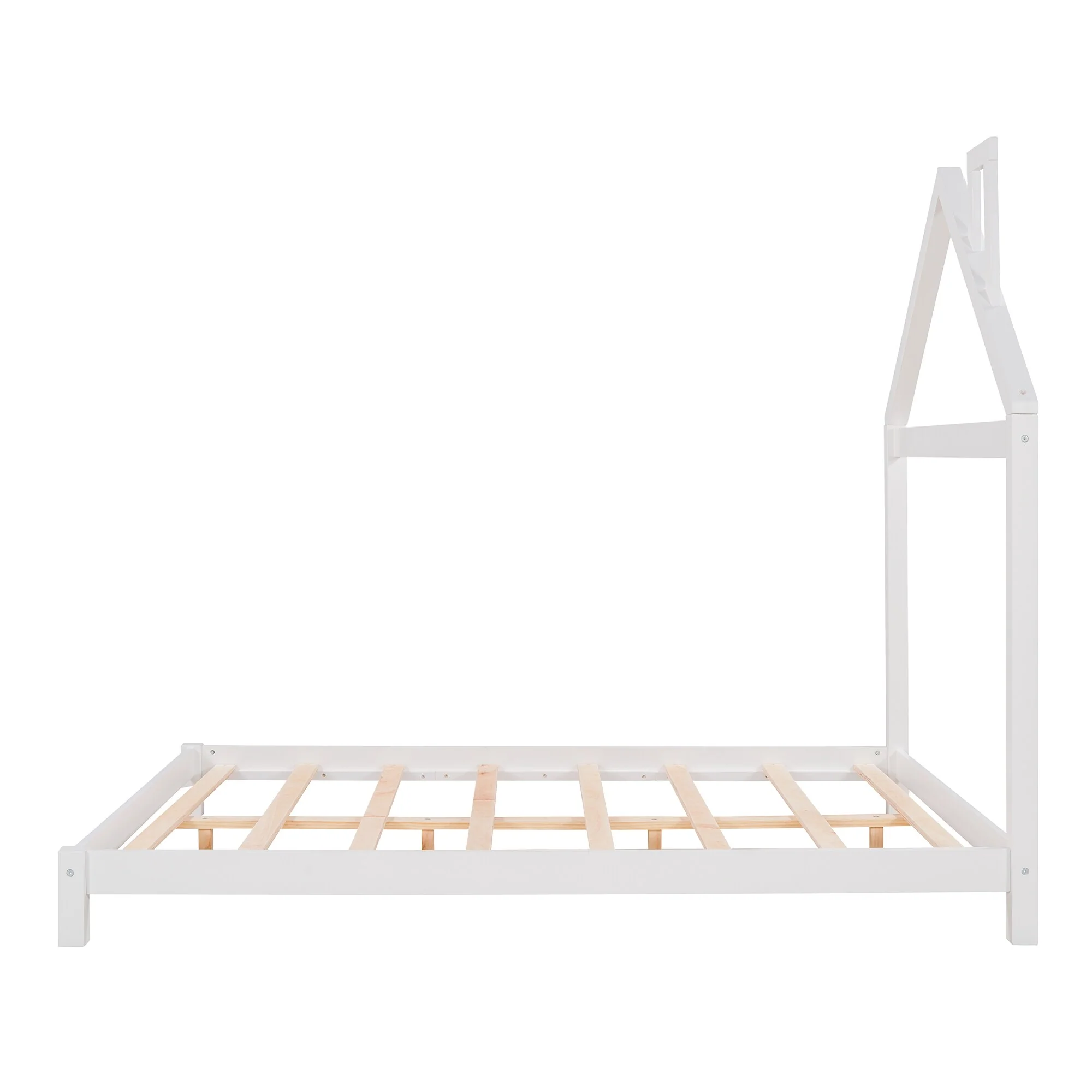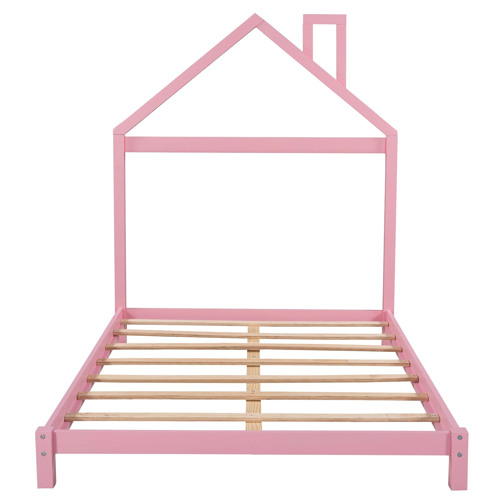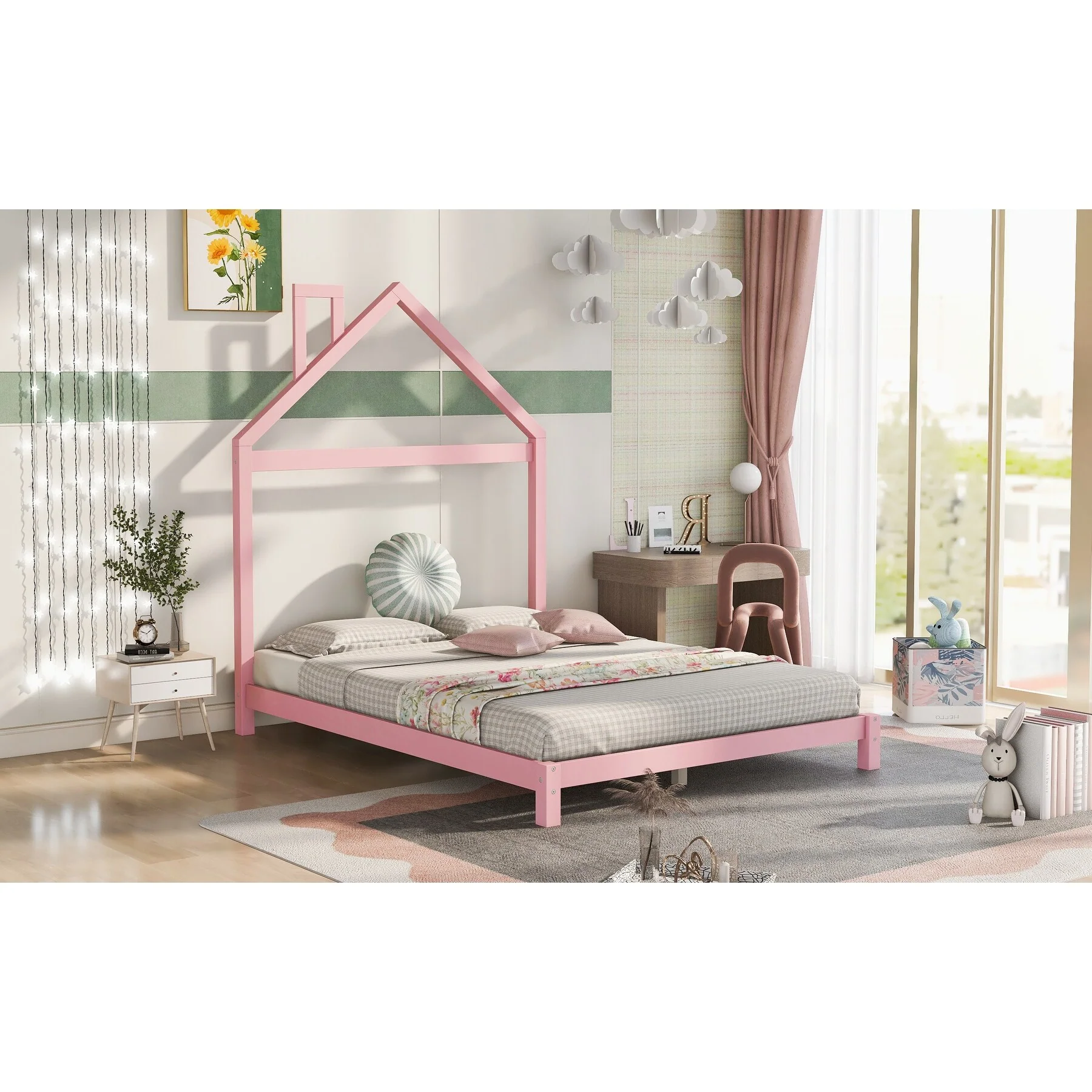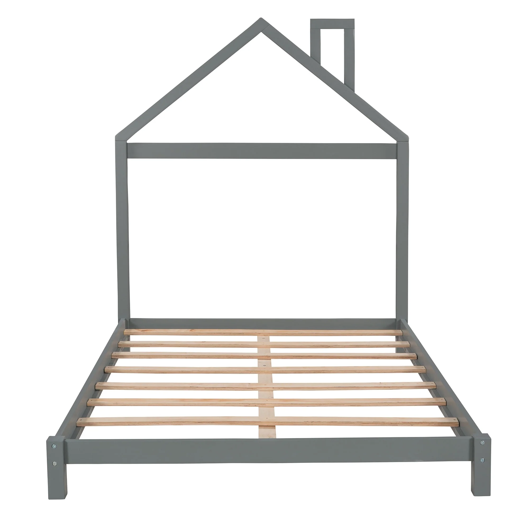 Featuring a house-shaped headboard with a charming chimney detail, this Full-Size Wood Platform Bed adds a playful aesthetic to any room. Constructed from solid pine wood and supported by sturdy slats, this bed offers a reliable and durable foundation for restful sleep. The fun design and neutral color allow this bed to blend effortlessly with any home decor style, making it a delightful centerpiece for bedrooms of all ages. Assembly is easy, and the bed comes with all necessary tools.