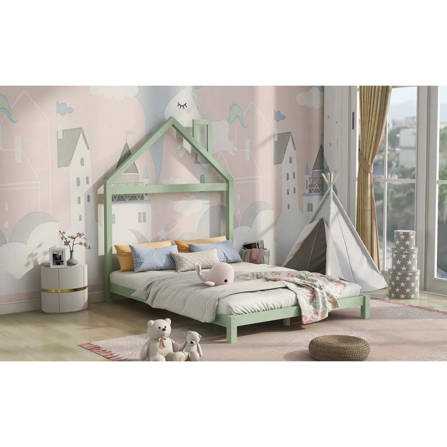 - [Fun House-Shaped Headboard]: The unique headboard is designed in the shape of a house, complete with a chimney, creating an adorable focal point in any bedroom.