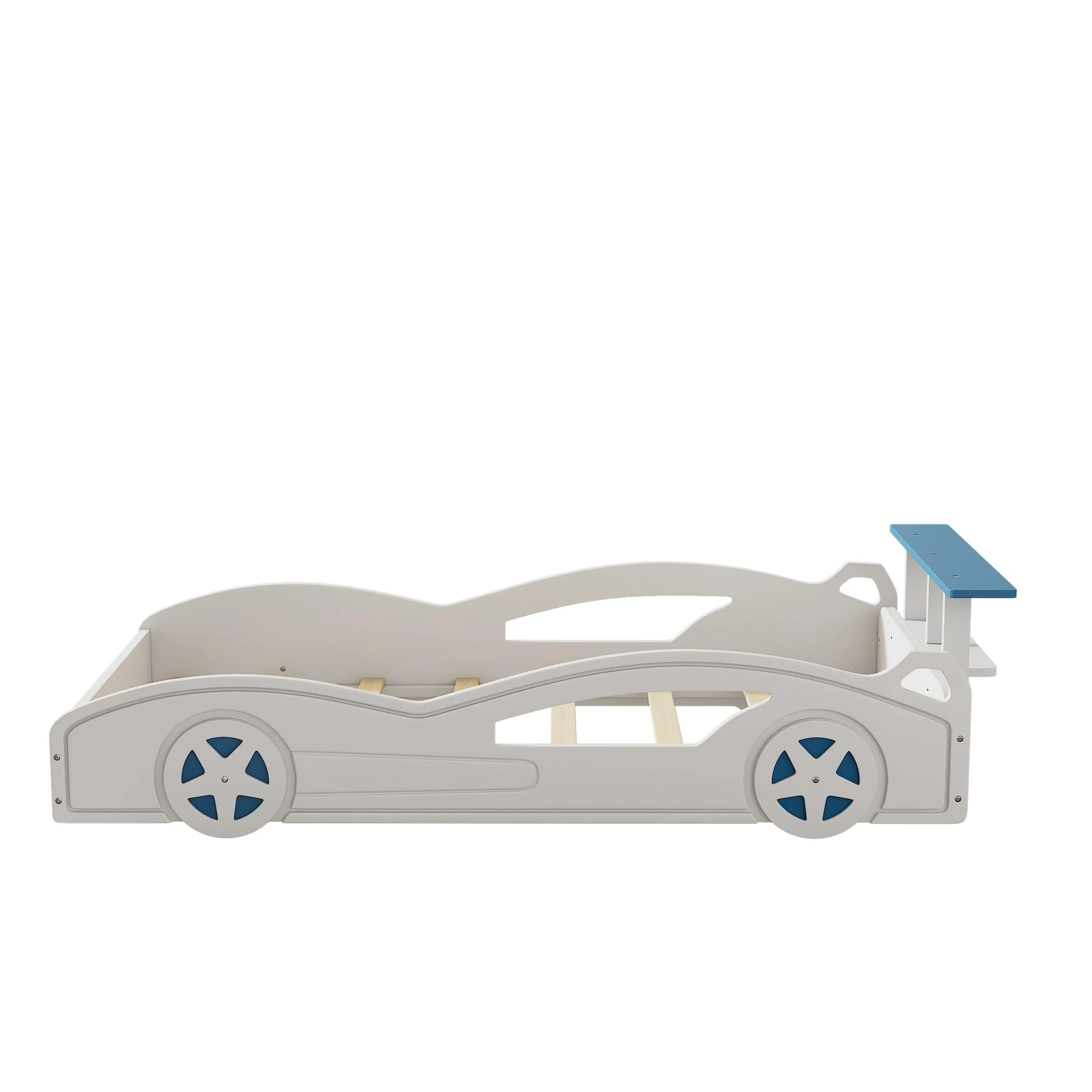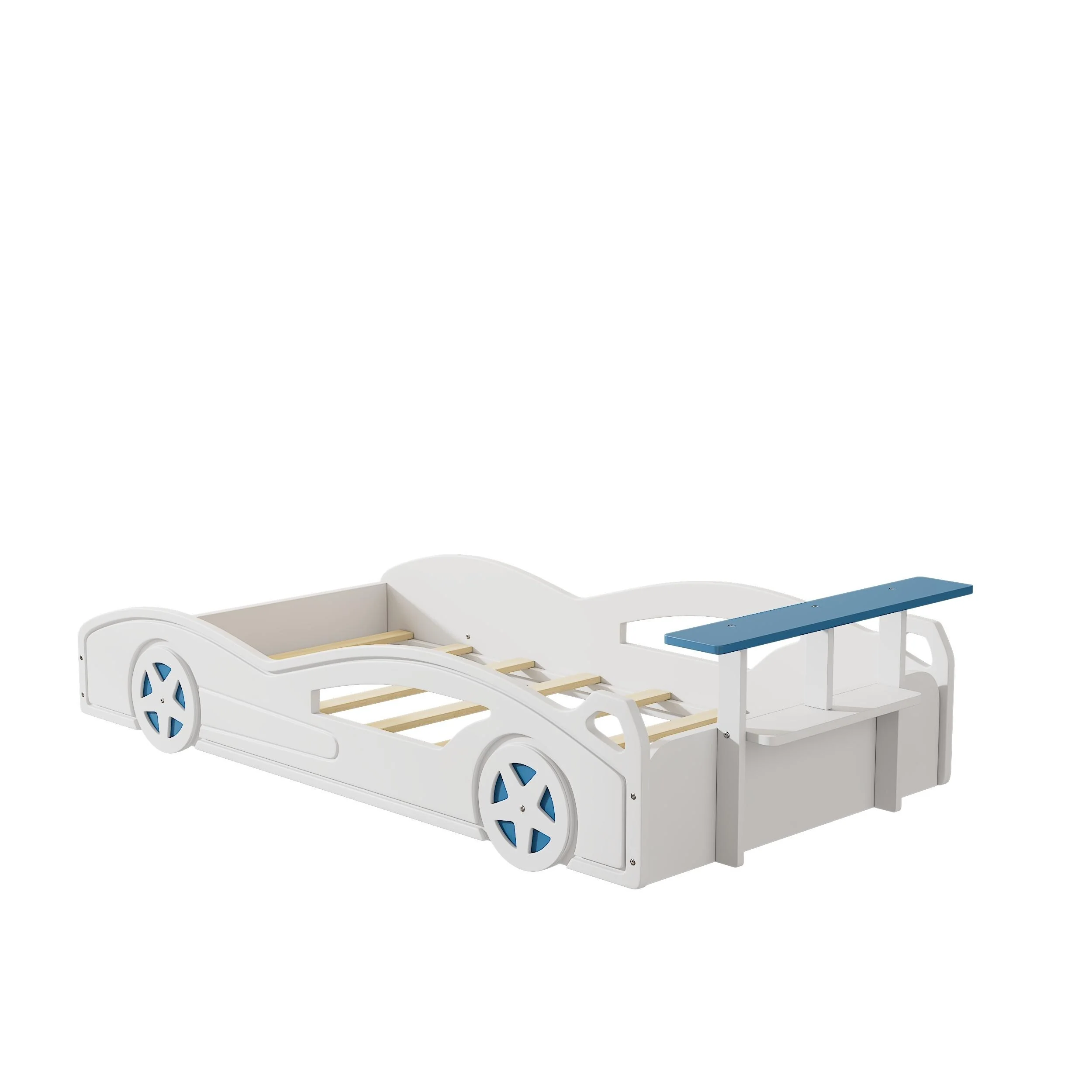 - [Eye-Catching Race Car Design]: This bed's race car design with a white and blue finish will be the highlight of any bedroom, bringing excitement and joy to bedtime.