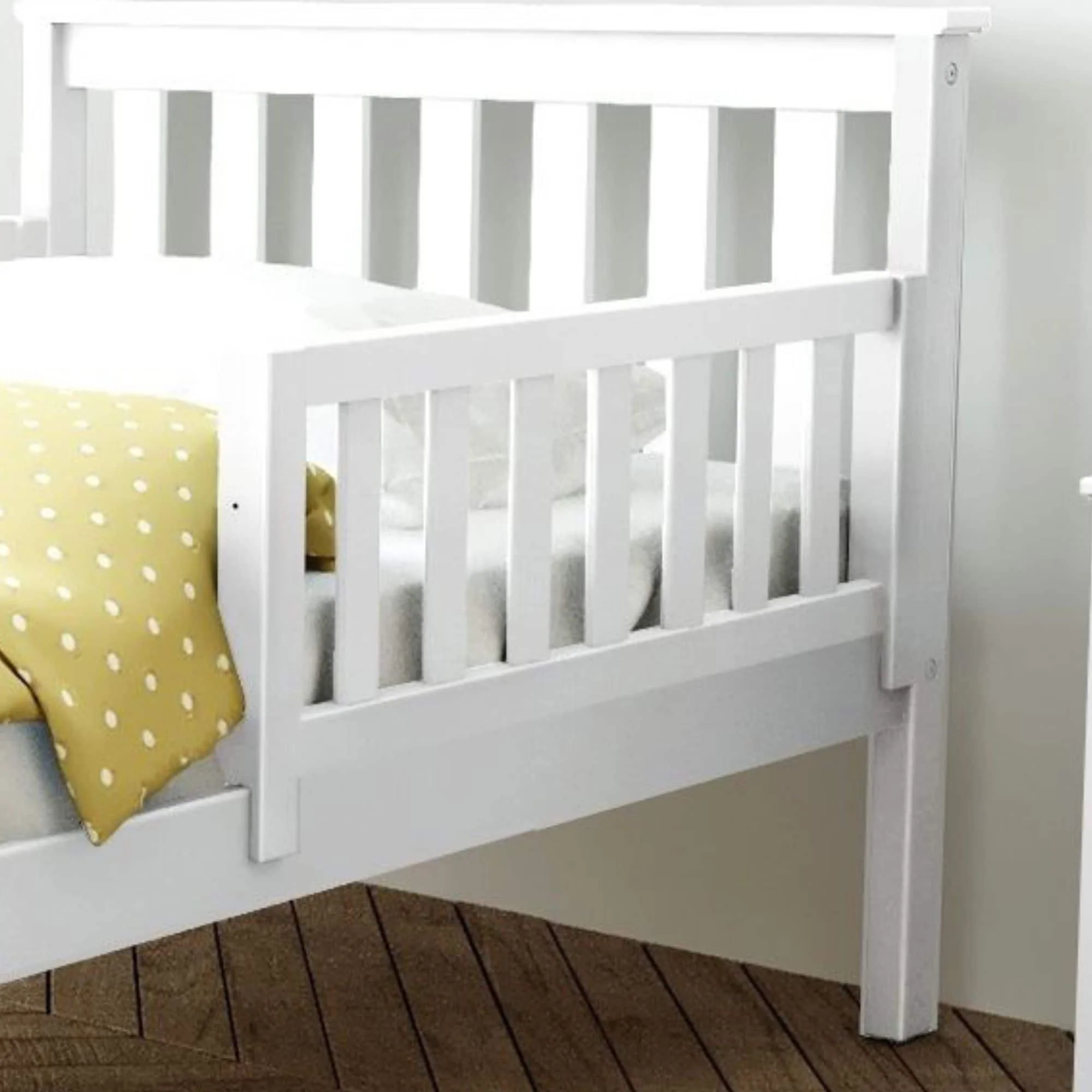 Plenty of room for sleep and play? Now that’s a win-win! The Max & Lily Safety Guard Rail is the perfect combination of functional and fun that both kids and parents love. Made with solid New Zealand pine wood, it’s strong and sturdy design is made to prevent rolling out of bed. A clean, low VOC finish and flush, matching hardware give it a modern look. Guard rail can be added, moved or removed at any time as your needs change. Easily attaches to the bedside rail of your Max & Lily bottom bunk or single bed. Measures 37.5” L x 15.25” H x 1.75” W. We recommend pairing this guard rail with a 5 inch mattress. Mattress size should not exceed 8 inches thick to preserve the integrity of the guard rail. Please note that while add-on guardrails rails can help restrict access and give a sense of protection, they do not prevent all accidents or injuries. Only for use on bottom bunk/bed. Must be attached to the bedpost. Do NOT use an add-on guardrail in place of or to extend the height of the guardrails provided with your Max & Lily bunk or loft bed. Guardrails are for ages 36 months and older. The Safety Guard Rail from Max & Lily offers exceptional quality and affordability that kids and their parents will enjoy for years to come. Max & Lily is a member of the Maxwood family of brands - the kids furniture experts bringing a tradition of superior quality, safety and fun!