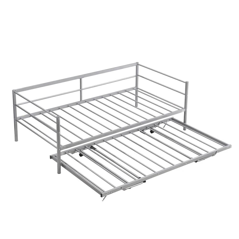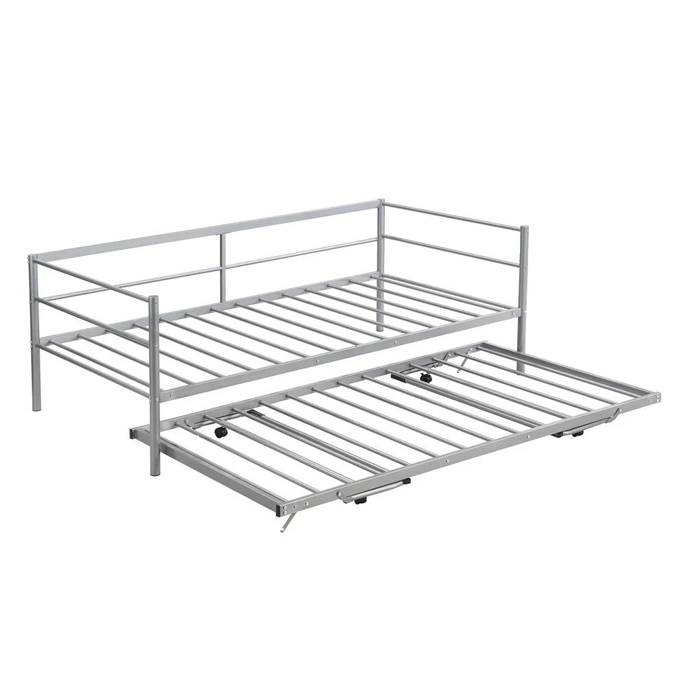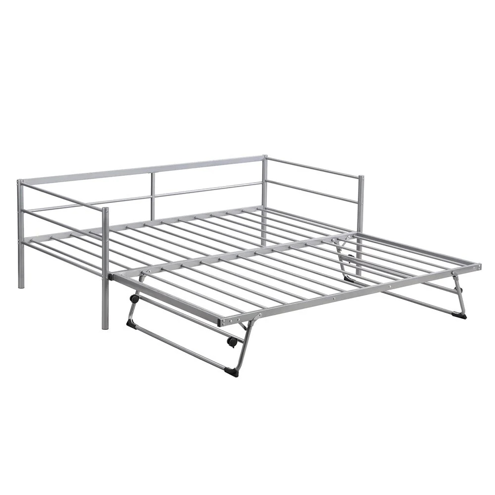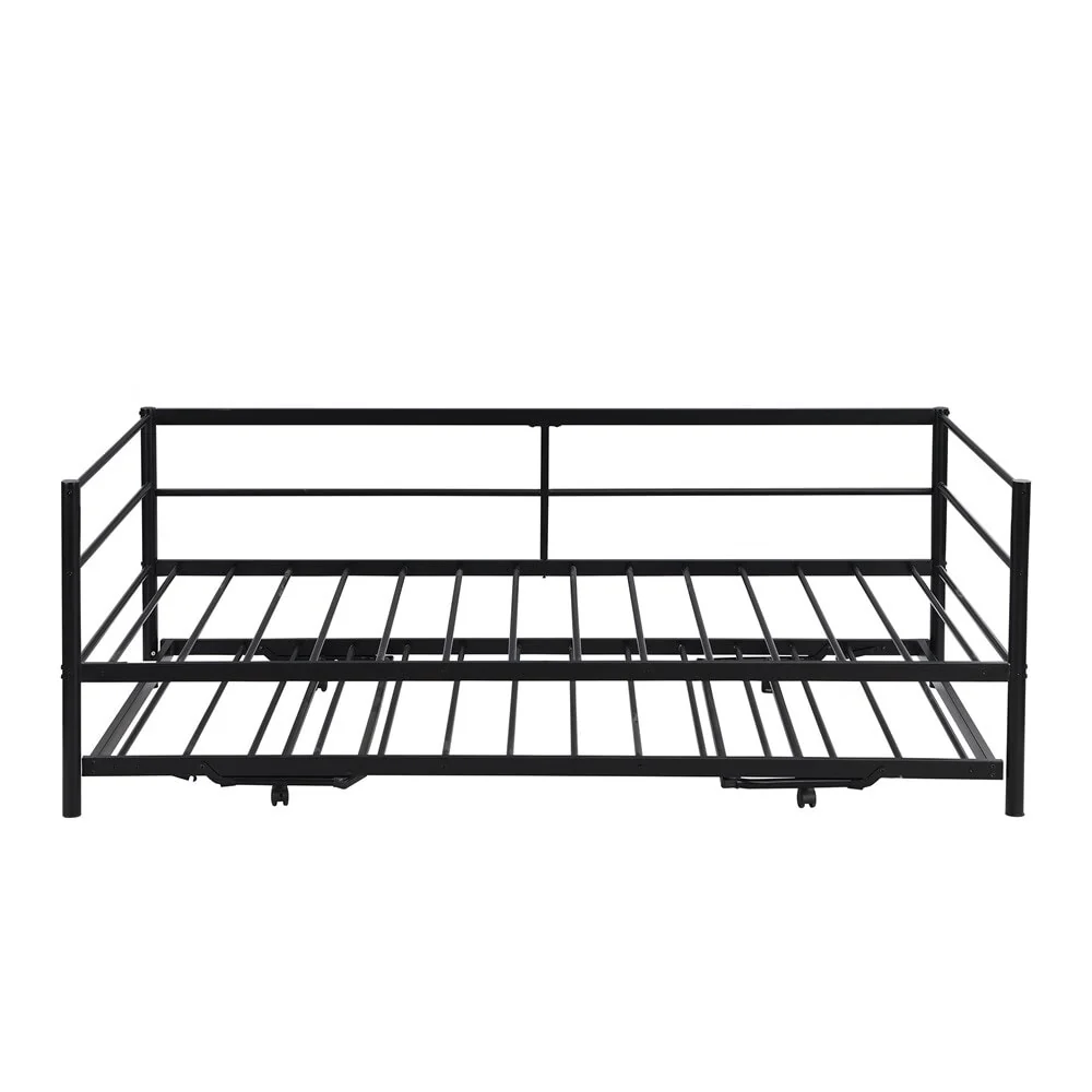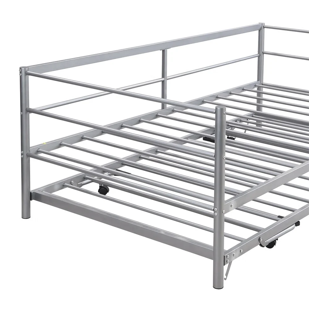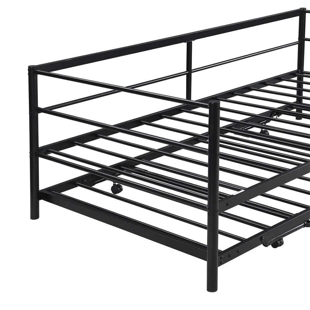 Add a rugged focal point to your room with this Industrial Bed. The full metal design showcases a smooth curved metal piping design, providing an extraordinary industrial style. The trundle is equipped with braces which makes it easily rise to the height of a bed, offering an inviting place to rest. Constructed of heavy-duty steel, the bed provides great support and better weight capacity. With solid construction and unique appearance, this bed is perfect for kid's sleepovers or accommodating guests.