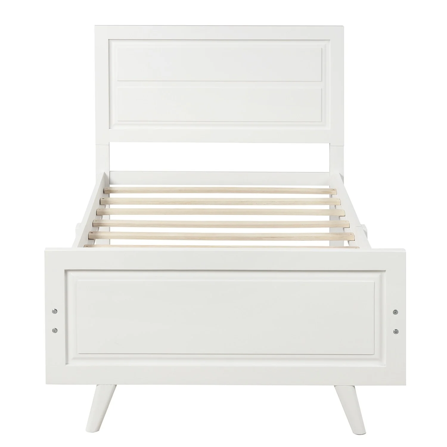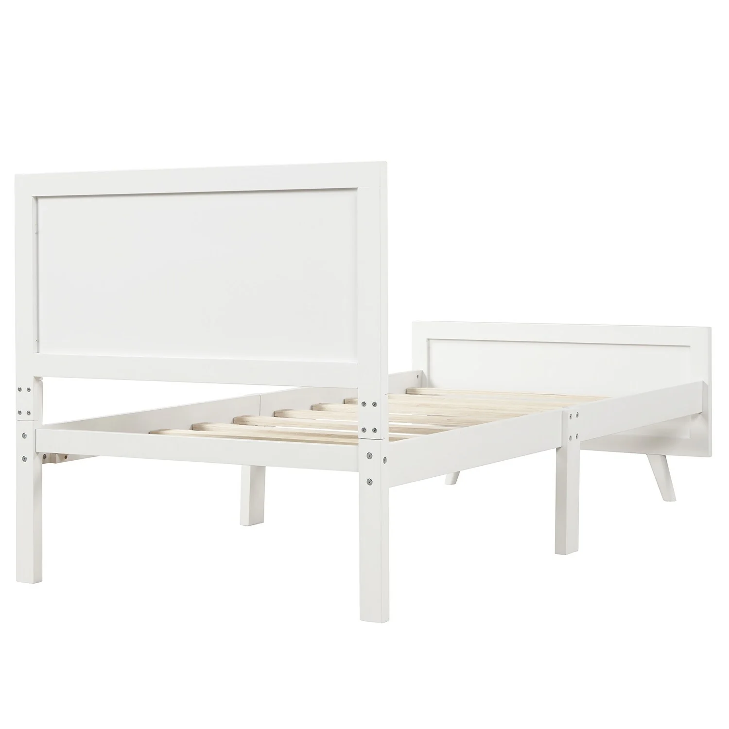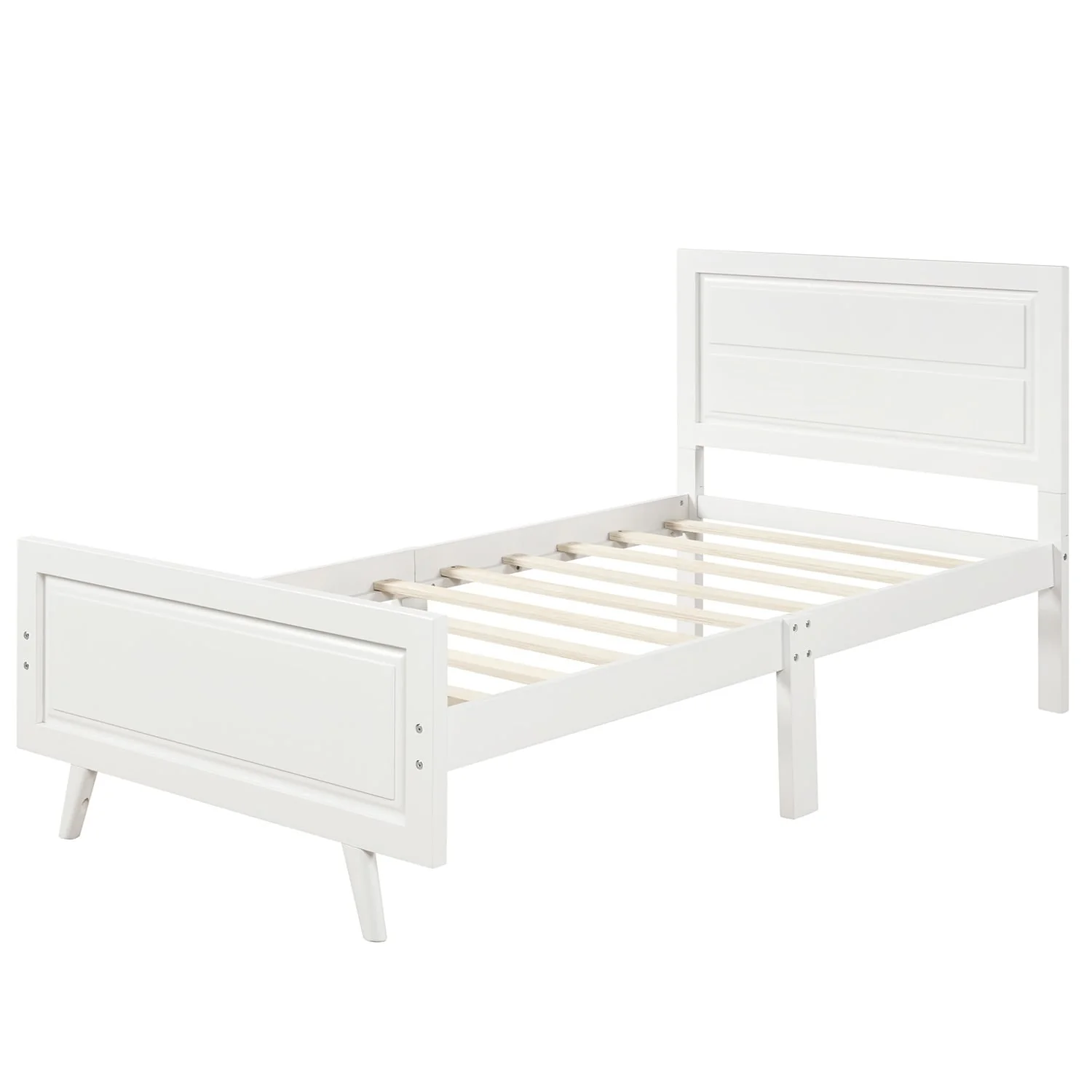 The Twin Size Wood Platform Bed with Headboard and Footboard offers a minimalist design that enhances the look of any bedroom. Built with 100% quality-tested pine wood, MDF, and plywood, this sturdy bed frame features 10 wooden slats for strong mattress support, eliminating the need for a box spring. With a headboard and footboard included, this twin bed is perfect for children's rooms, guest bedrooms, or any space-conscious area. Available in pink or white, this bed will effortlessly complement your bedroom decor.
