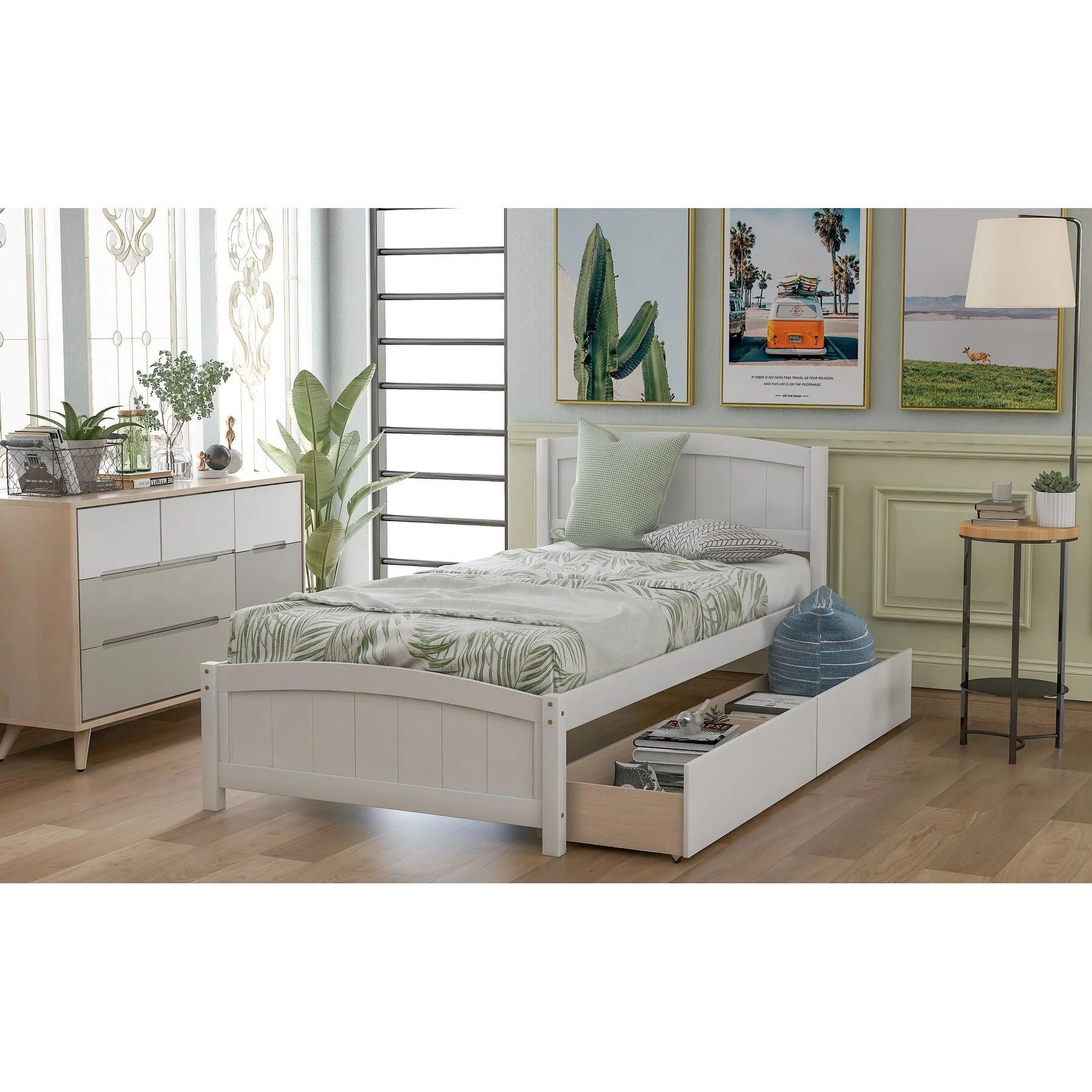 Combining style, functionality, and durability, this Wood Platform Bed with Two Drawers is the perfect solution for any bedroom. The sturdy pine wood frame ensures lasting use, while the two built-in drawers provide extra storage for clothing, blankets, or other essentials, keeping your space neat and tidy. The elegant, minimalist design of this twin bed makes it easy to blend into various room decor styles. Additionally, the 10 wood slats provide strong mattress support without the need for a box spring, making this bed both practical and comfortable.