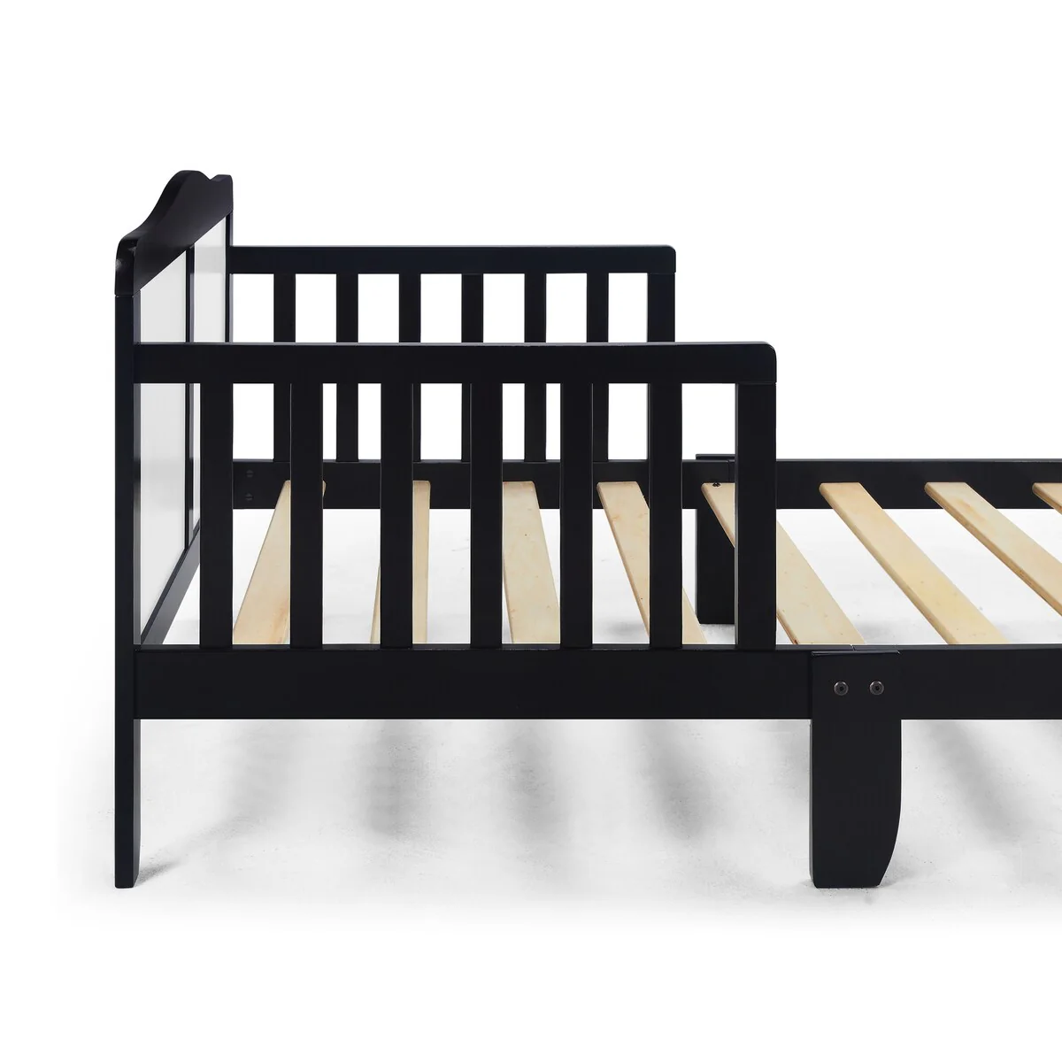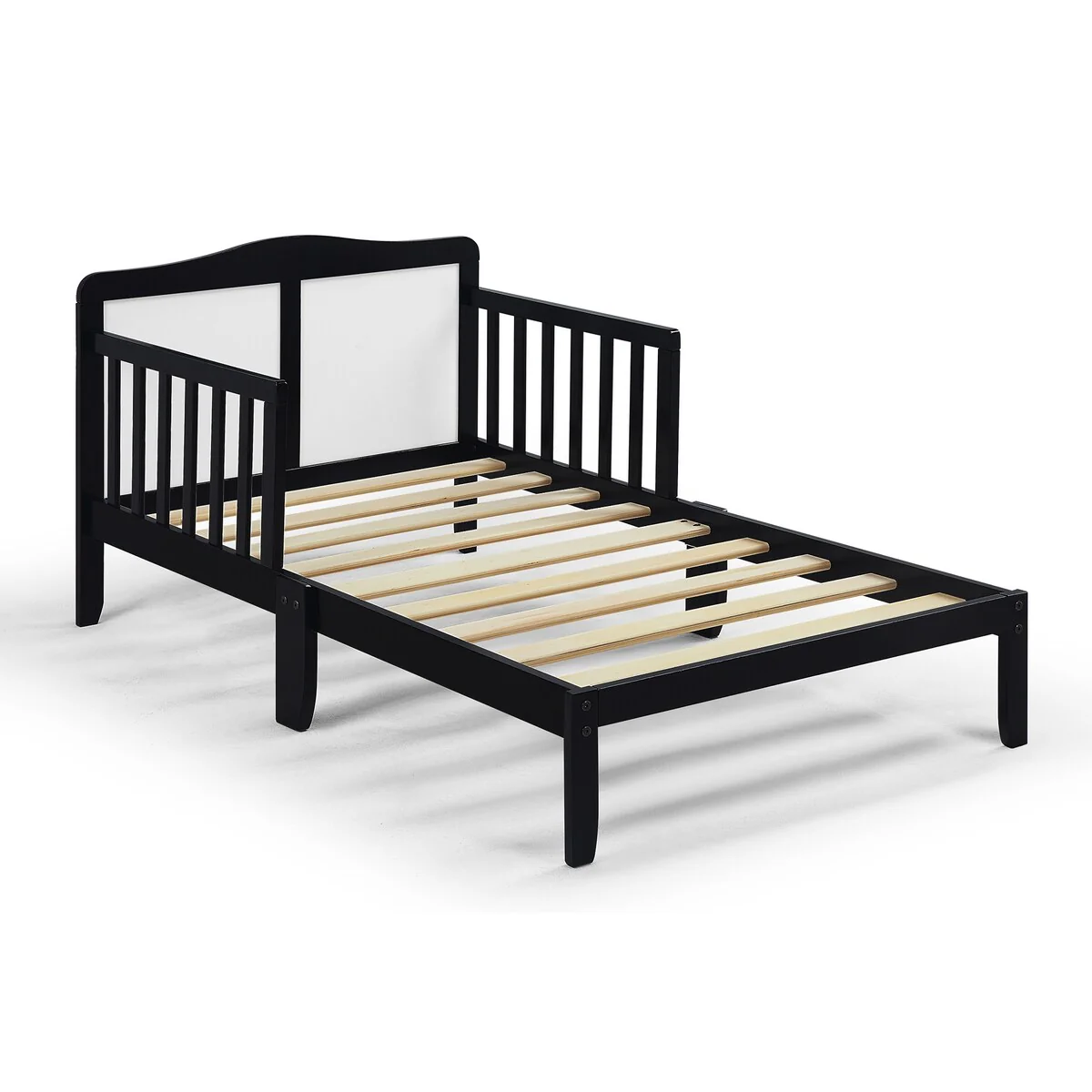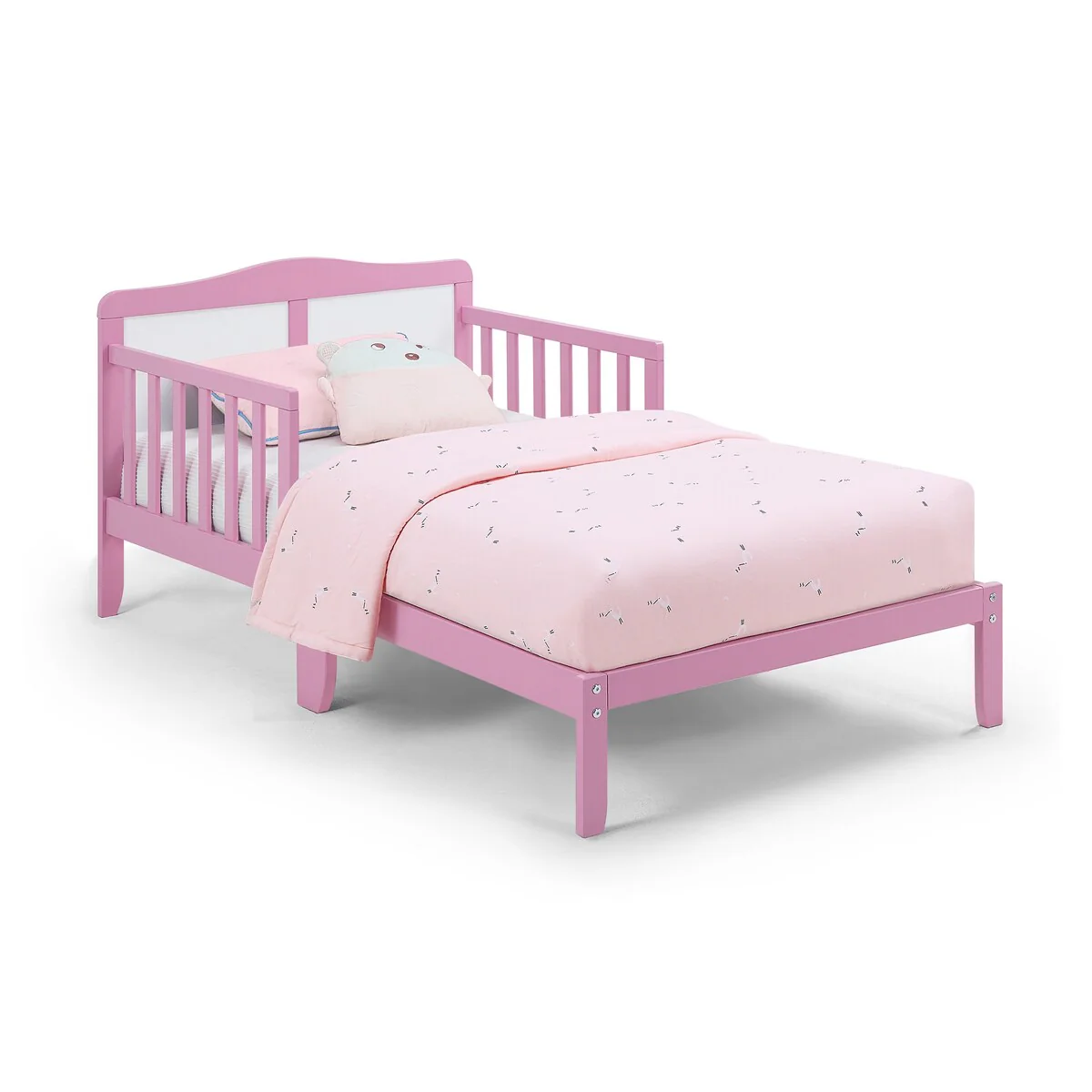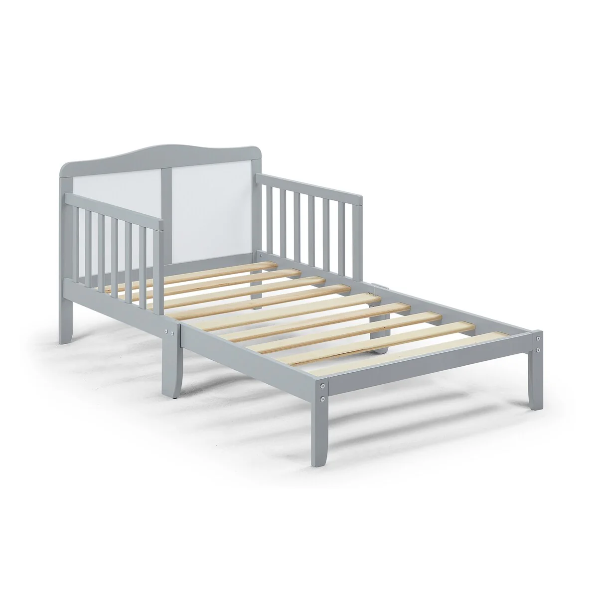 The Birdie toddler bed from Olive & Opie is as simple and sophisticated as the birdie starling. Striking finishes that complement the solid panel white headboard and a low profile footboard, designates Birdie as the perfect nesting spot for your toddler. Complete with dual side guardrails for security at night. The Birdie also features a solid wood frame, solid slat rails, and secondary support leg for extra durability.