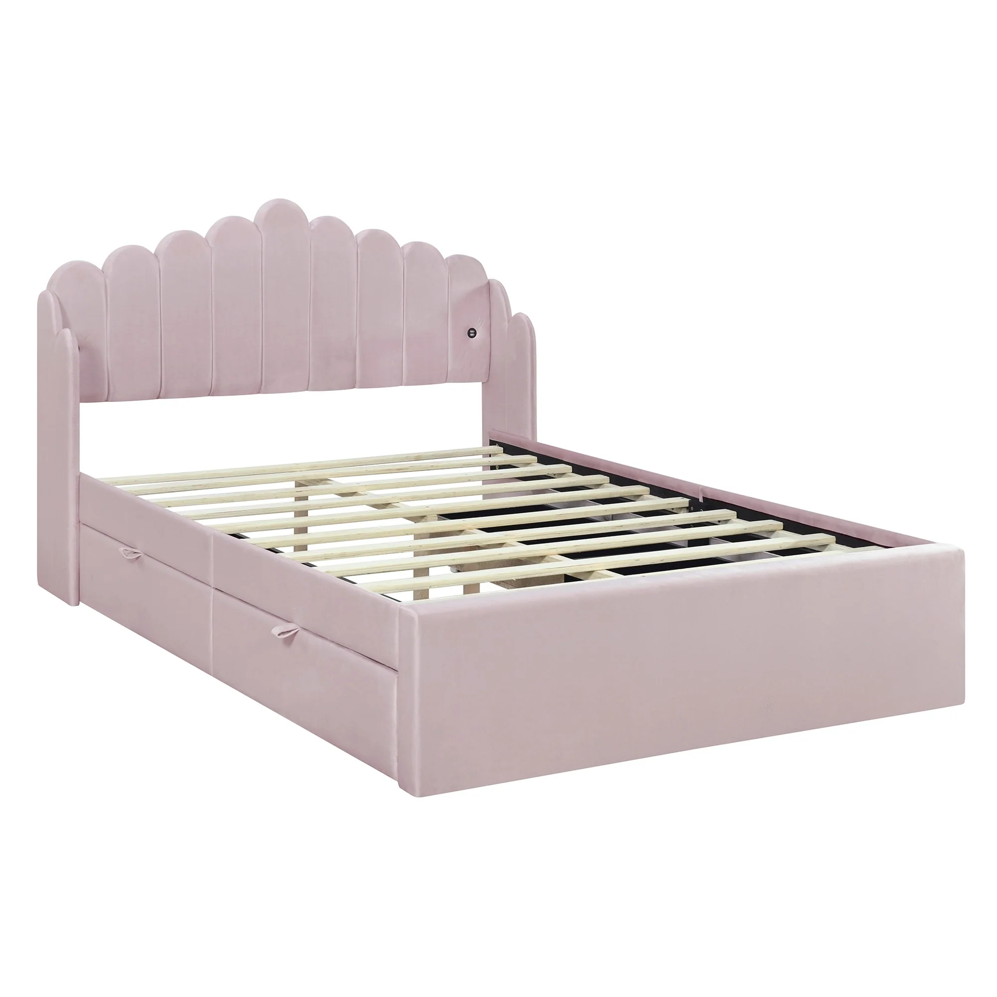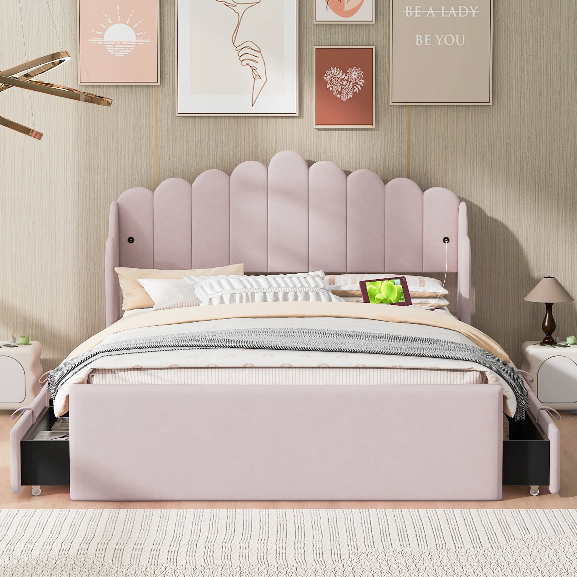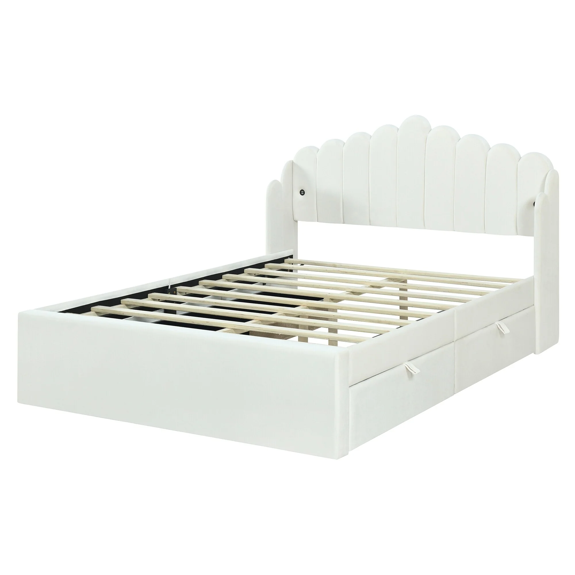 Maximize your bedroom space with this Full Size Upholstered Platform Bed, featuring 4 storage drawers and a USB-equipped headboard for ultimate convenience. Designed with both comfort and practicality in mind, the sturdy wood and MDF construction supports up to 660 lbs, while the upholstered headboard adds a touch of elegance and coziness to your sleeping space. With USB ports on both sides of the headboard, charging your devices has never been easier.