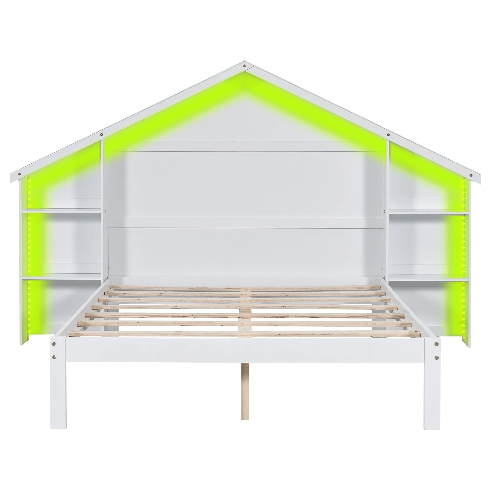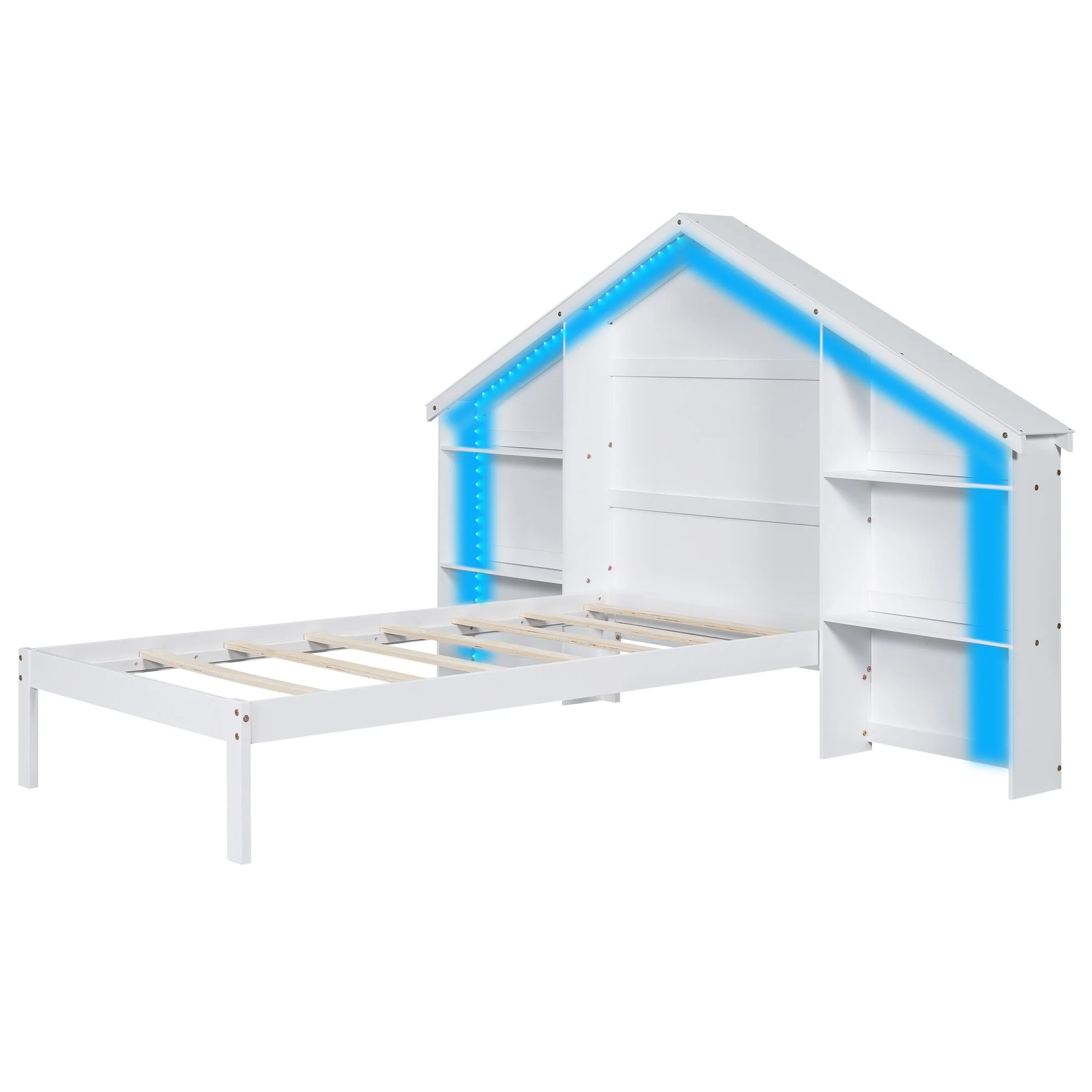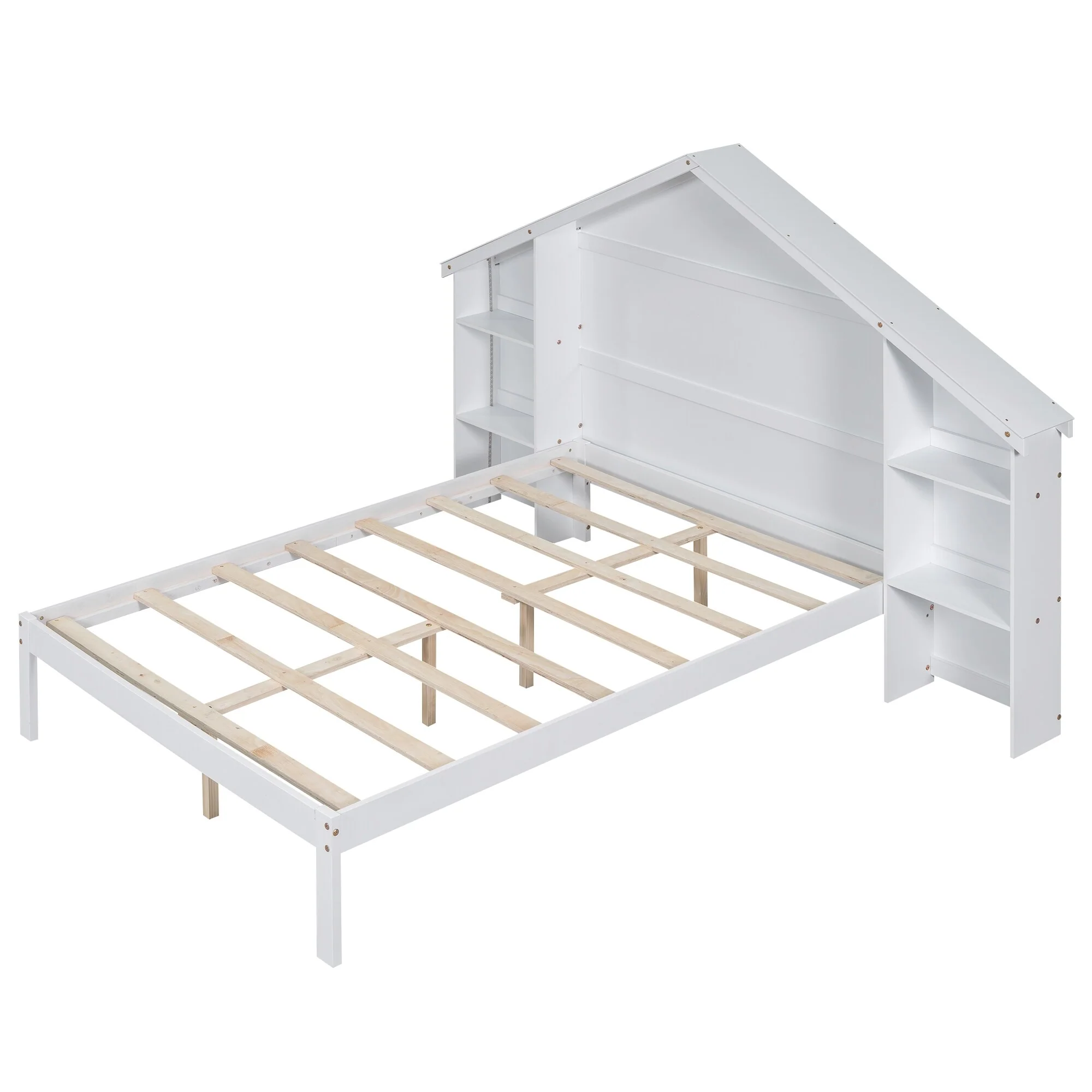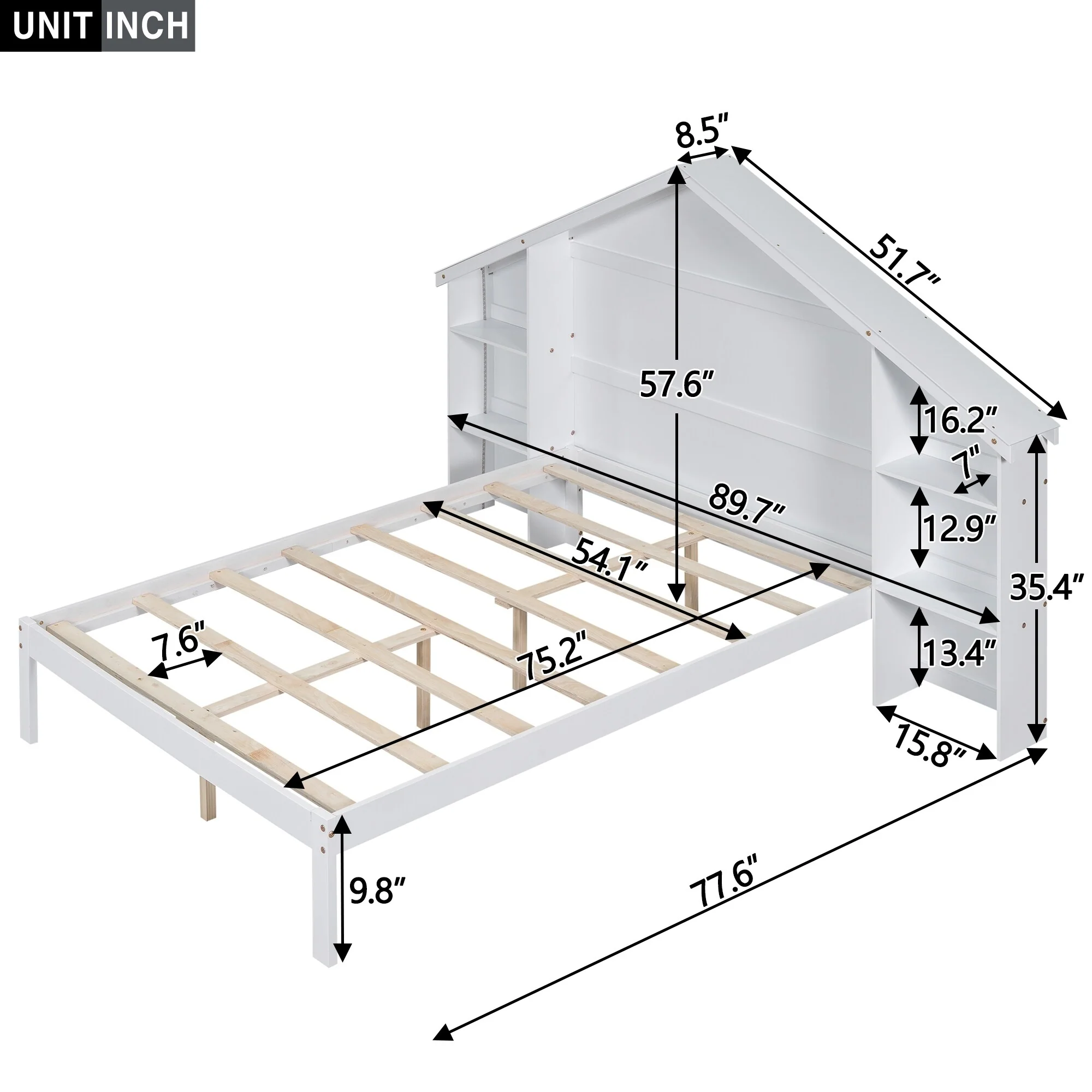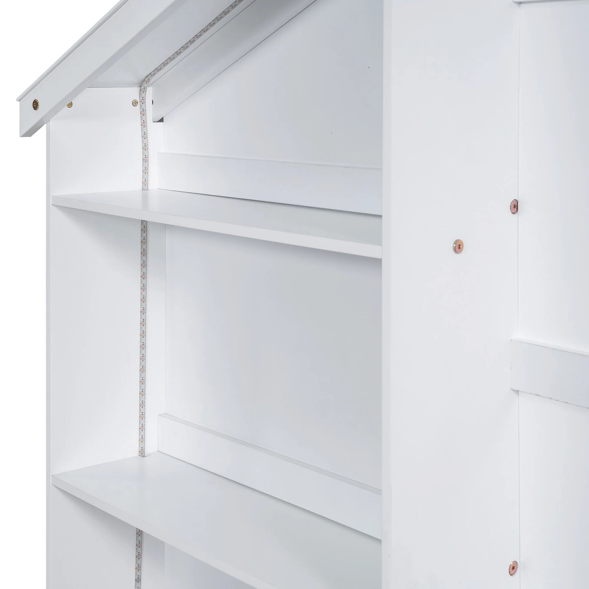 - [House-Shaped Design with Storage]: The headboard's house-shaped design includes 4 storage shelves, perfect for organizing personal items while adding a playful touch to the room's décor.
