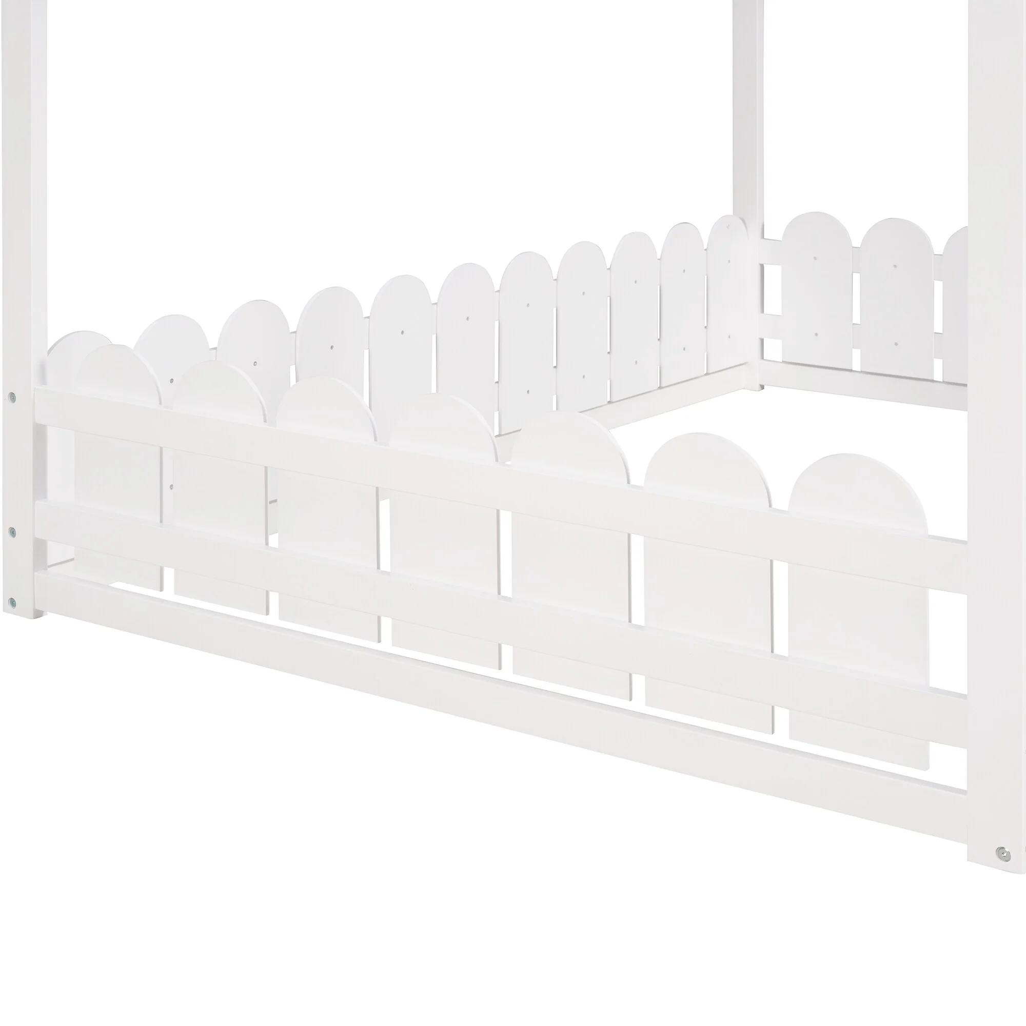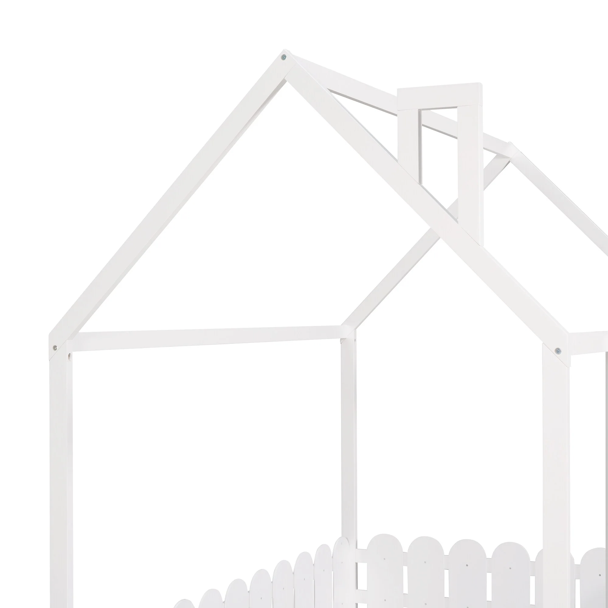 - [Charming Playhouse Design]: This house bed features a delightful roof and fence, creating a whimsical, semi-enclosed sleeping space perfect for bedtime stories and imaginative play.