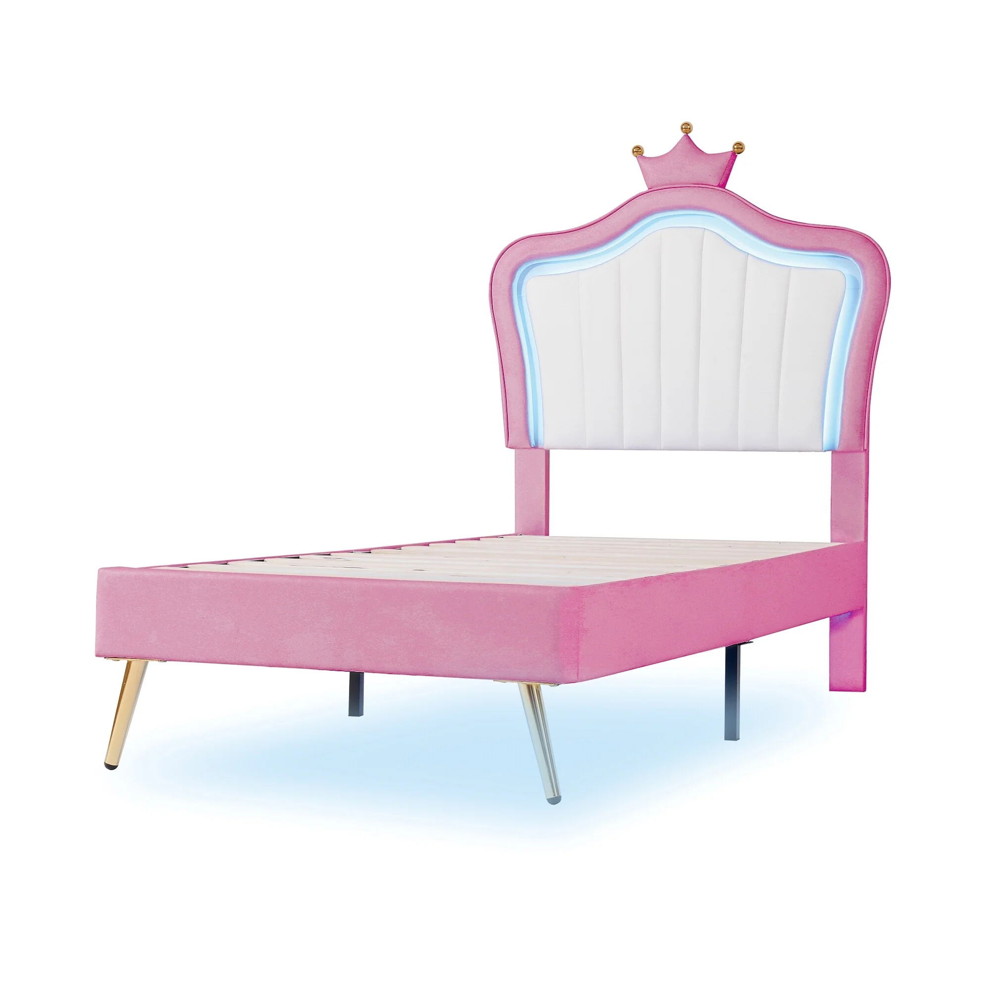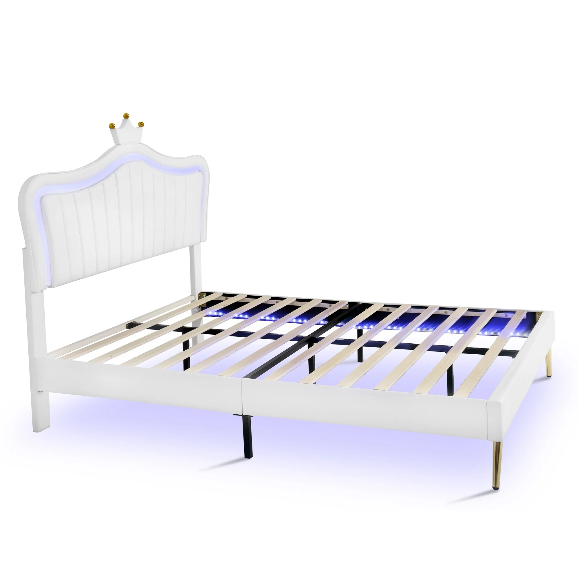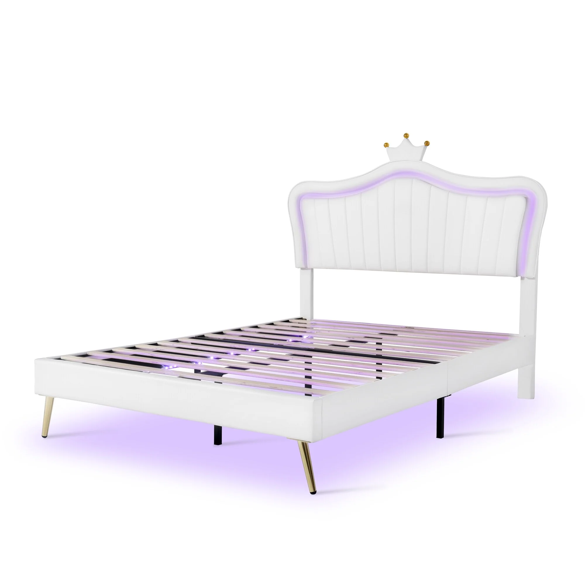 This upholestered bed with LED lights is easy to make your home unique.The LED lights have so many color options, bringing you a romantic night and a comfortable sleep.The headboard of this upholstered platform bed is crown shape, the overall shape is full of interest,it is every girl's dream.Upholstered in skin-friendly, breathable, and wear-resistant fabric which provides comfortable support for reading or lounging in bed.