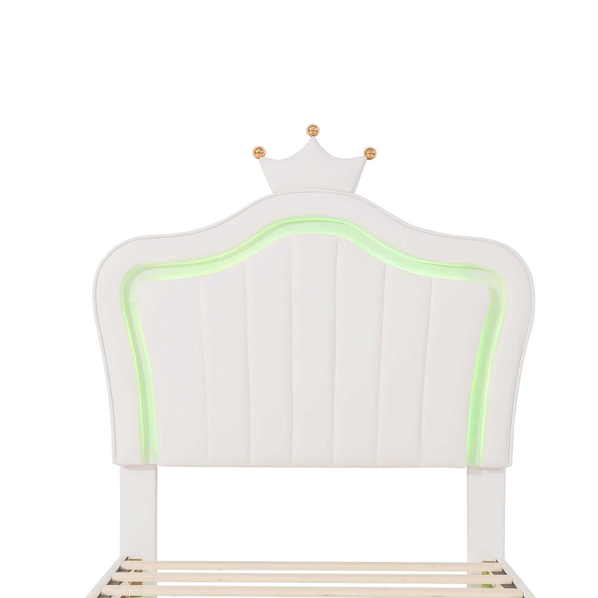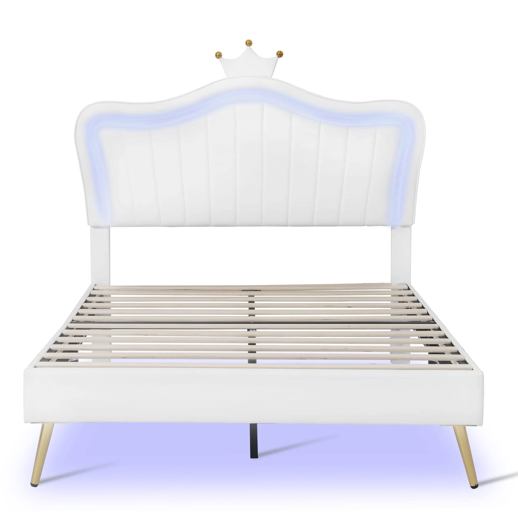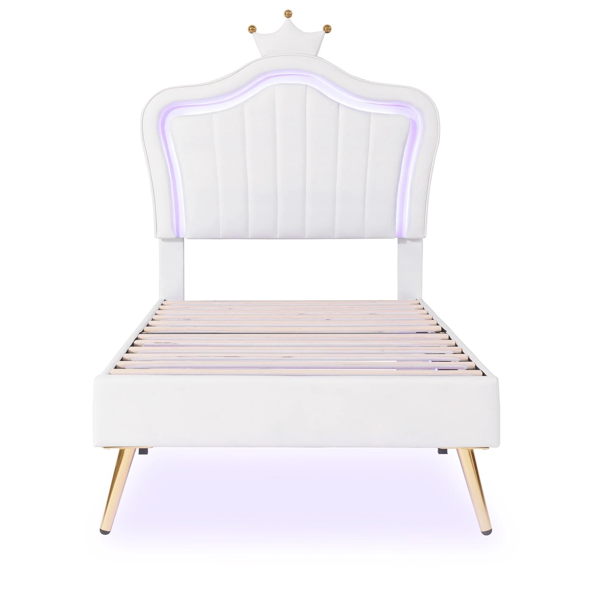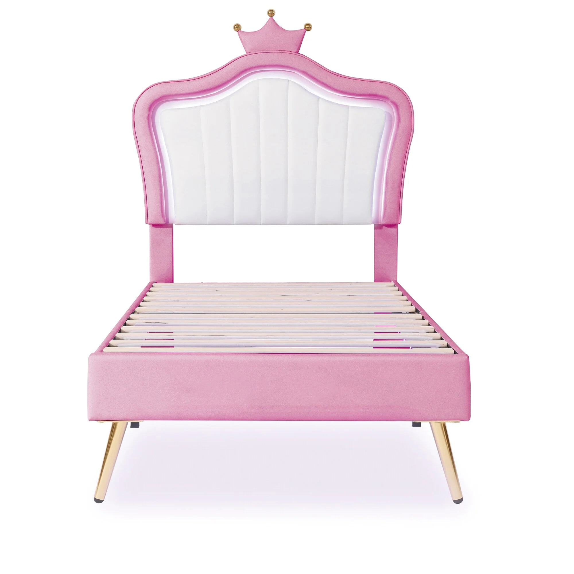 This upholestered bed with LED lights is easy to make your home unique.The LED lights have so many color options, bringing you a romantic night and a comfortable sleep.The headboard of this upholstered platform bed is crown shape, the overall shape is full of interest,it is every girl's dream.Upholstered in skin-friendly, breathable, and wear-resistant fabric which provides comfortable support for reading or lounging in bed.