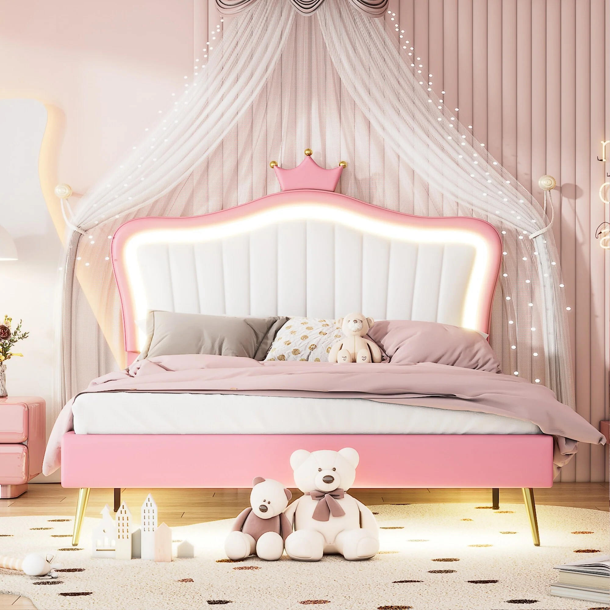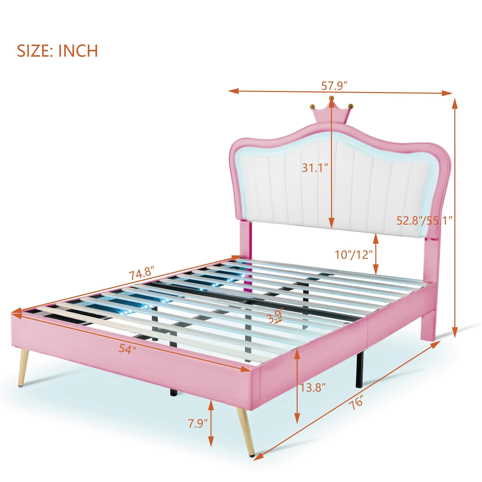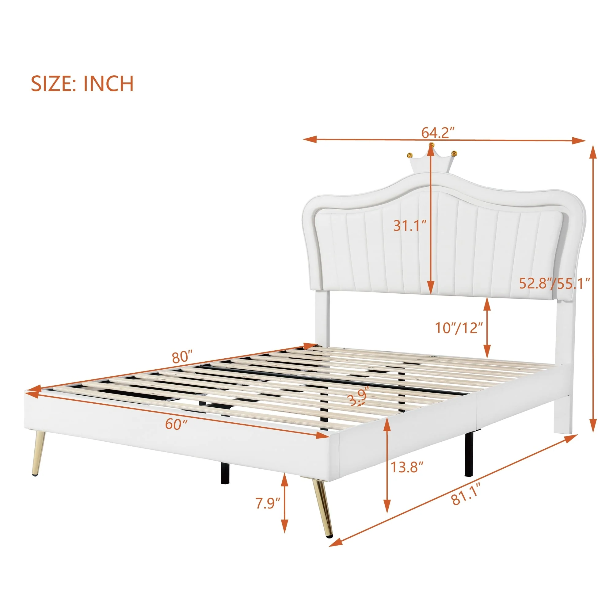 - [Crown Headboard Design] The headboard of this princess platform bed is crown shape. It is so cute that you will love it.It masterfully blends with all styles of home decoration, and helps to complete and enhance the look of any bedroom.The height of the head of the bed can be adjusted in 2 levels, 52.8'-55.2'.