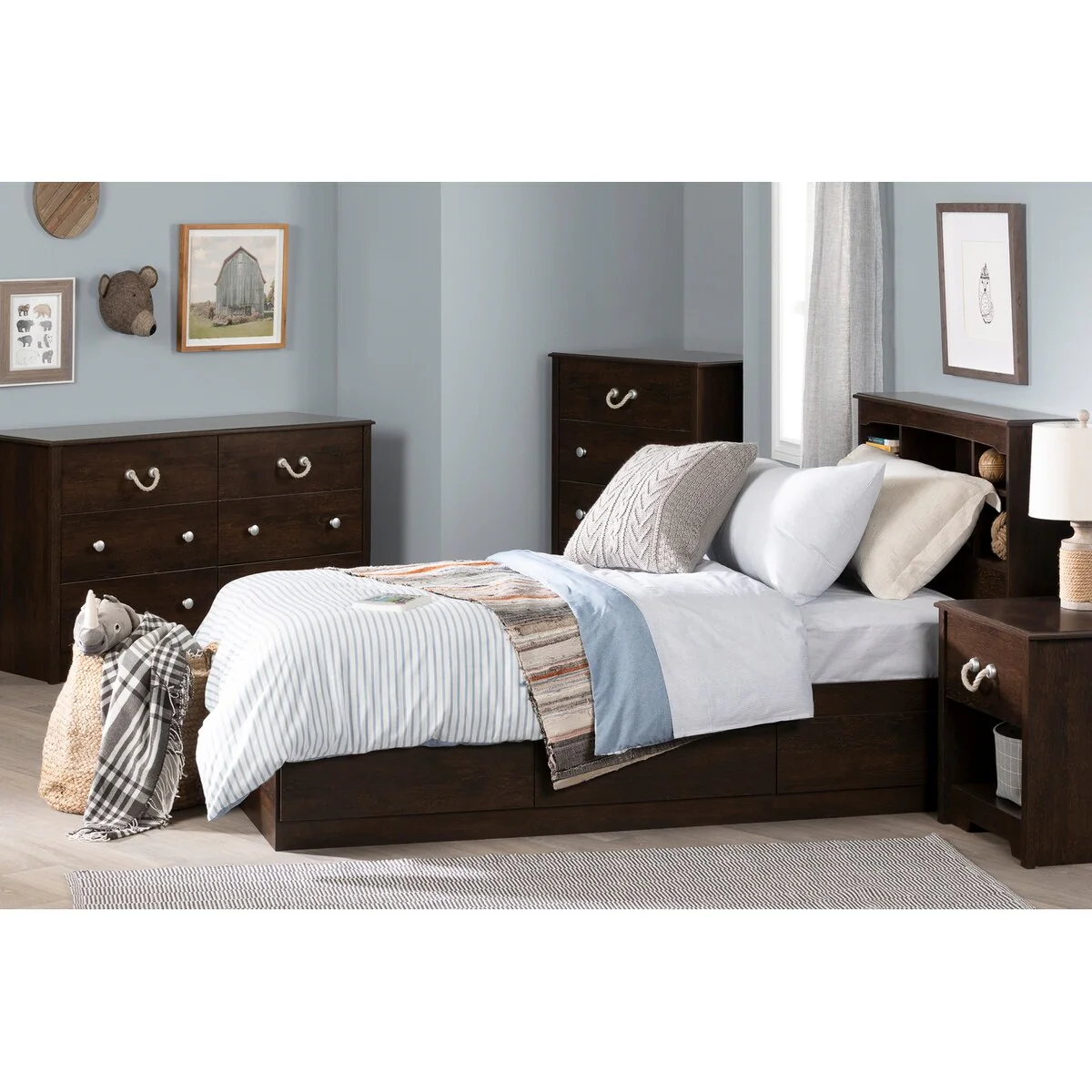 Nautical and modern style blends together in the crisp and contemporary design in this bookcase headboard. The sturdy construction is equipped with open spaces perfect for books, lamps, and photographs. An open portion allows for wire management to keep your bedroom looking organized and lovely.