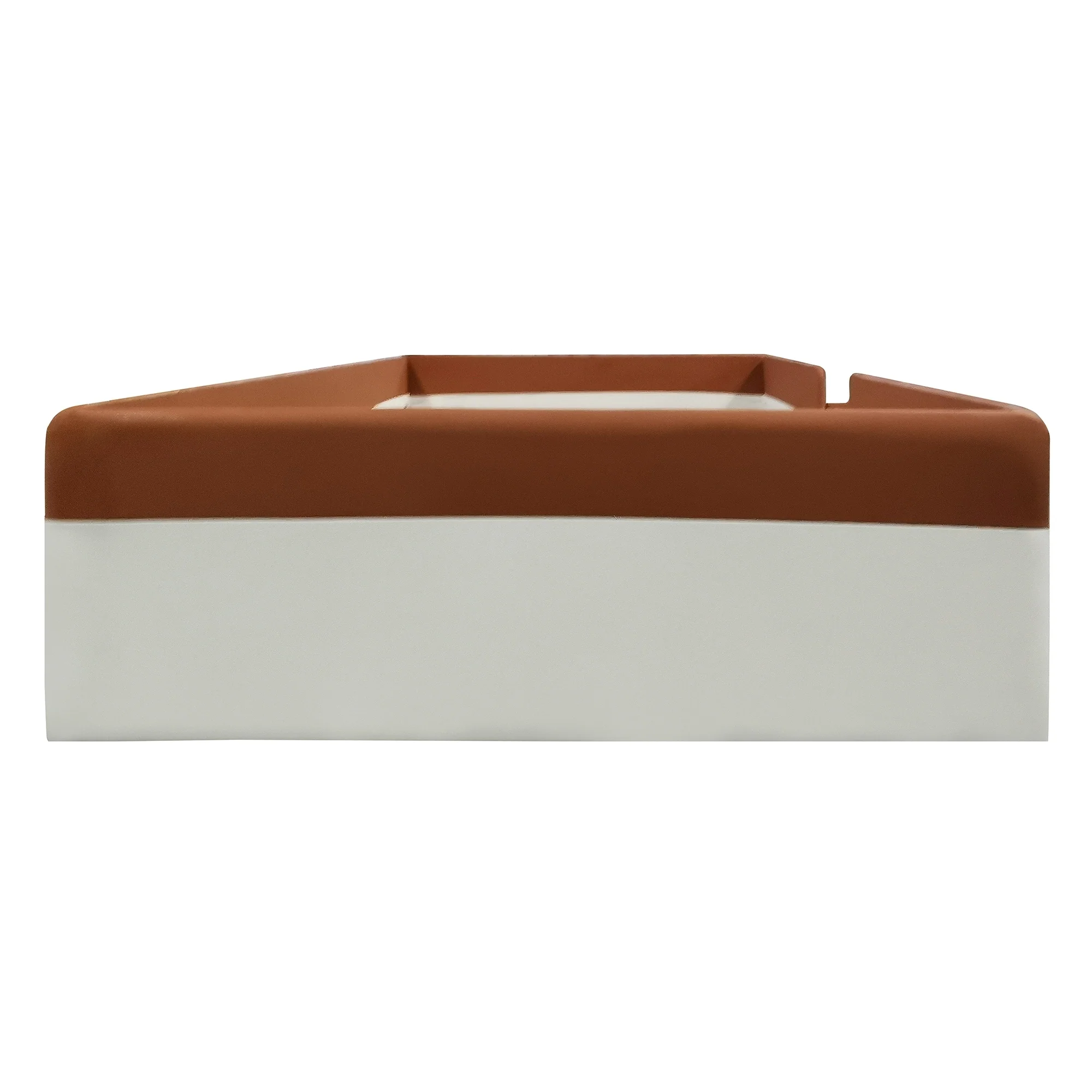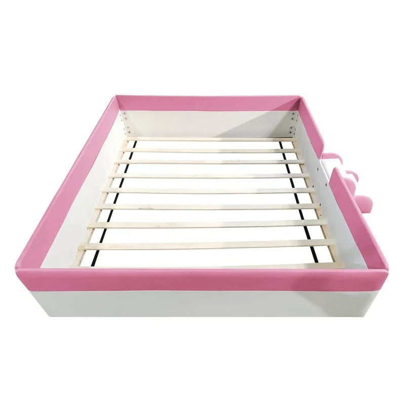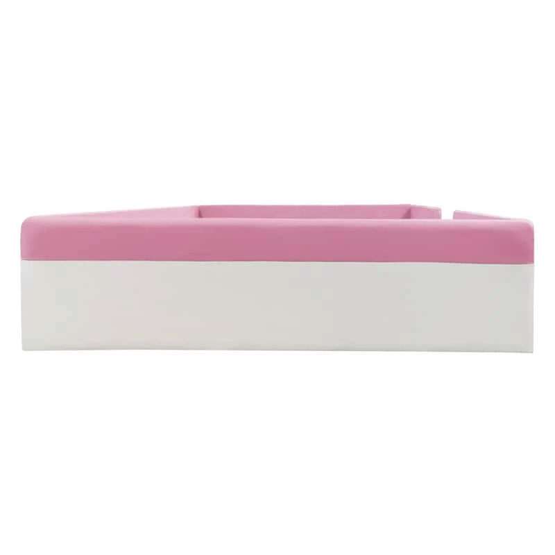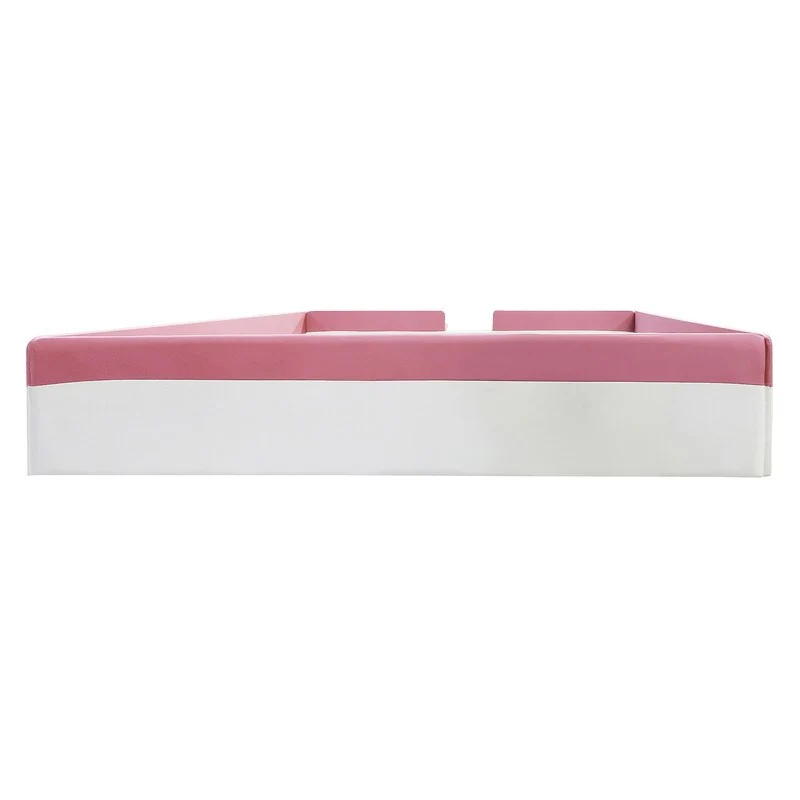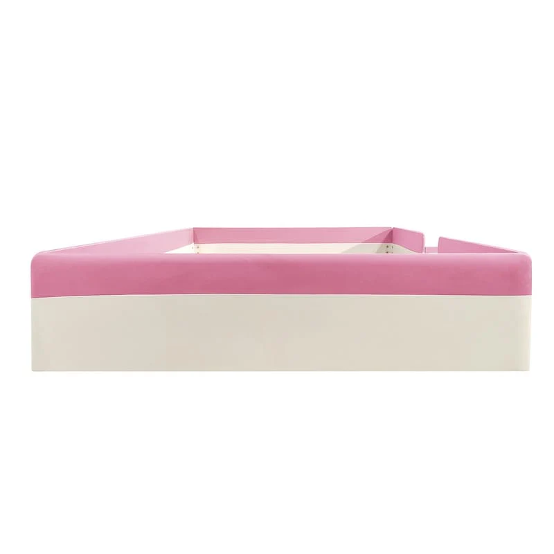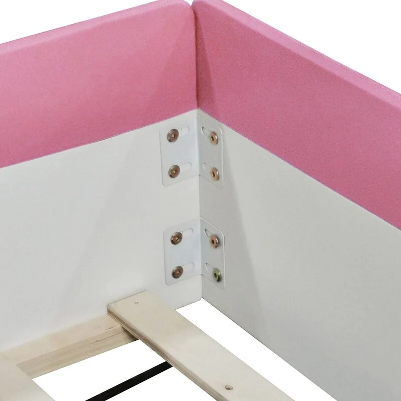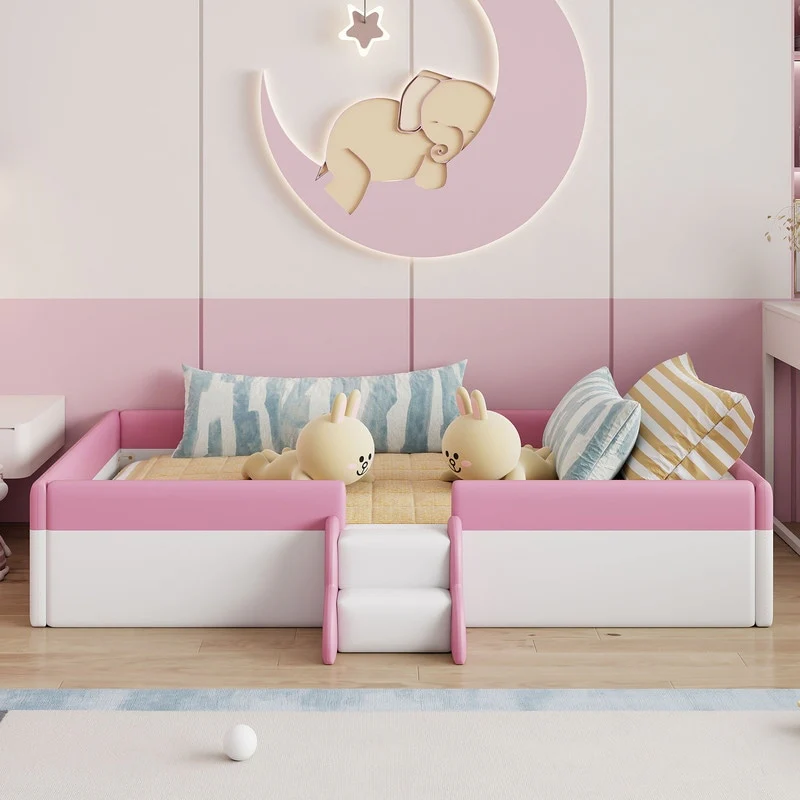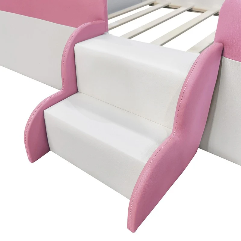 - 【Fun Design】This upholstered floor bed frame has a circle of fences. The side has a two-tier staircase., which increases the interest of the bed and creates a more safety sleeping space.