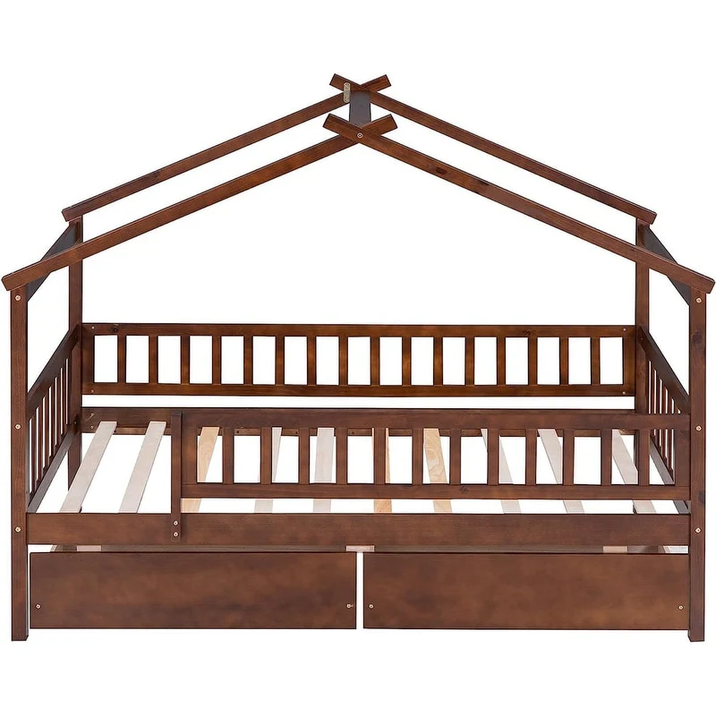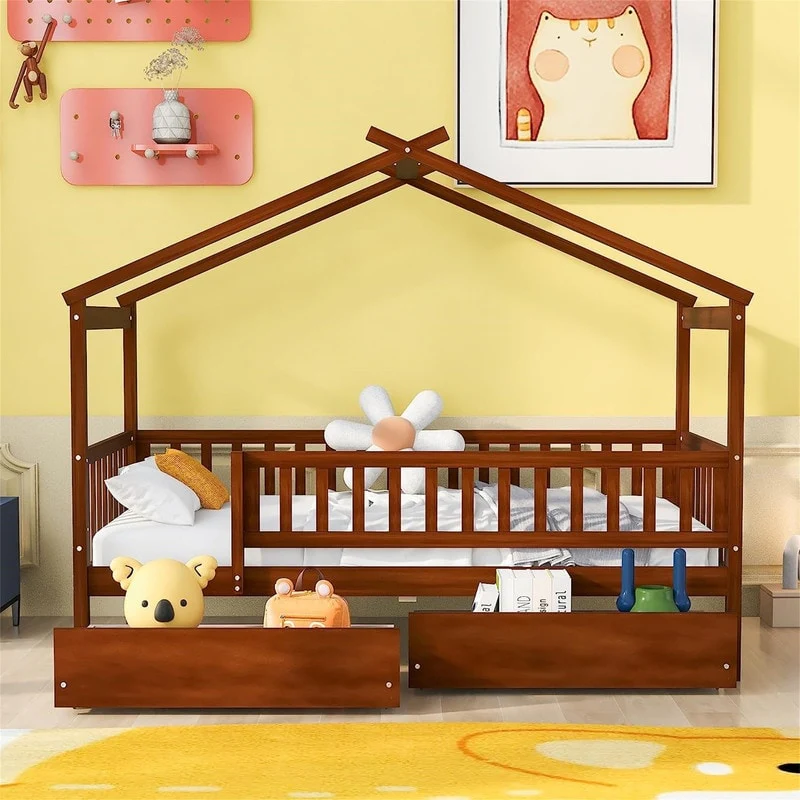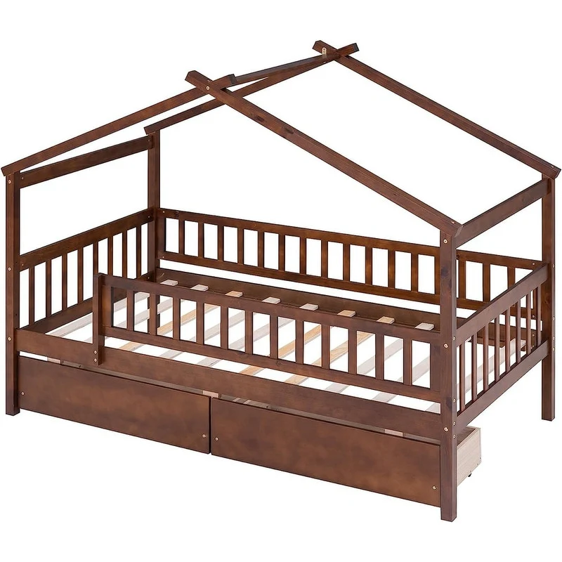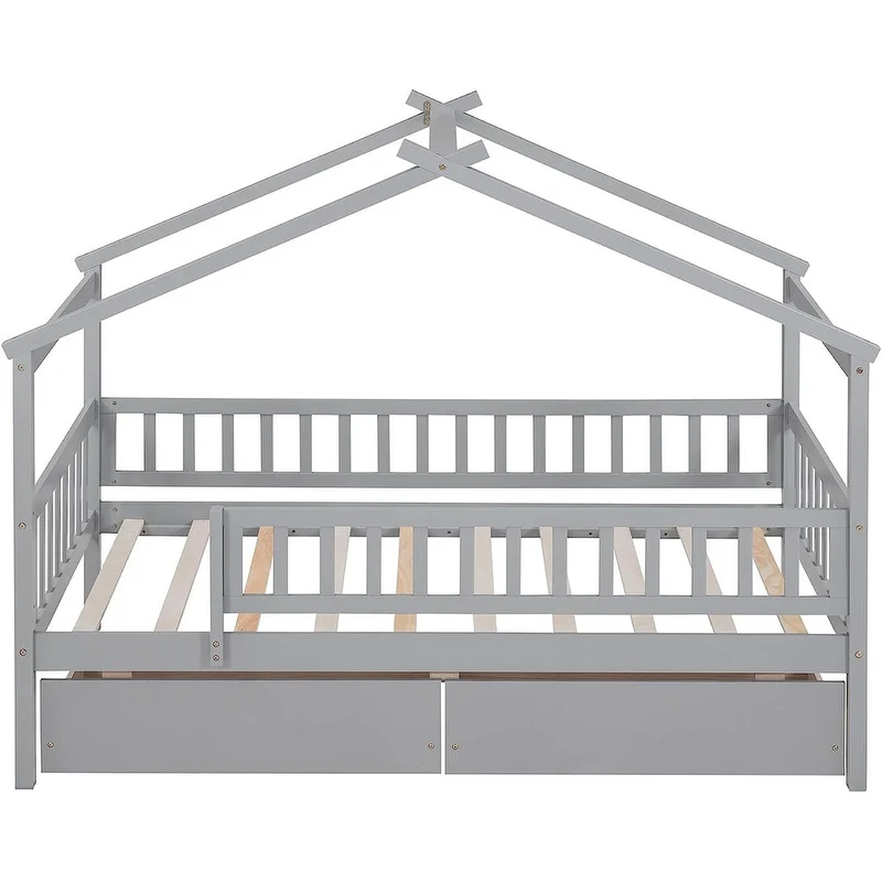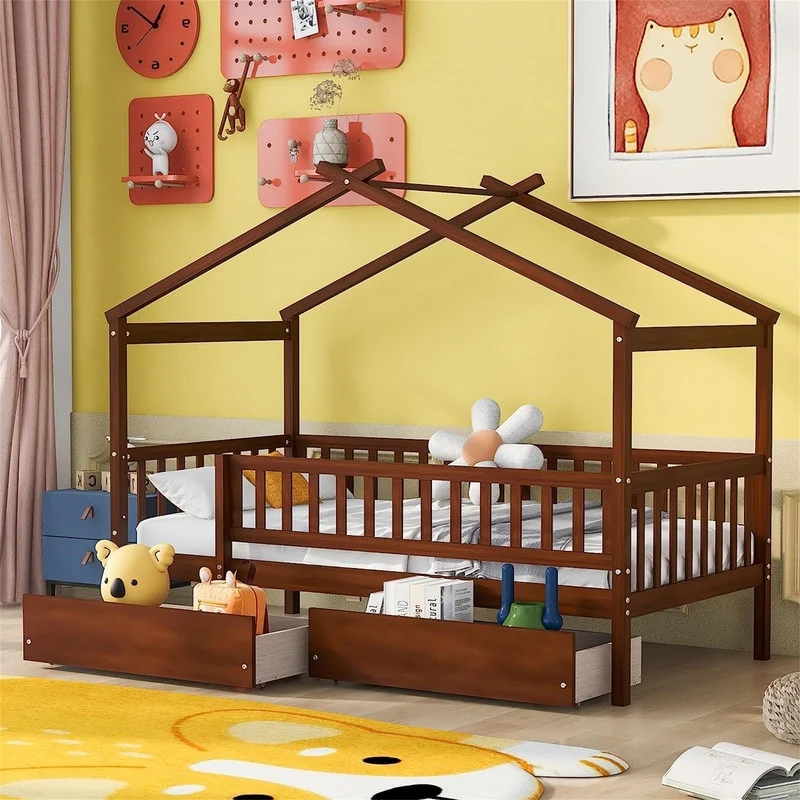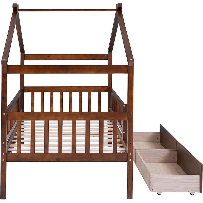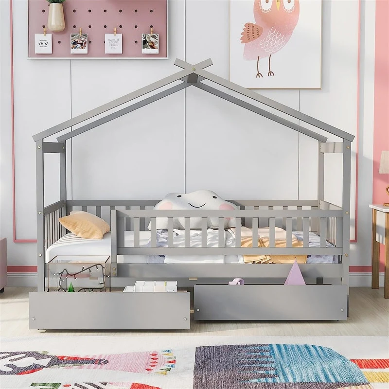 [Easy to Assemble House Bed Frame] - Kids Bed Frame Size:79.5'L x 41.8'W x 62.9'H. Our twin size house bed with drawers comes with 1 package included detailed instructions and numbered parts, so that it can be assembled step by step conveniently. If there is any part missing or damaged during shipping, please contact us, we will help you to solve the problem.