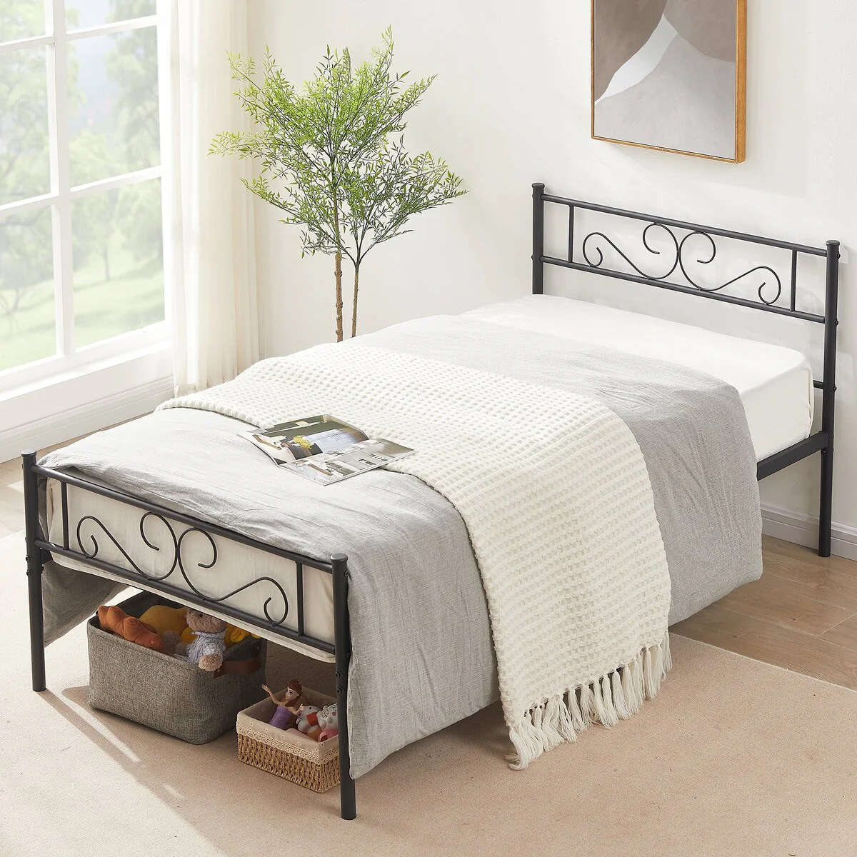 - Plenty of storage space - 12 inches off the floor for easy storage. You can put some storage boxes under the bed to organize clothes, toys or quilts.