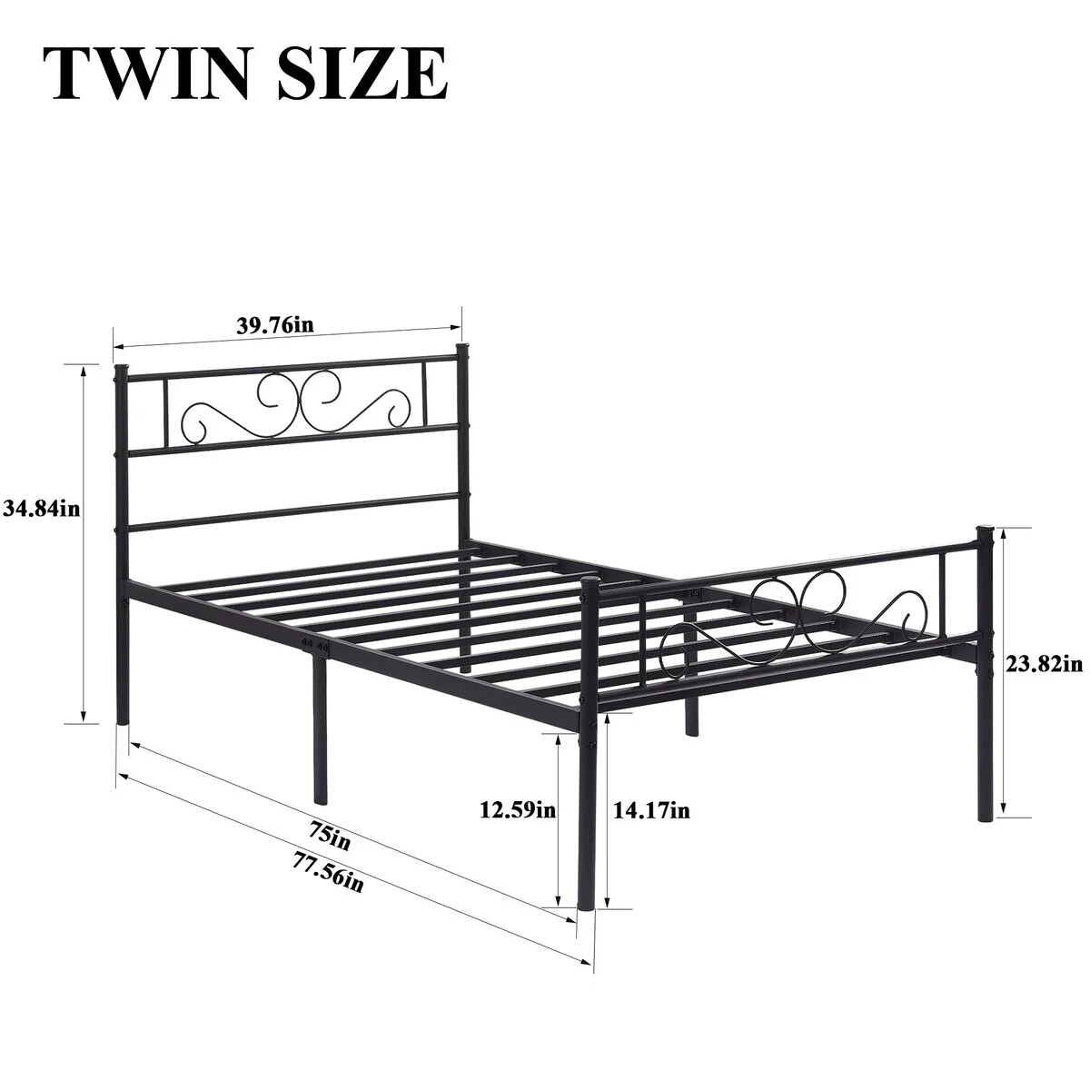 - Twin Size Bed: 40 'W x 75 'L x 35 'H