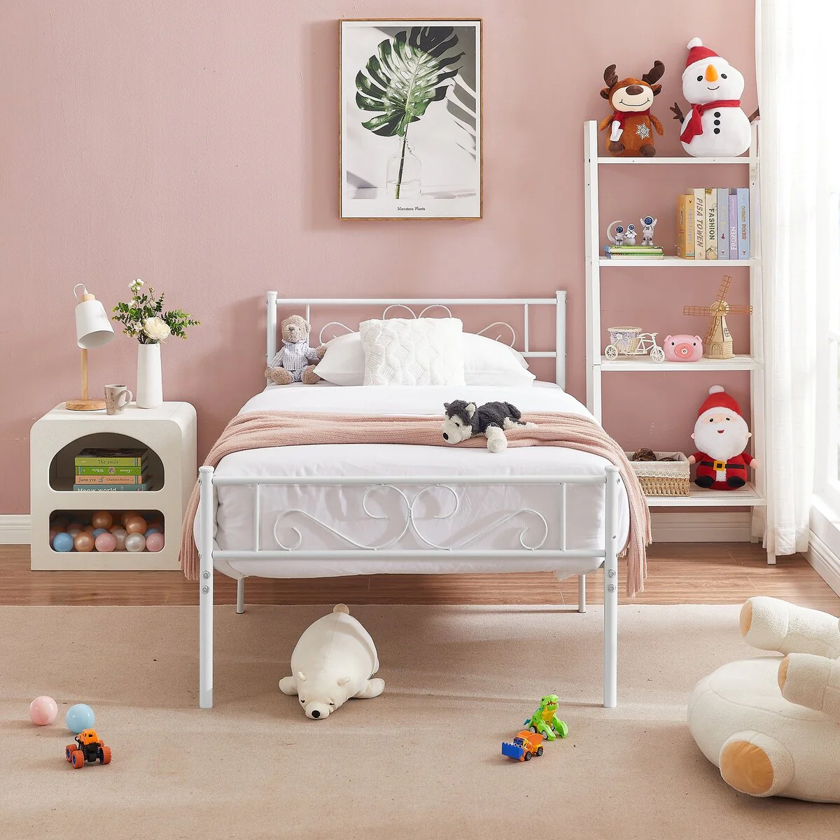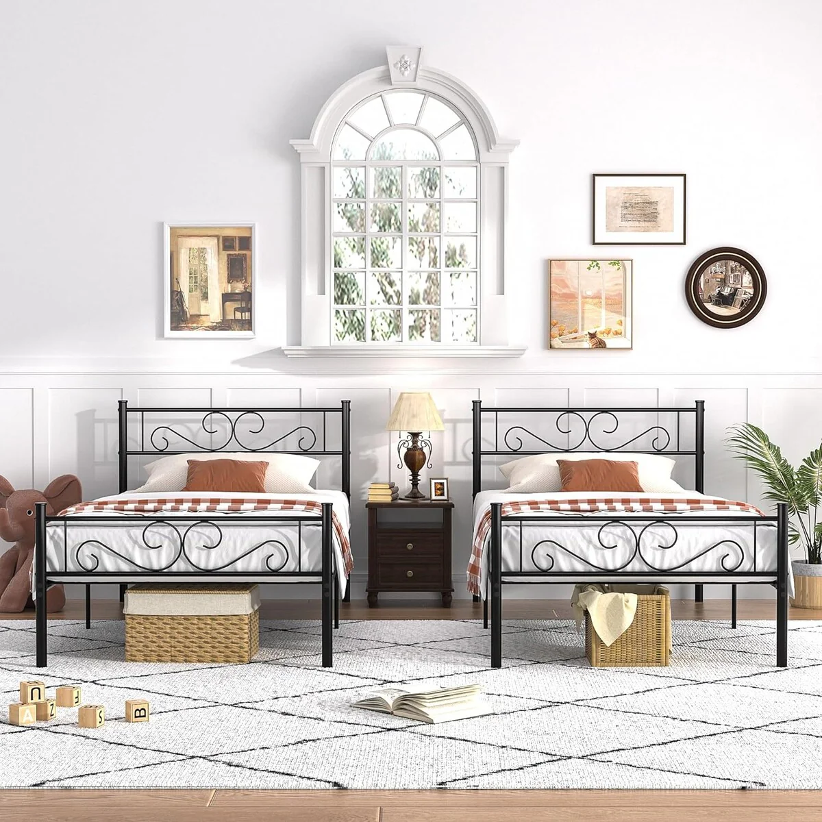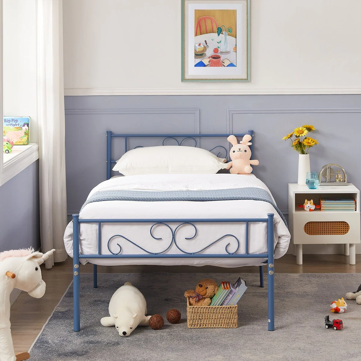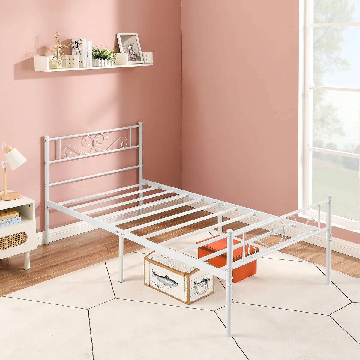 Two-piece bed frame available in 3 colors, whether the style of the bedroom is traditional, modern or a stylish combination of both, this metal bed 2-piece set will be the focal point of your child's room and make you and your little dreamer happy. Stay in a room to nurture your children's bond when they are young, and when they are older the bed can be moved to a separate room for easy movement and installation. This metal bed has a beautiful design that is both safe and a great place to sleep at night. Although designed for children, this attractive black metal bed is a great addition to any bedroom space. (Mattress sold separately)