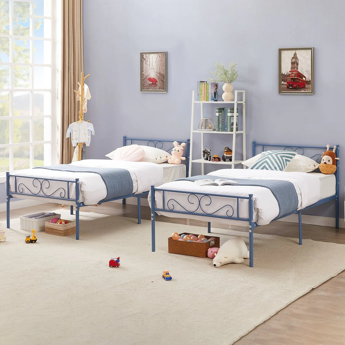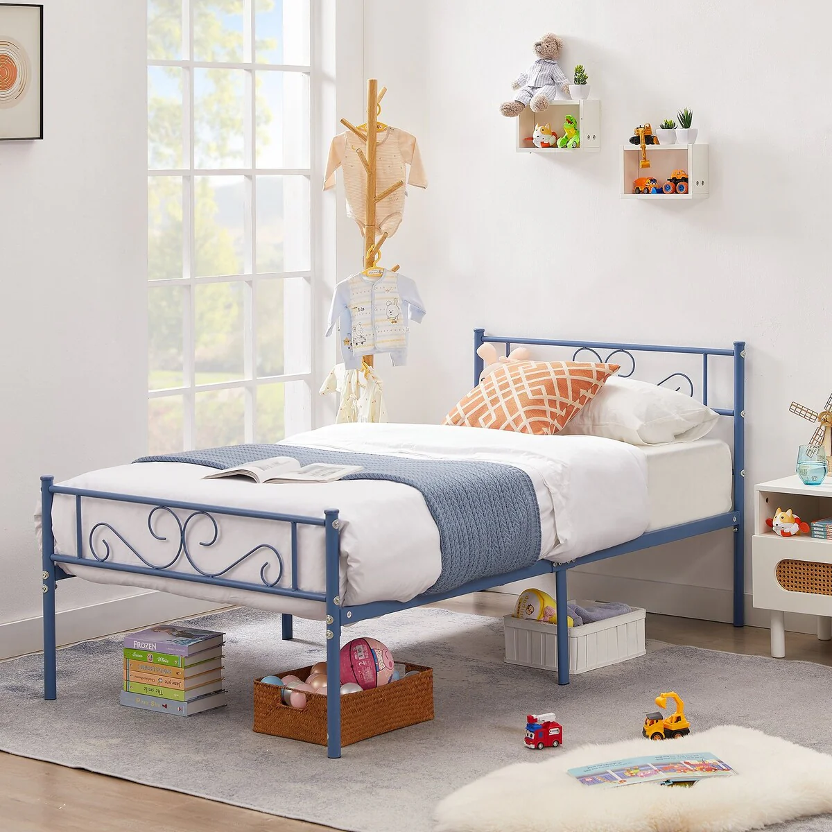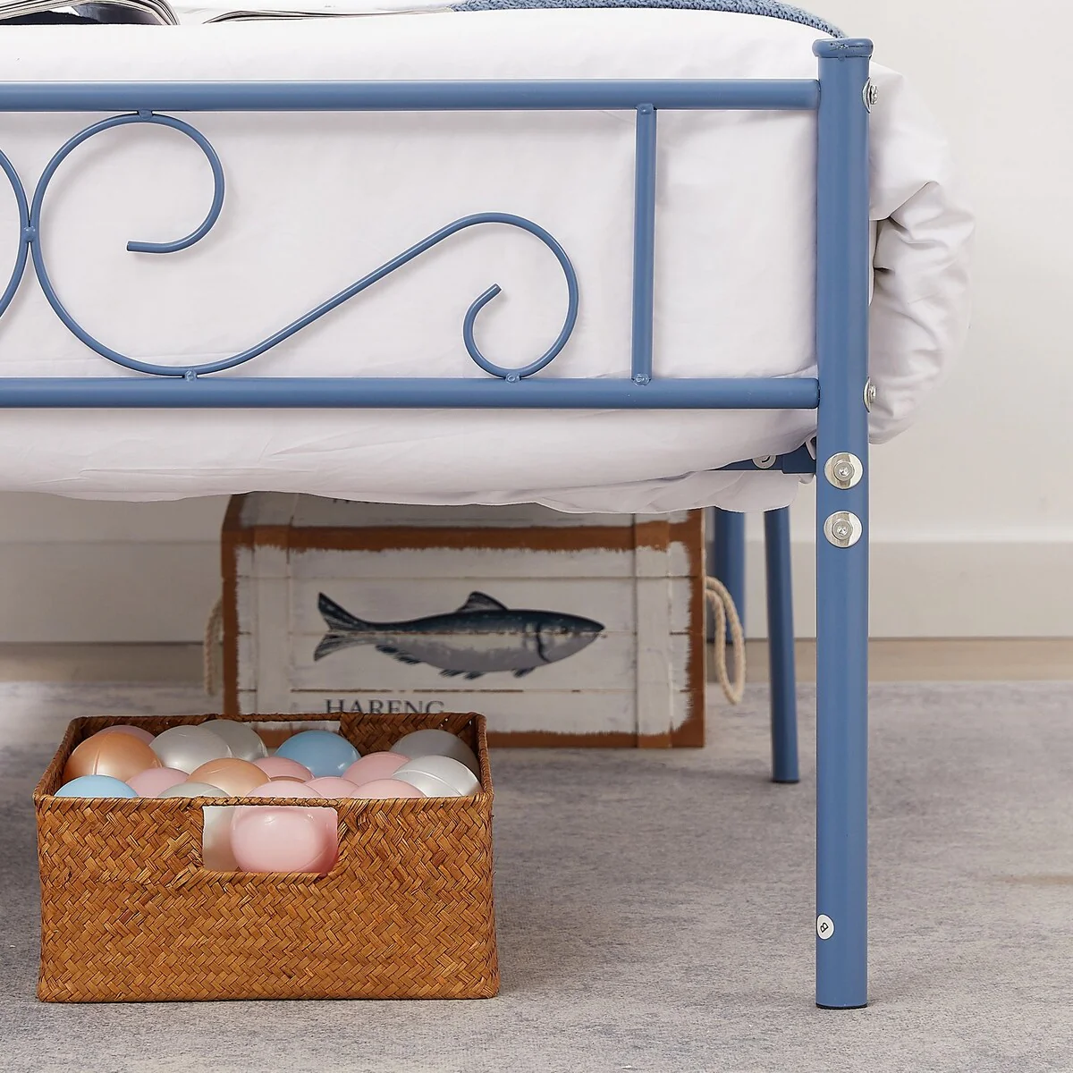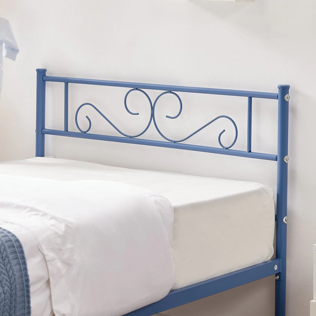 - Color: black bed frame, white Bed, blue Bed