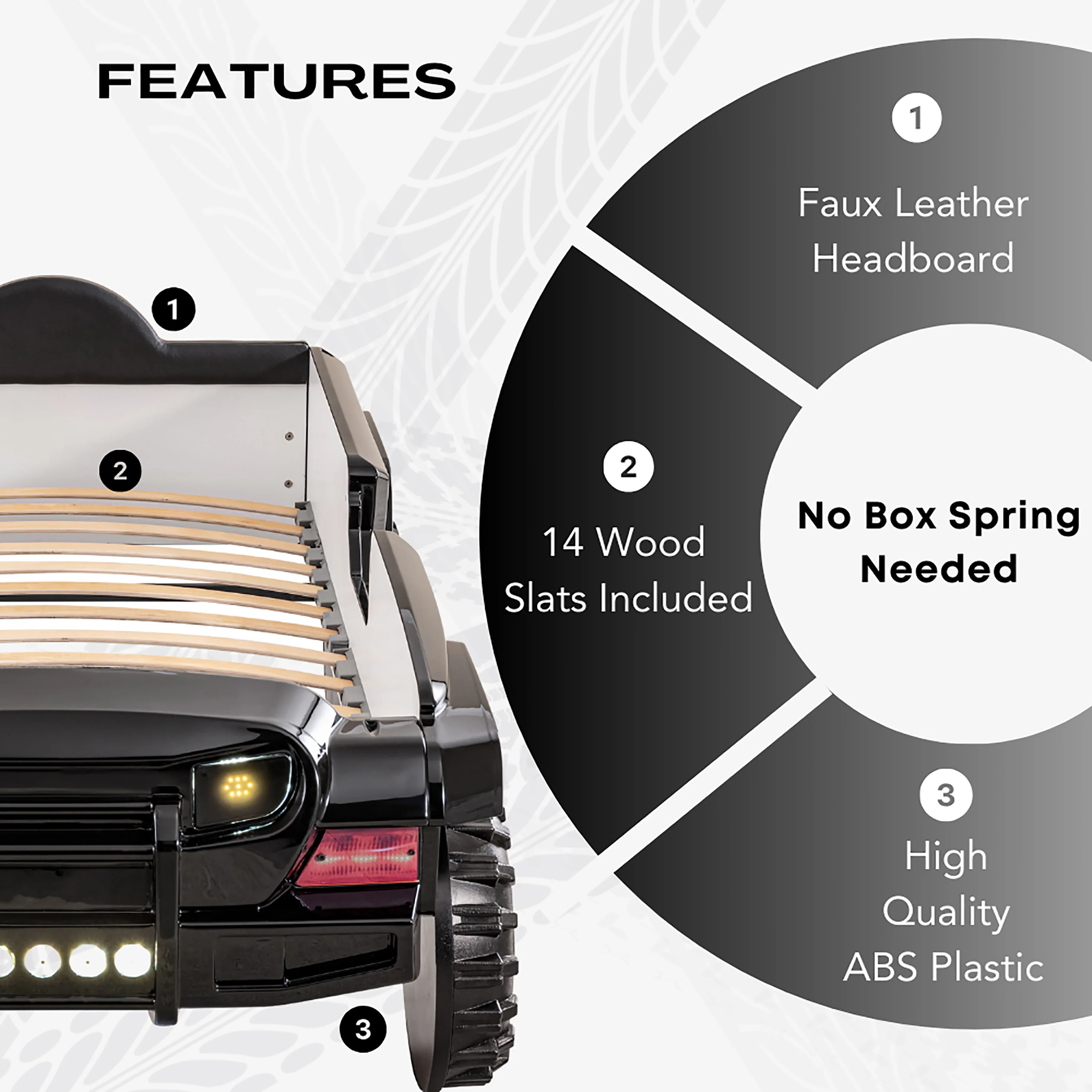 - Faux leather headboard ensures comfort