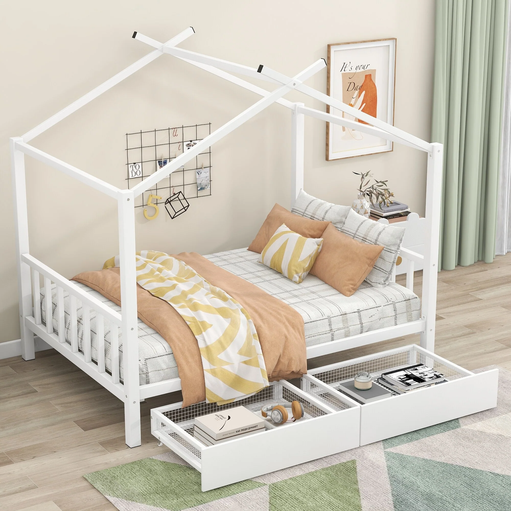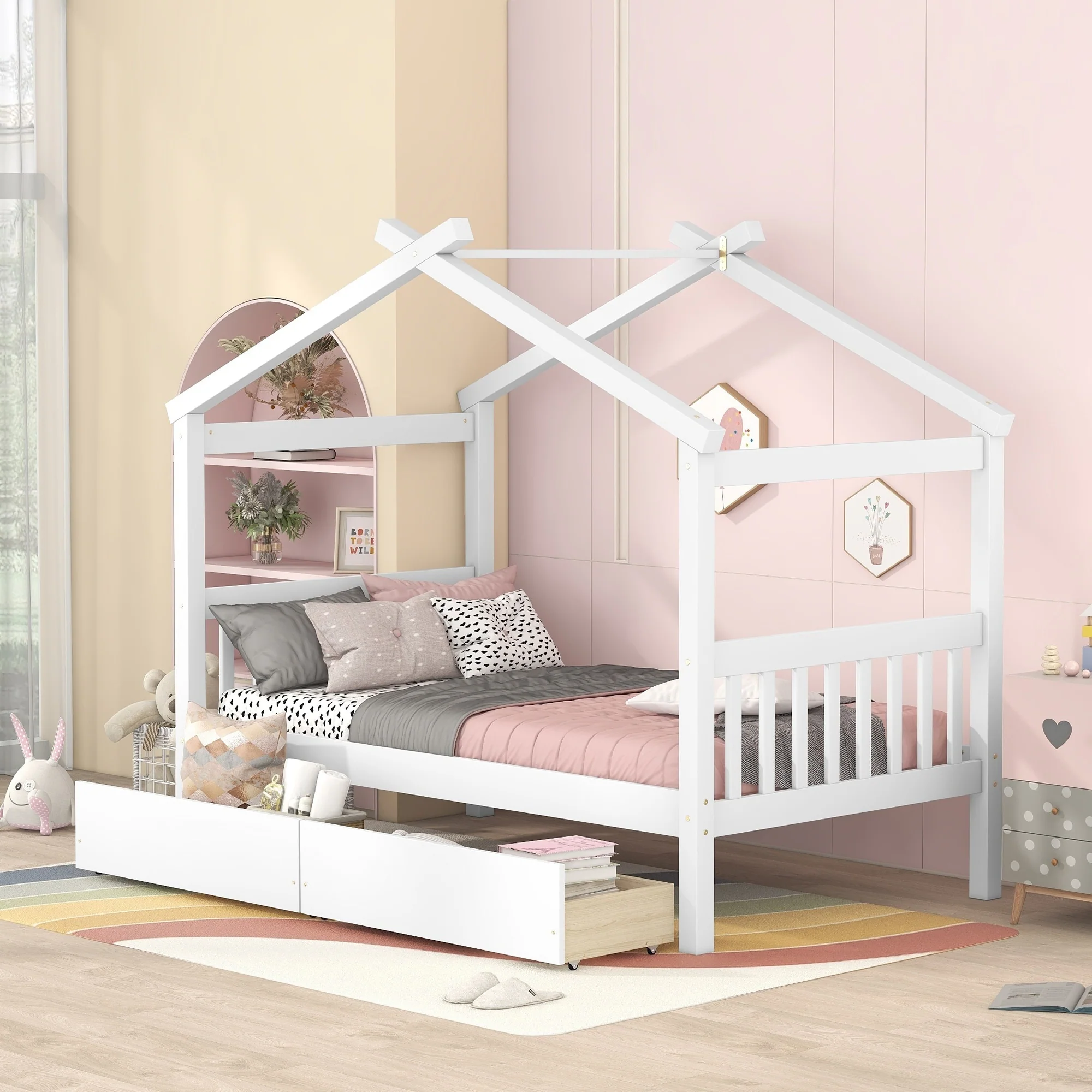 Creative Full-Size House Bed with Two Storage Drawers - Ideal for Kids' Rooms