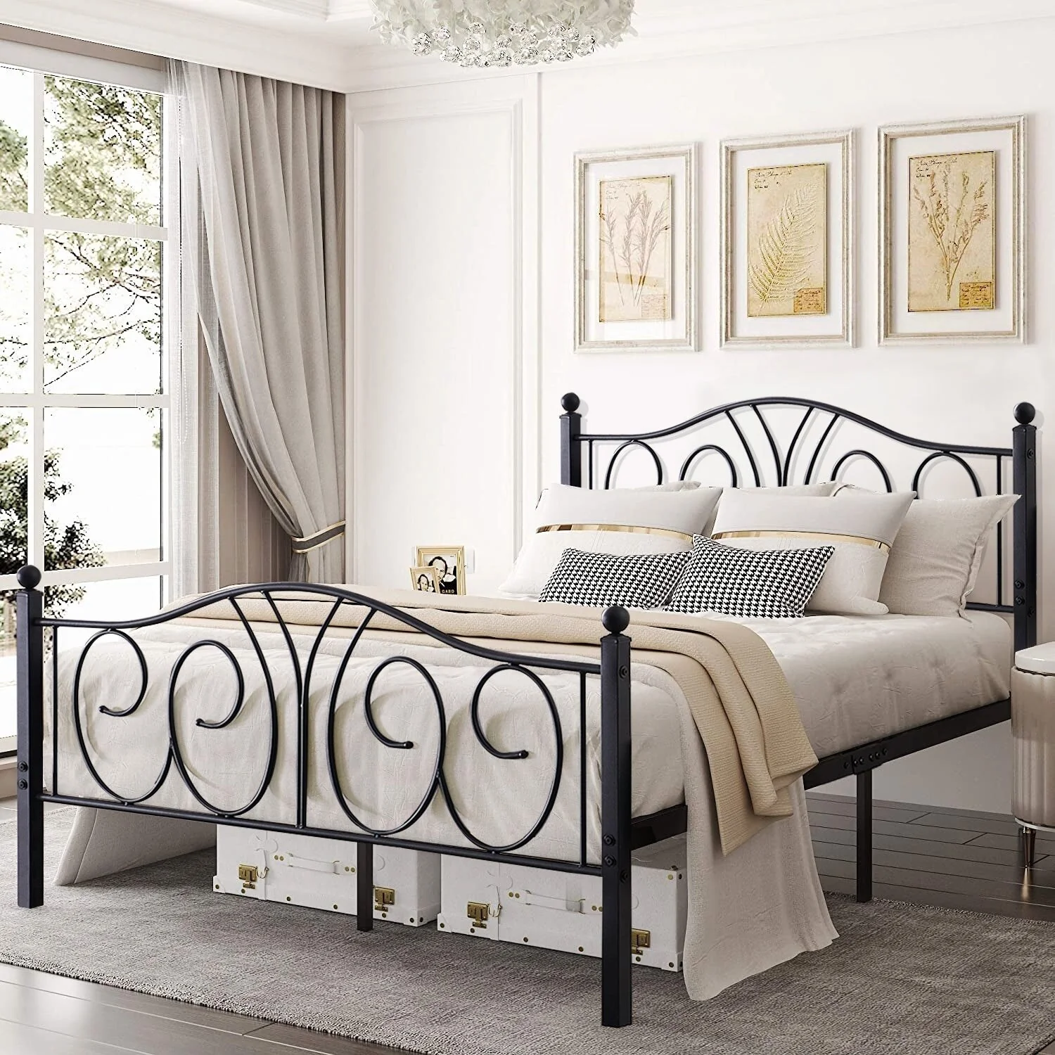 Black Vintage Scroll Metal Platform Bed Frames with Headboard