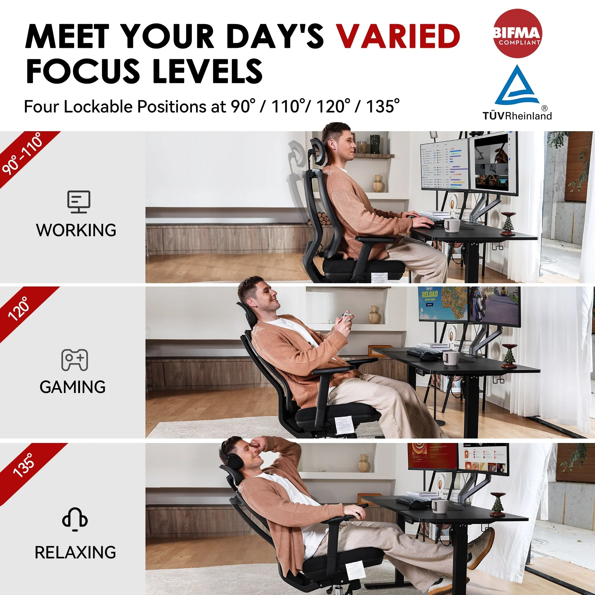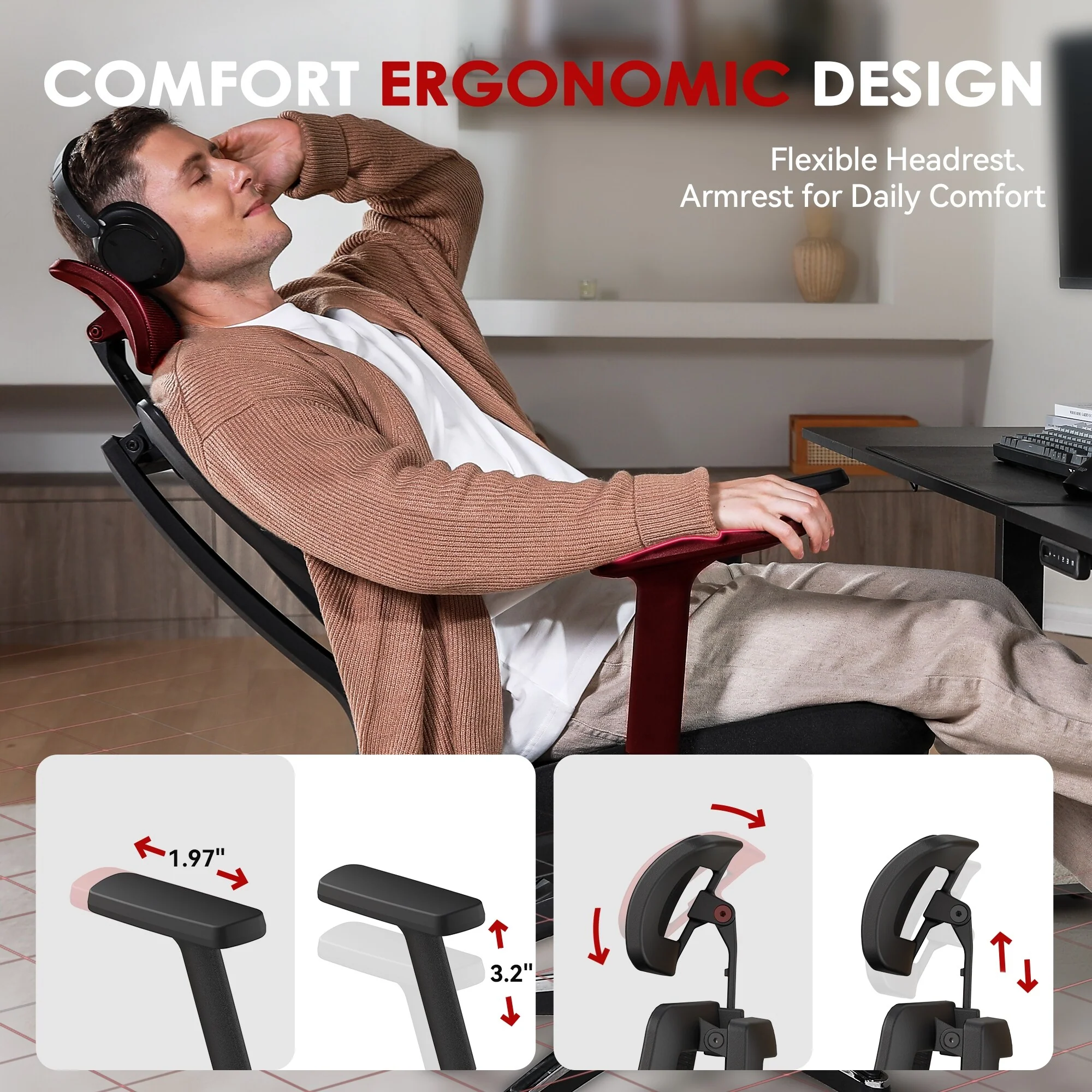 - EASILY ADJUSTABLE COMPUTER DESK CHAIR: The highlight of our office desk chair is that the seat depth can be adjusted 2 inches. All adjustments in this mesh office chair are within reach, chair height, 4 angles tilt locking, headrest height and angle, 3D armrests, tension. It is a customized comfy office chair for different heights and shapes. Our ergonomic desk chair offers 7 supporting points (head, shoulder, back, lumbar, arms, hips, legs)