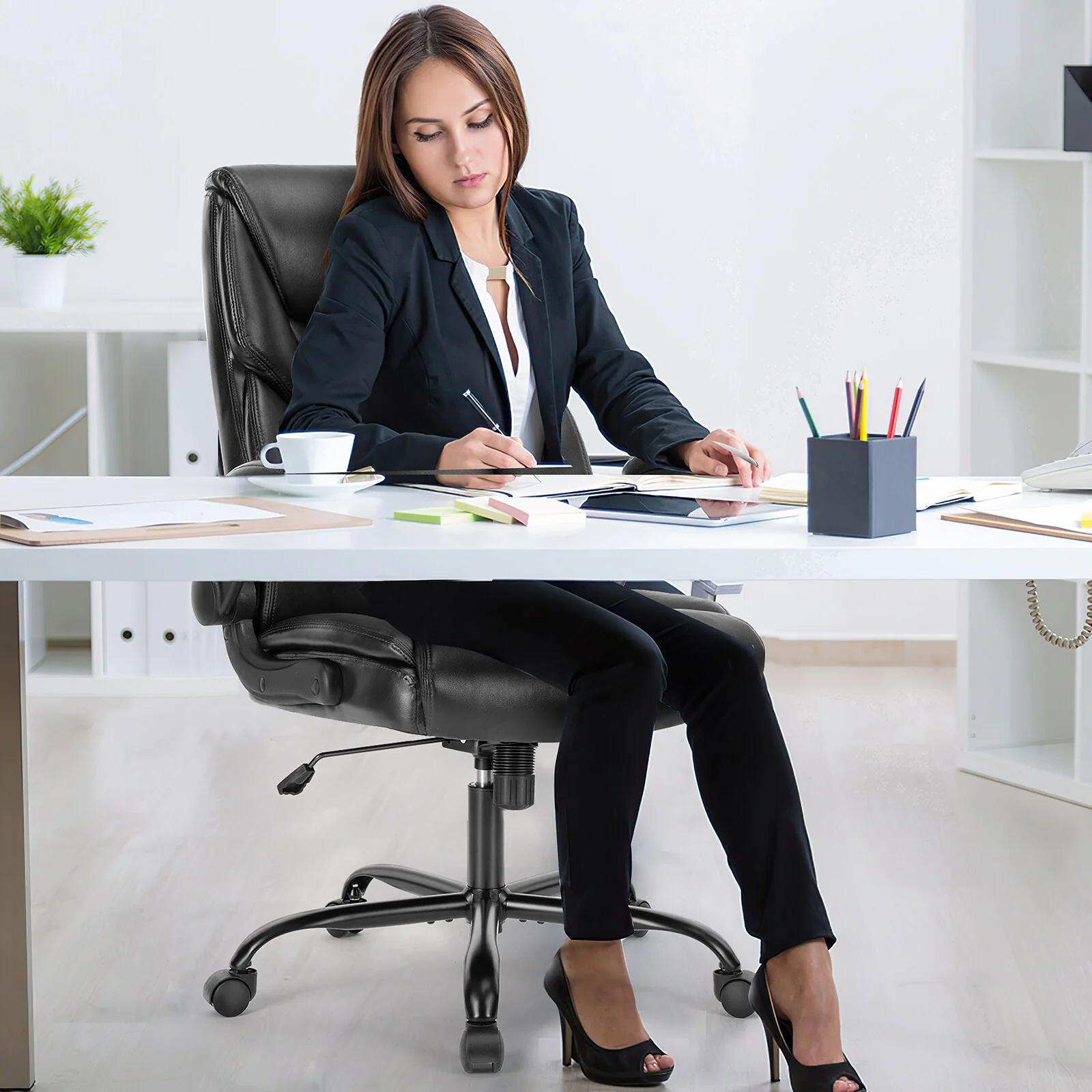 This executive desk chair is designed for comfort and durability, featuring bonded leather upholstery that resists scratches, stains, and peeling. With an elegant look and padded armrests, it's the perfect addition to any home or office setting.