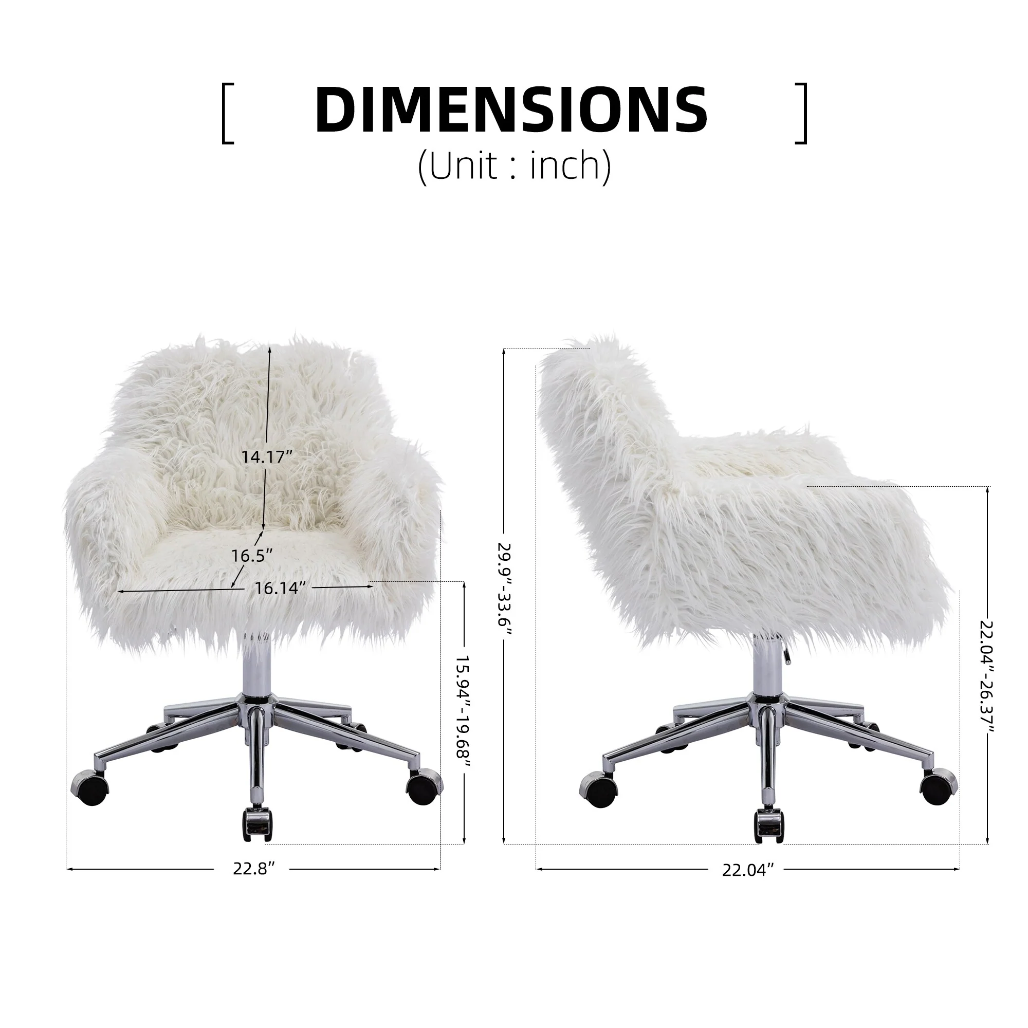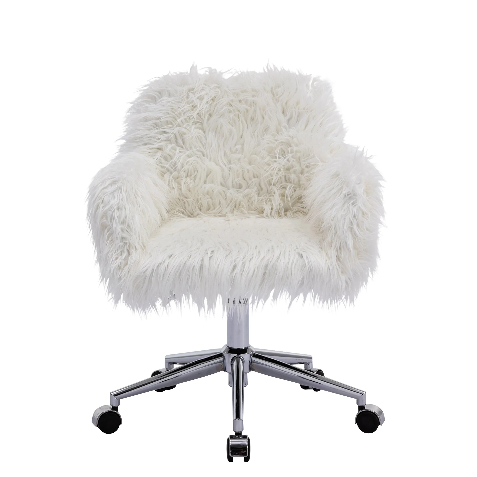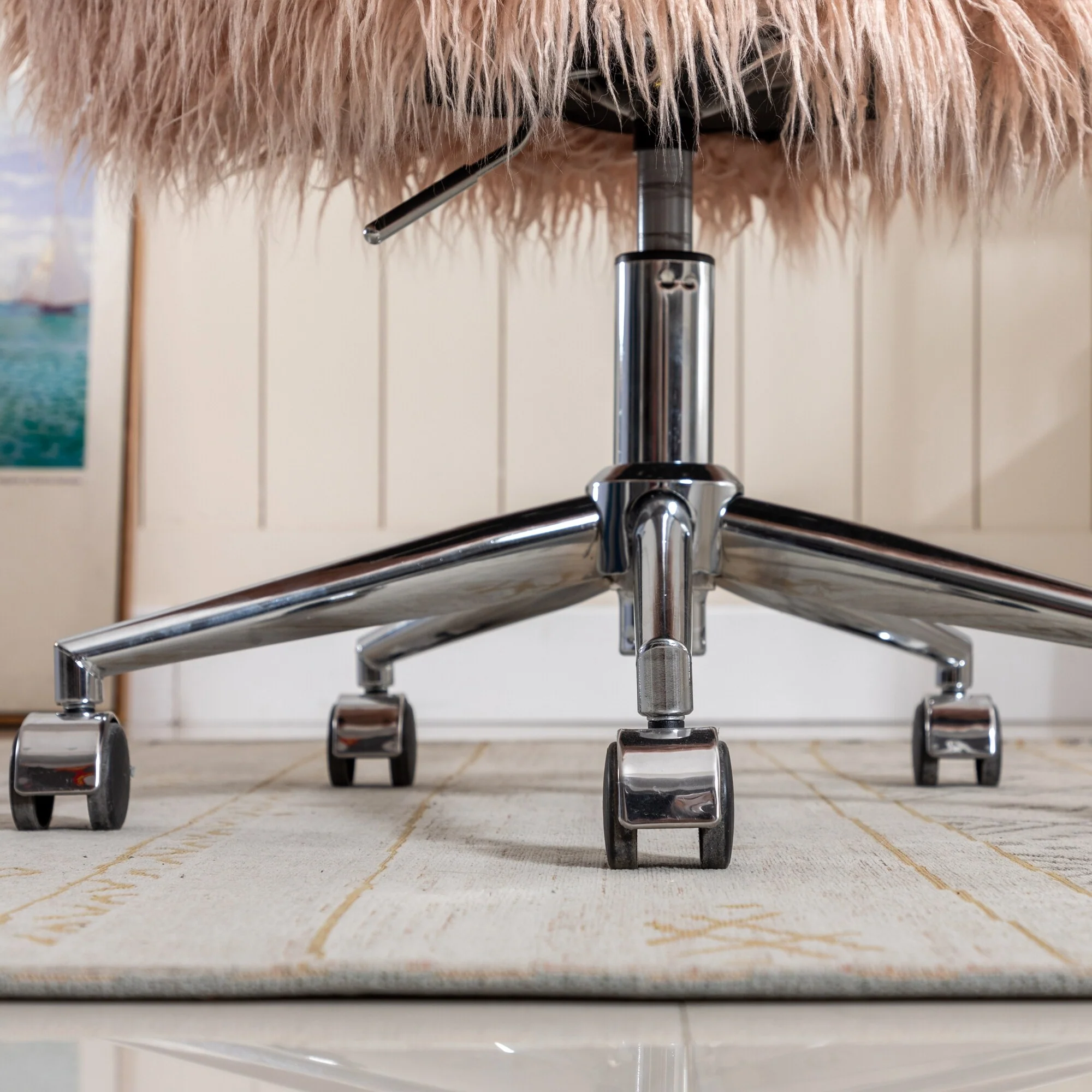 Elevate your workspace with this stylish office chair featuring a metal frame and a sleek chrome base. The pink faux fur upholstery adds a trendy and eye-catching touch, while the adjustable seat height ensures a comfortable fit for various desk setups.Perfect for those who want to blend fashion with function in their home office or workspace.