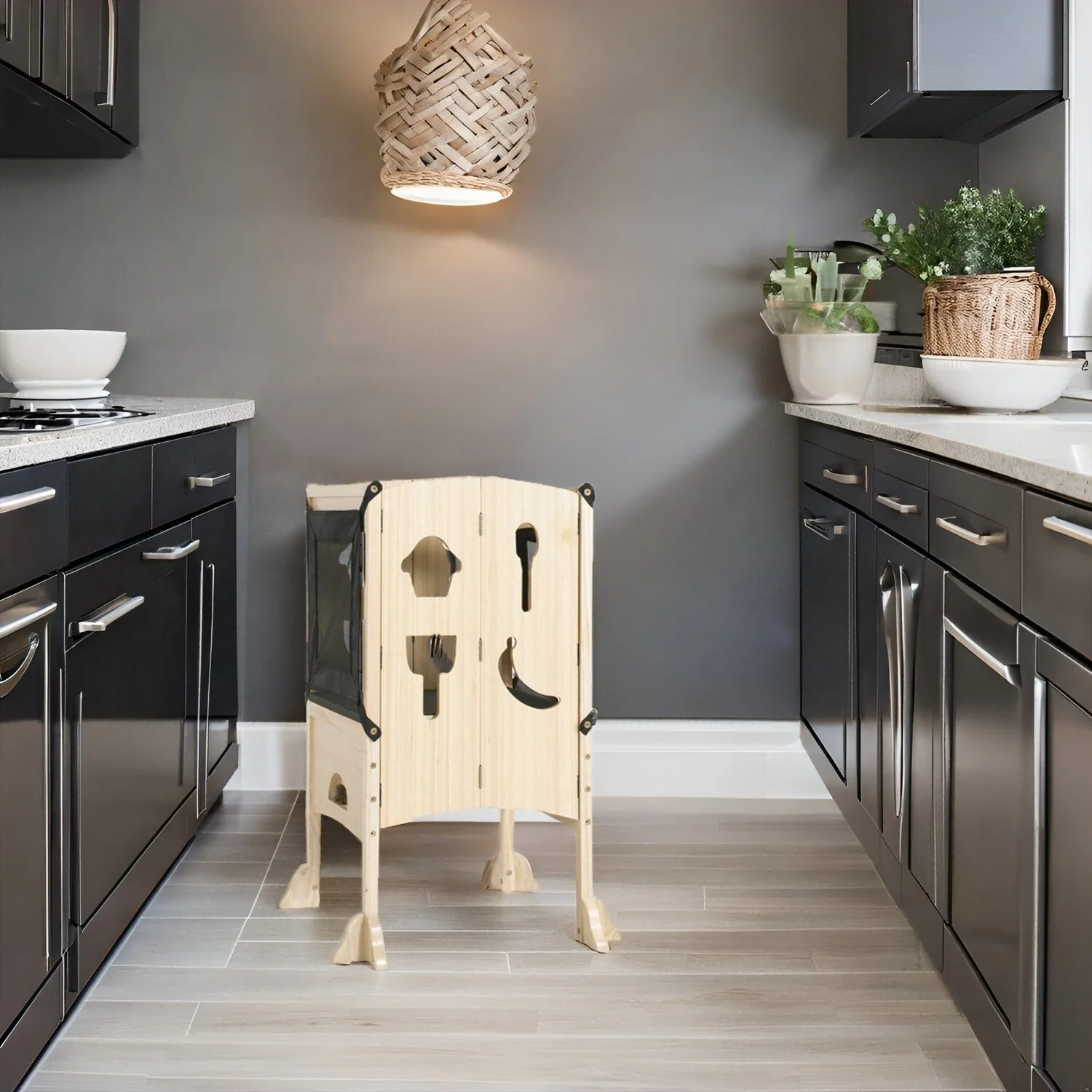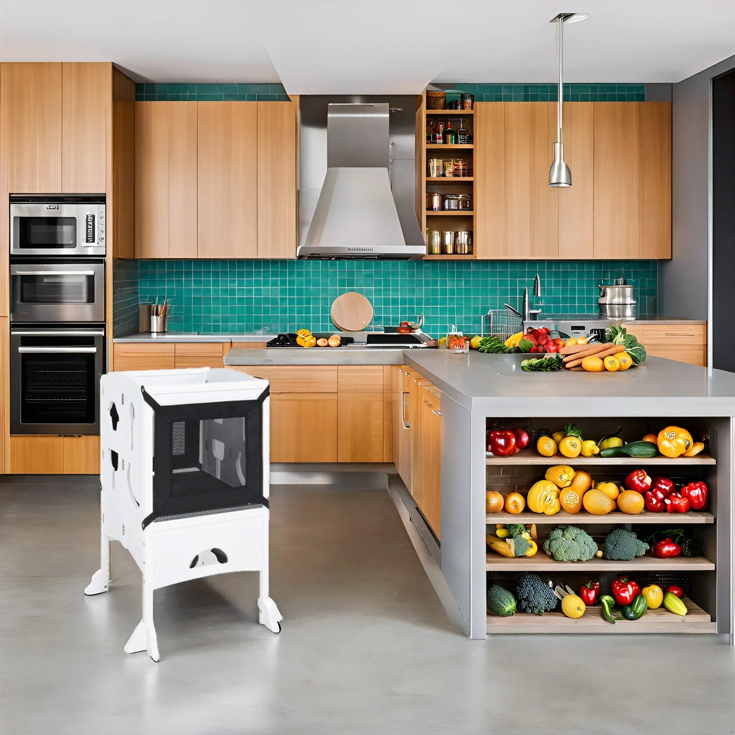 - KIDS KITCHEN STEP STOOL: Designed to help children gain independence by reaching areas like bathroom sinks, kitchen counters, and high shelves with ease. This foldable tower stool encourages fun learning experiences, such as rolling pizza dough and using cookie cutters, making it perfect for interactive activities.