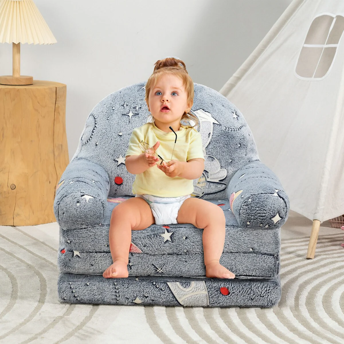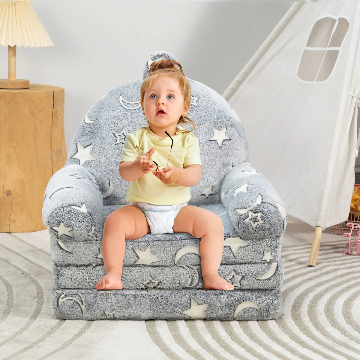This convertible seat on this sofa easily flips open to reveal multiple ways for your child to relax--they'll love to sit and read or watch their favorite movies on the chair but when it's time for a nap, this seat folds out into a comfy sleeper bed.