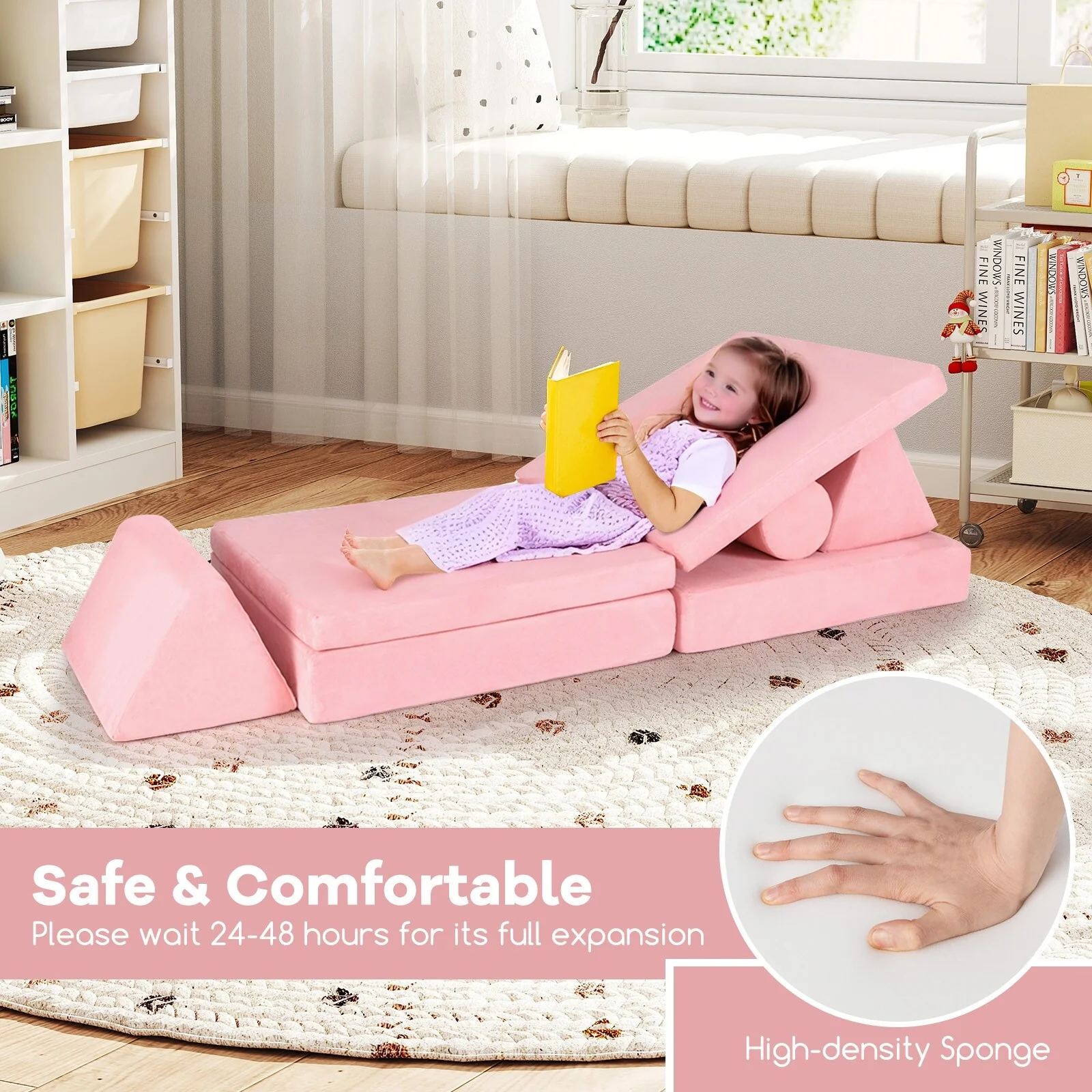 Transform playtime into an adventure with the modular magic play couch! This versatile 8-piece foam set can be assembled into anything from floor sofas to secret forts, encouraging children to unleash their creativity and imagination.Ideal for children aged 3 years old and up, this play couch not only sparks creativity but also aids in the development of motor ability and concentration. No assembly is required; simply unbox, and the set is ready for action after expanding within 24-48 hours. It's the perfect gift to keep kids engaged and entertained!