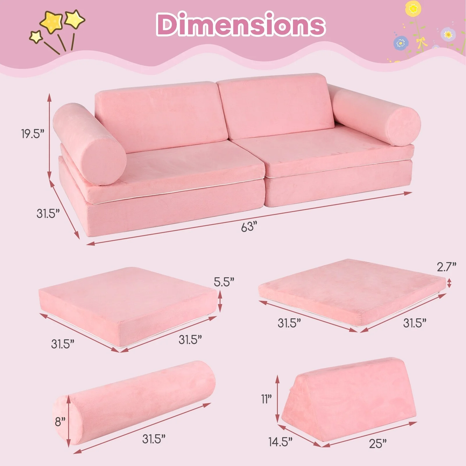 8-piece modular sofa playset allows endless imaginative ways to combine