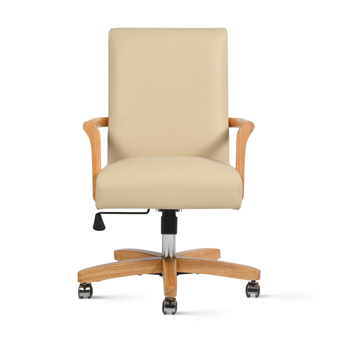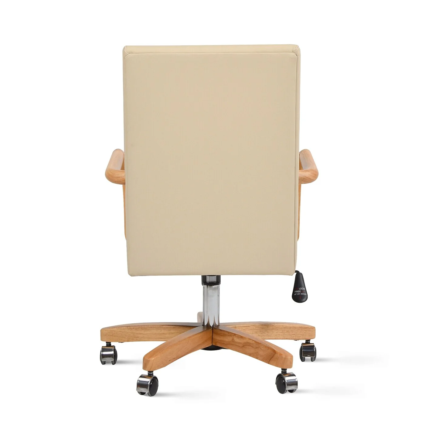 Crafted with genuine top grain leather upholstery, this office chair combines sophistication and durability. The high back support and ergonomic design provide excellent lumbar support, making it ideal for long hours of work or study.