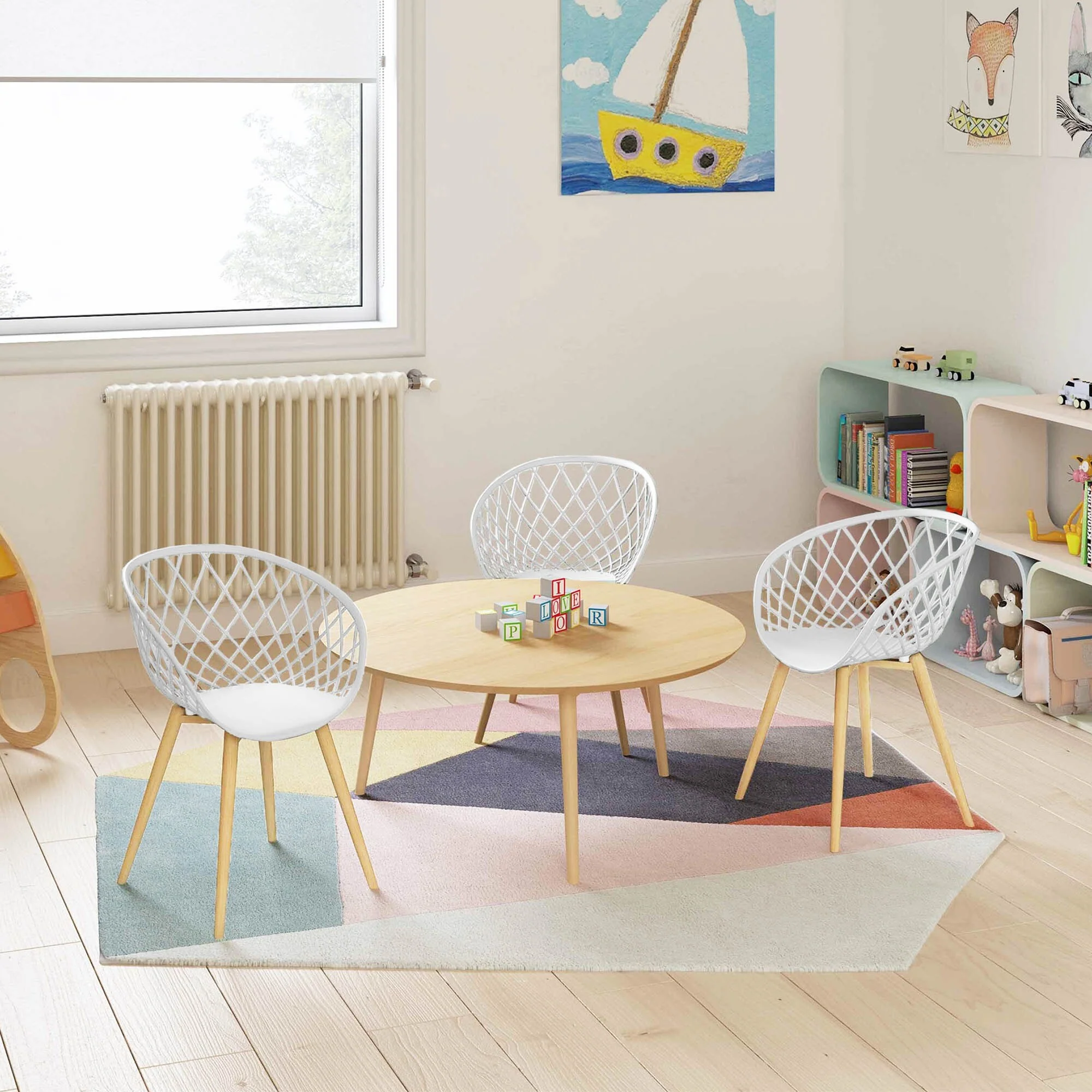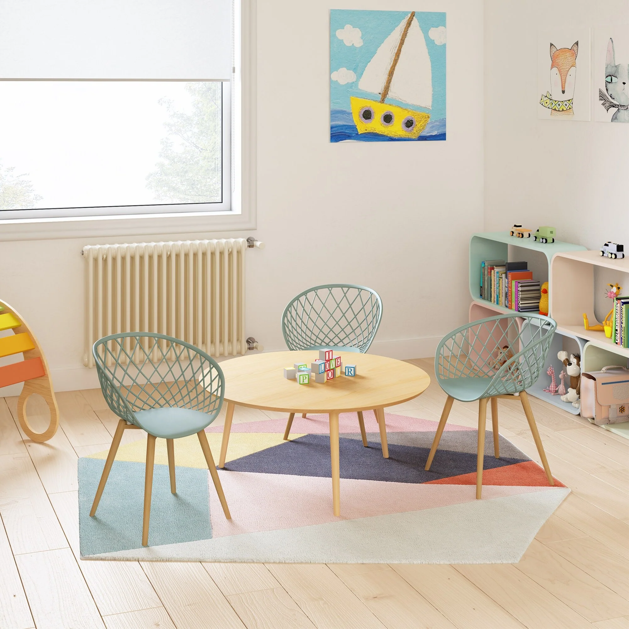 The stylish Kurv Chair suddenly becomes super cute with a mini version designed just for kids. Proving that good style can start young, the chair adds an element of flair when paired with a desk or as a group of them around a play table. While kids can be tough on furniture, the Kurv Mini Chair can hold its own with durable, easy-to-clean surfaces. It's also weatherproof, making it ideal for play on the patio, balcony, or deck. The fashionable and airy design features steel angle legs that complement just about any space, and soft colors add a touch of sophistication to the children's room or play area. While the chair is sturdy and resilient, it's surprisingly lightweight for easy mobility. The contoured chair seat is ergonomically designed with comfort in mind for little ones. Minor assembly is required.