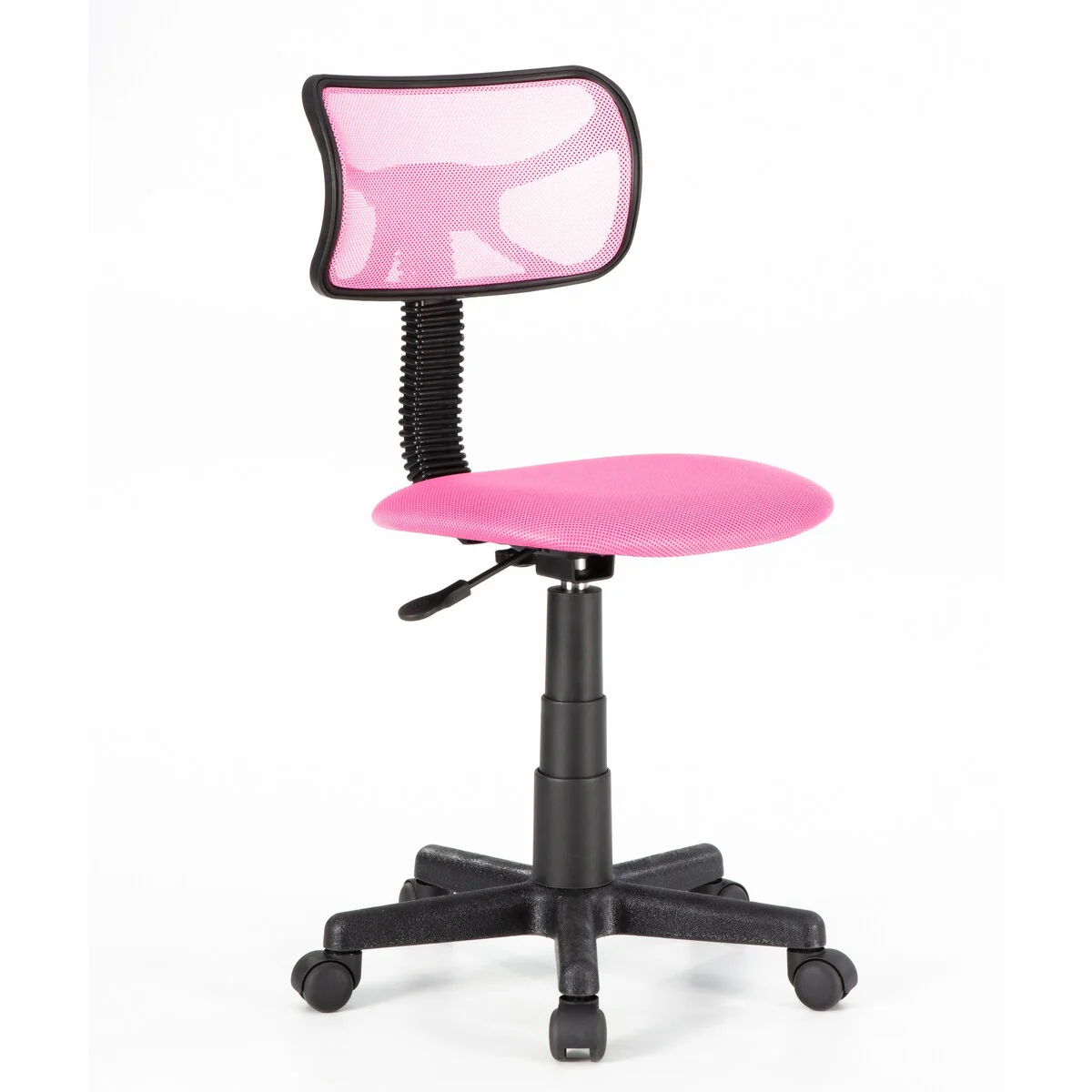The JJS Kids' Height-adjustable Mesh-back Rolling Swivel Task Chair is the perfect addition to your child's study space. With its breathable mesh back, foam-cushioned seating, and 360-degree swivel, this chair provides comfort and support for extended periods. Its adjustable seat height via gas-lift mechanism and sturdy plastic casters make it easy for your child to move around and find the perfect position to focus. Available in four fun colors to match any room decor.