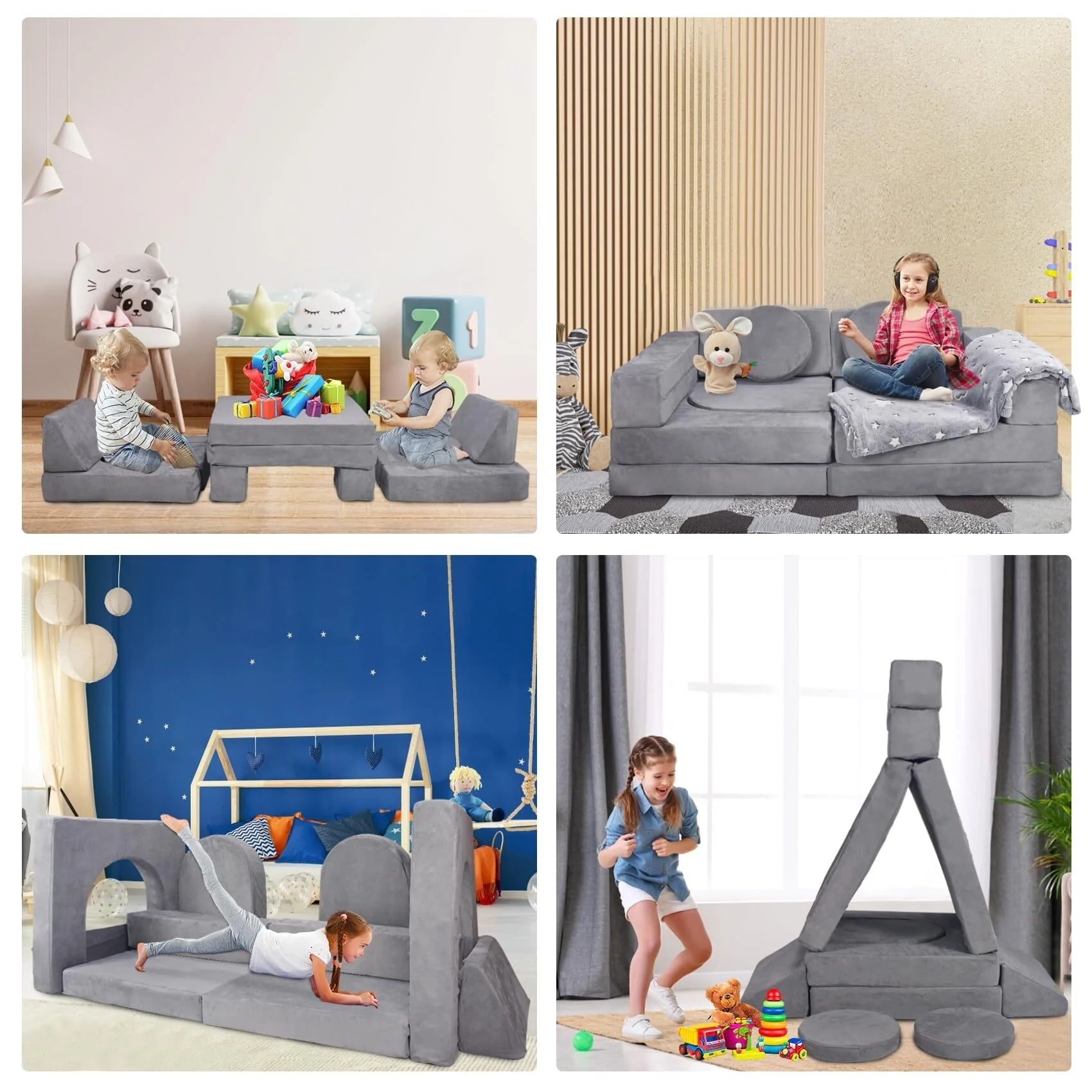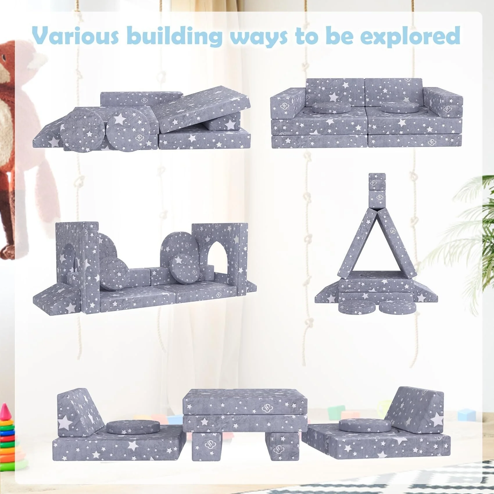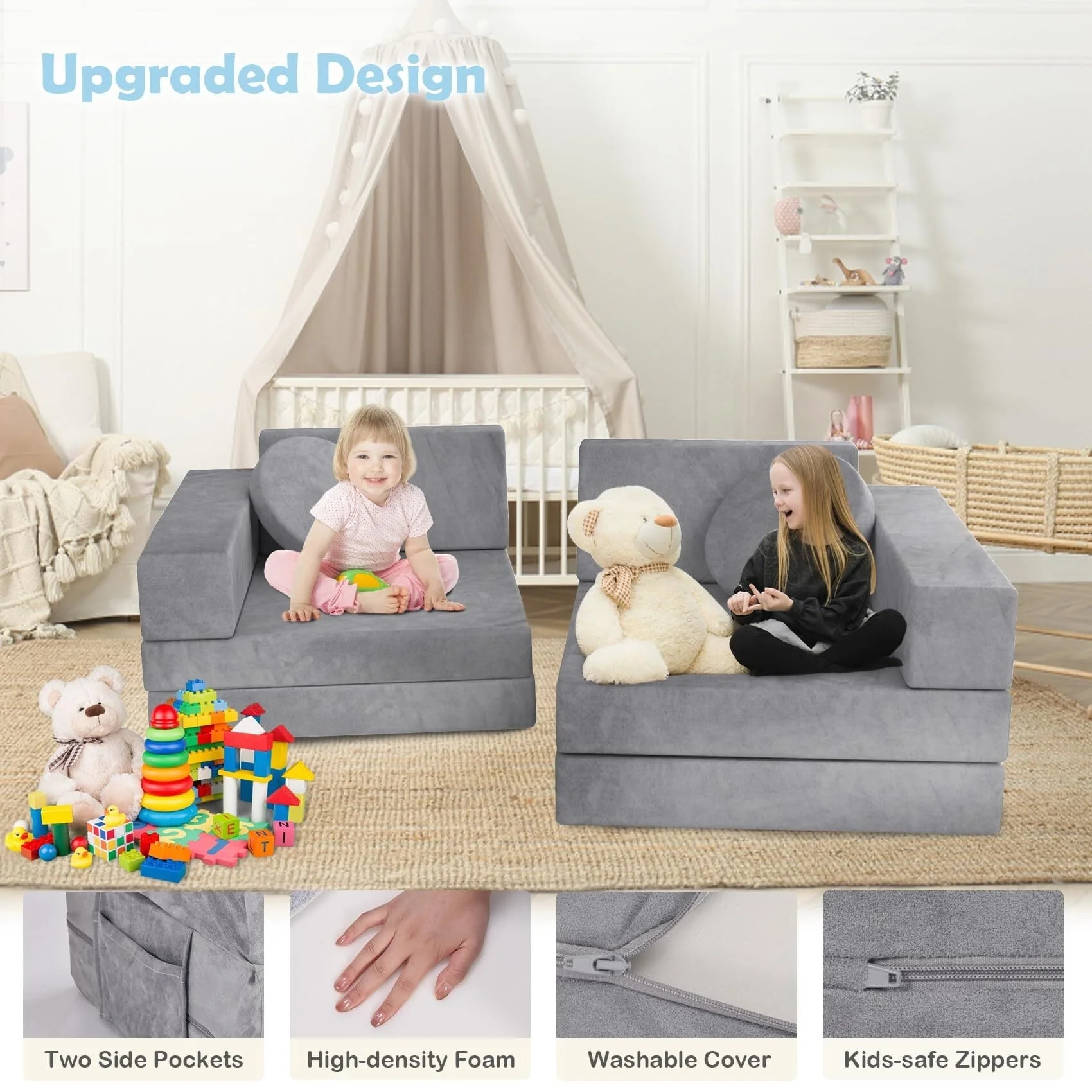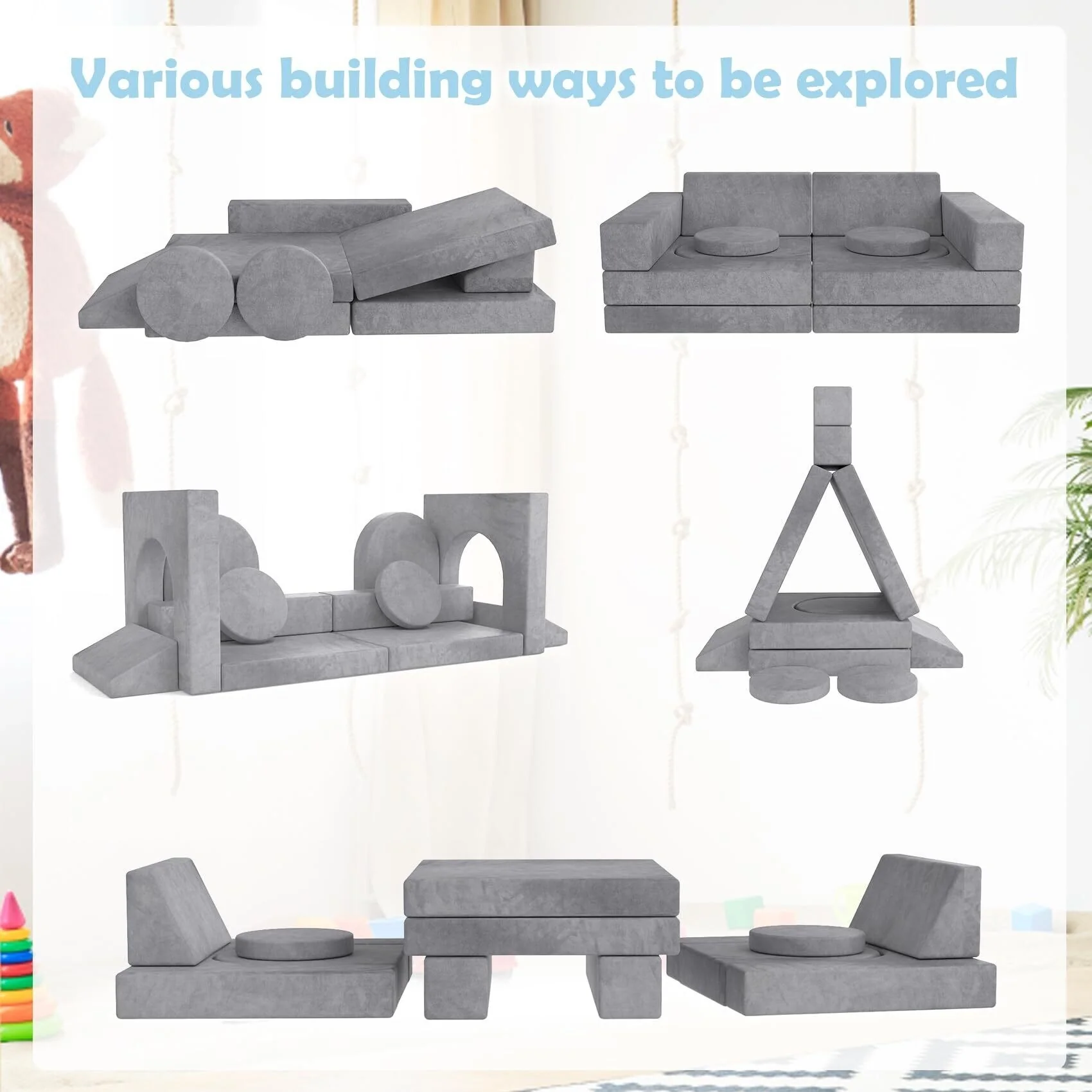 【The Preferred Toy Gift for Toddler Intellectual Development】This combination kids sofa has tremendous potential for fostering creativity and imagination. Toddlers and children will love to explore, crawl, and climb on these comfortable cushions. They can build as many different block structures as their imagination allows. Our versatile toddler sofa is designed to promote imaginative play and gross motor skills in children. It's a perfect birthday, Christmas, and baby shower gift.
