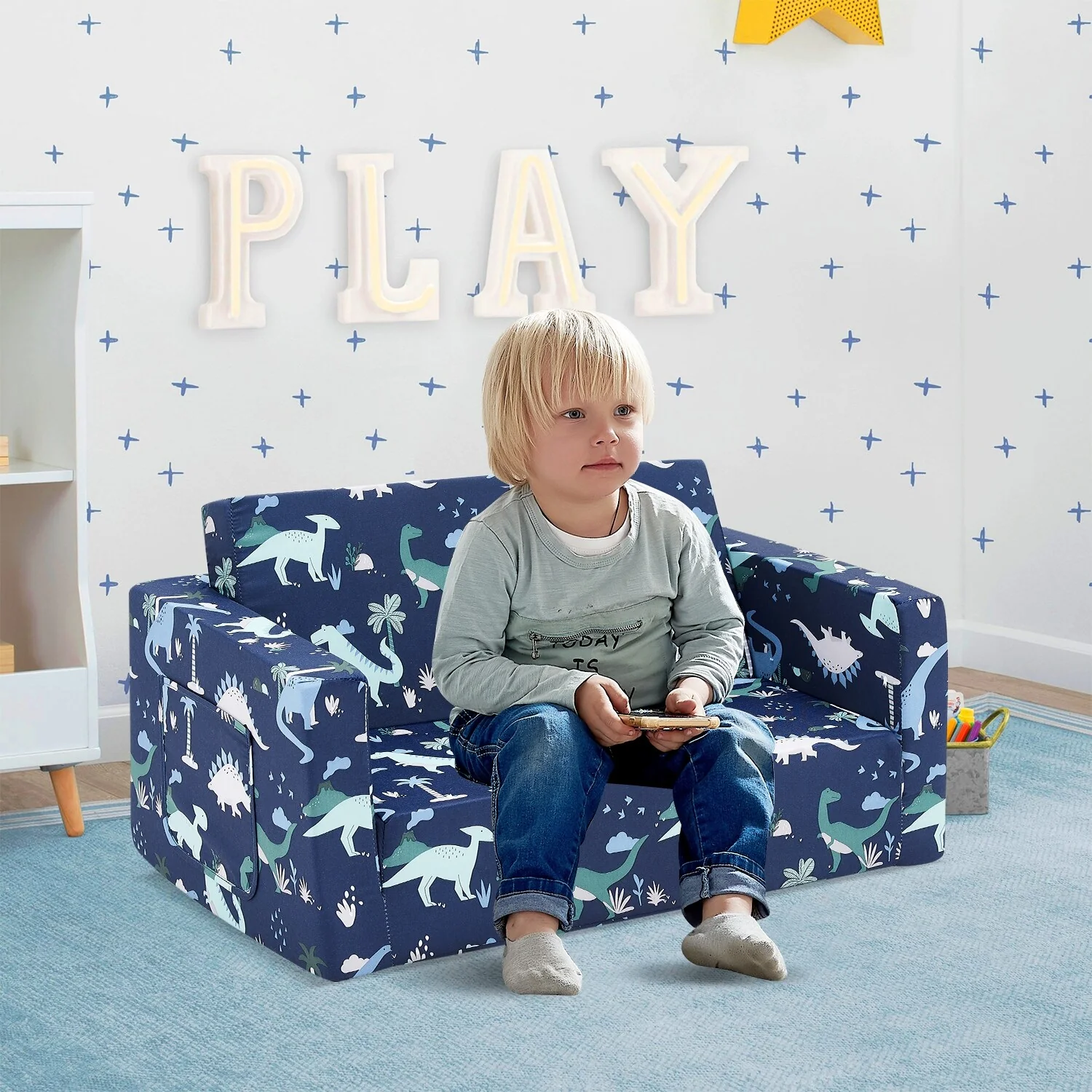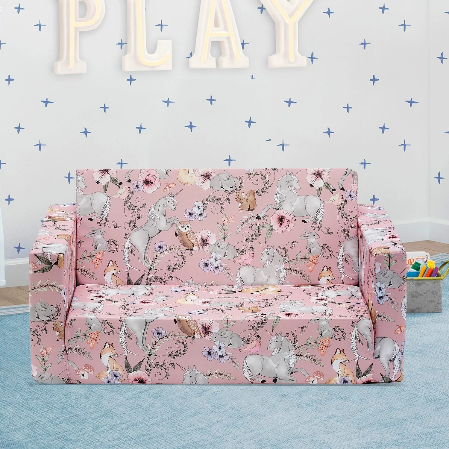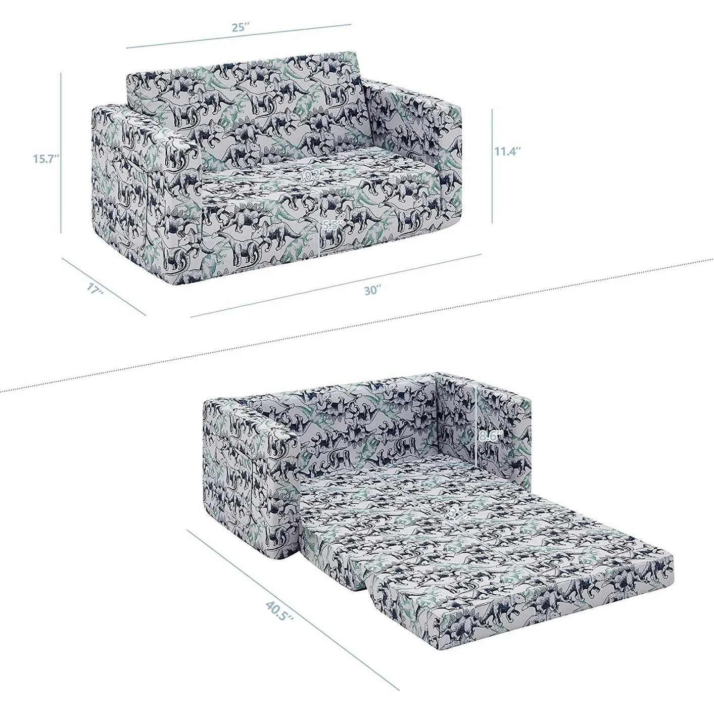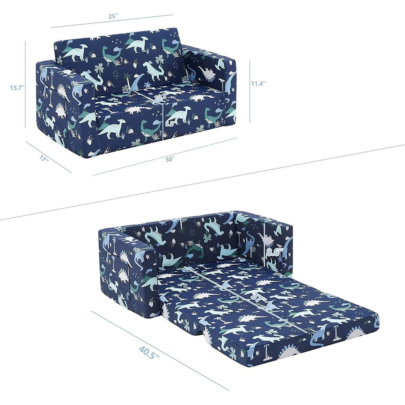 This flip-open chair converts to a lounger/sleeper. Ideal for reading, relaxing, playing, or sleeping, your child will enjoy this chair with siblings/friends.