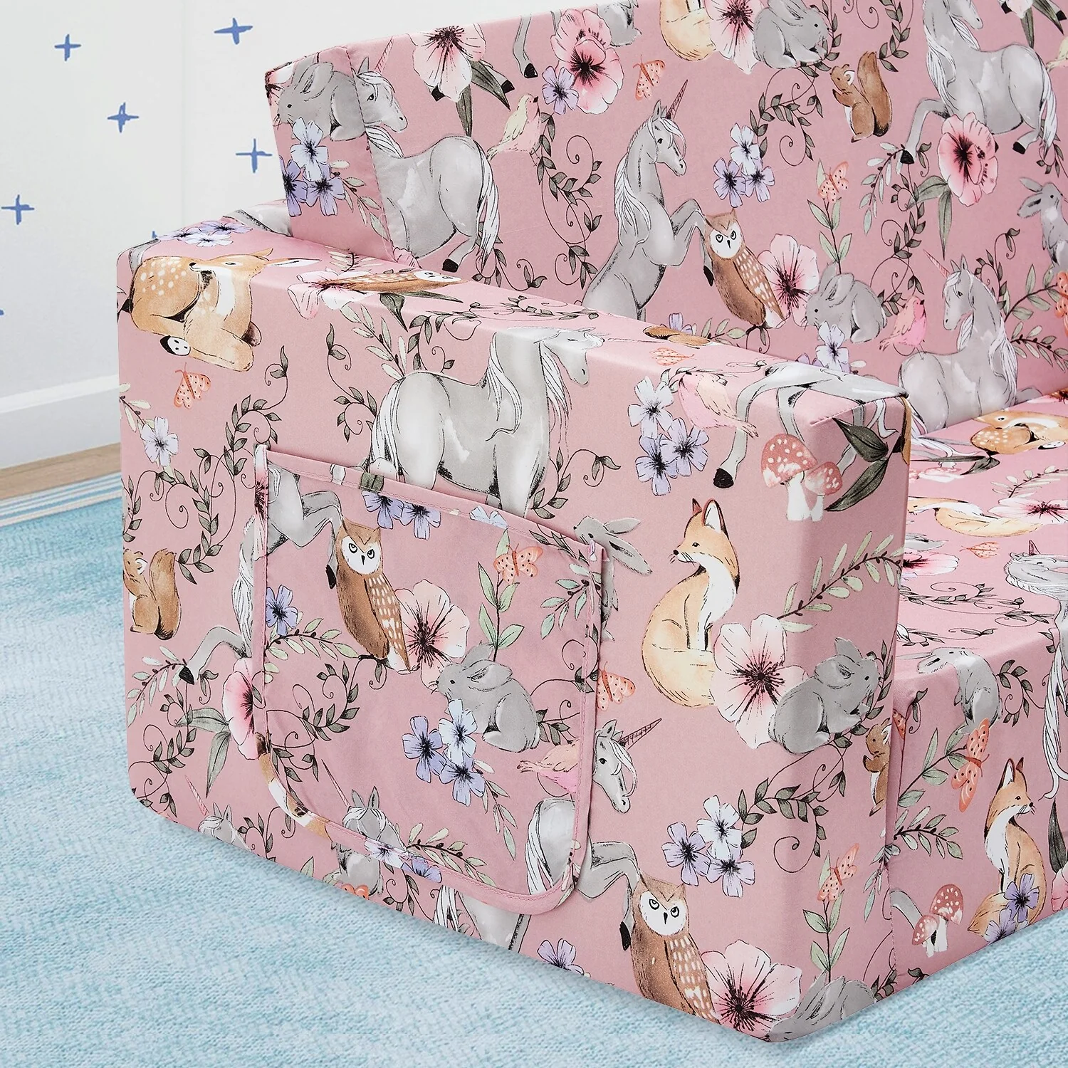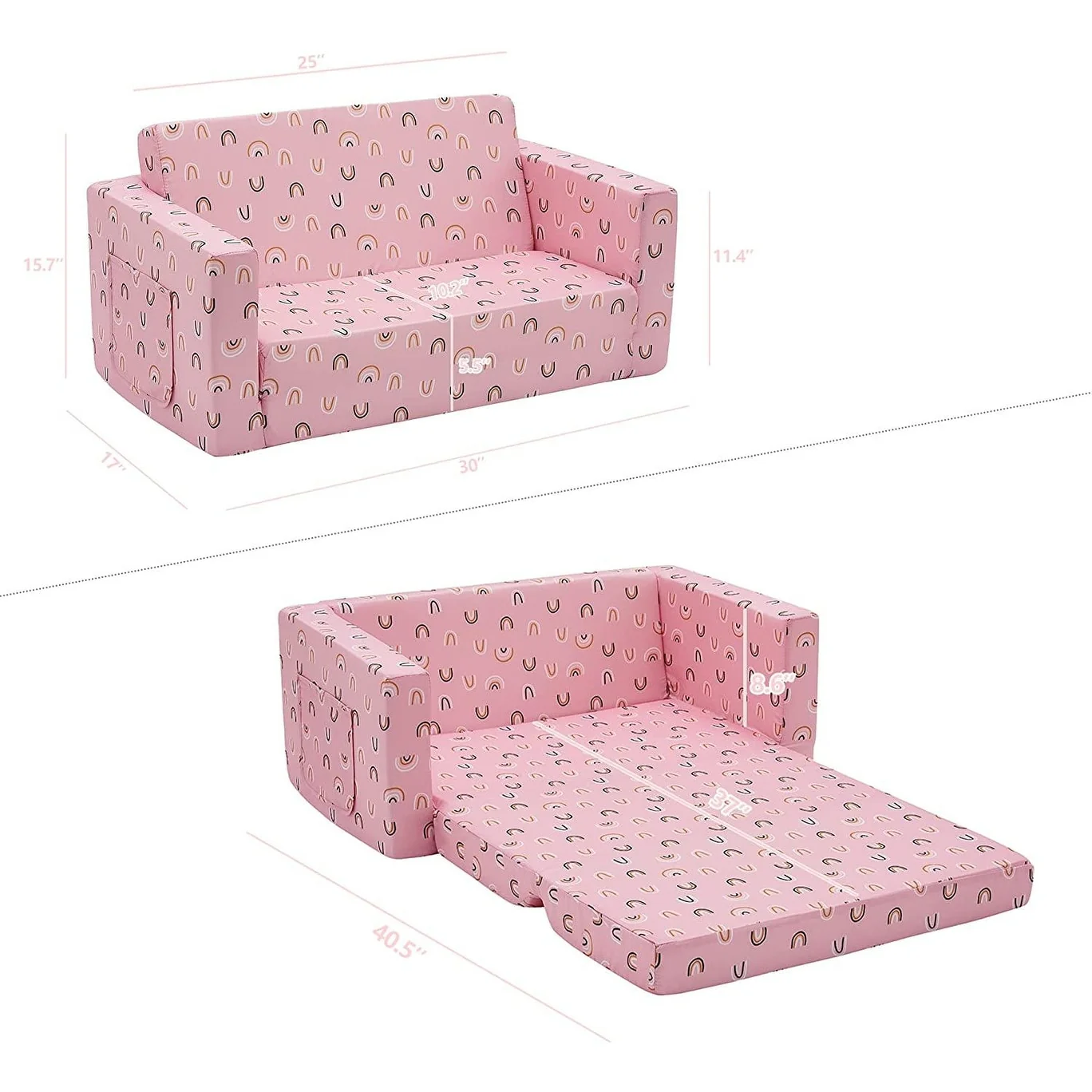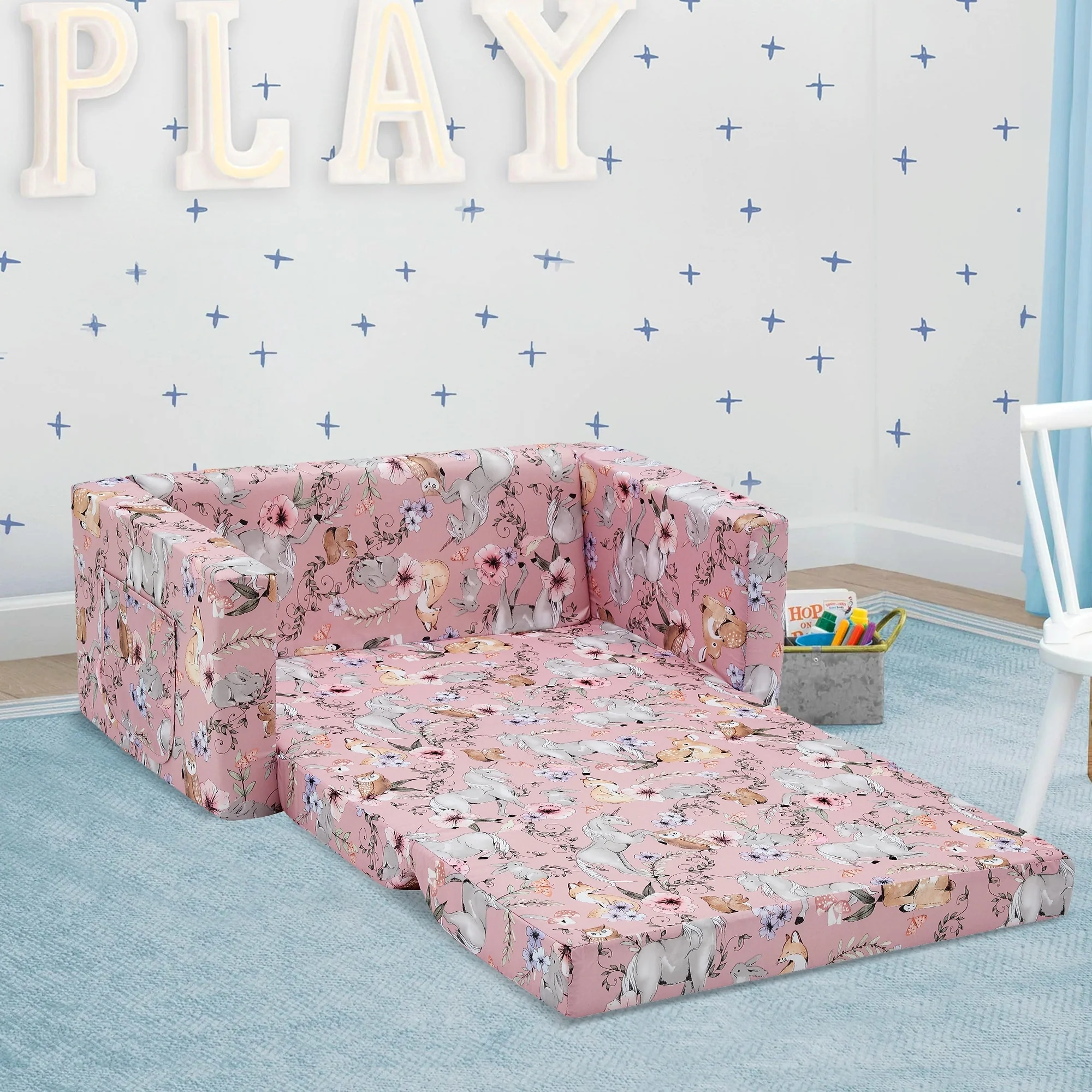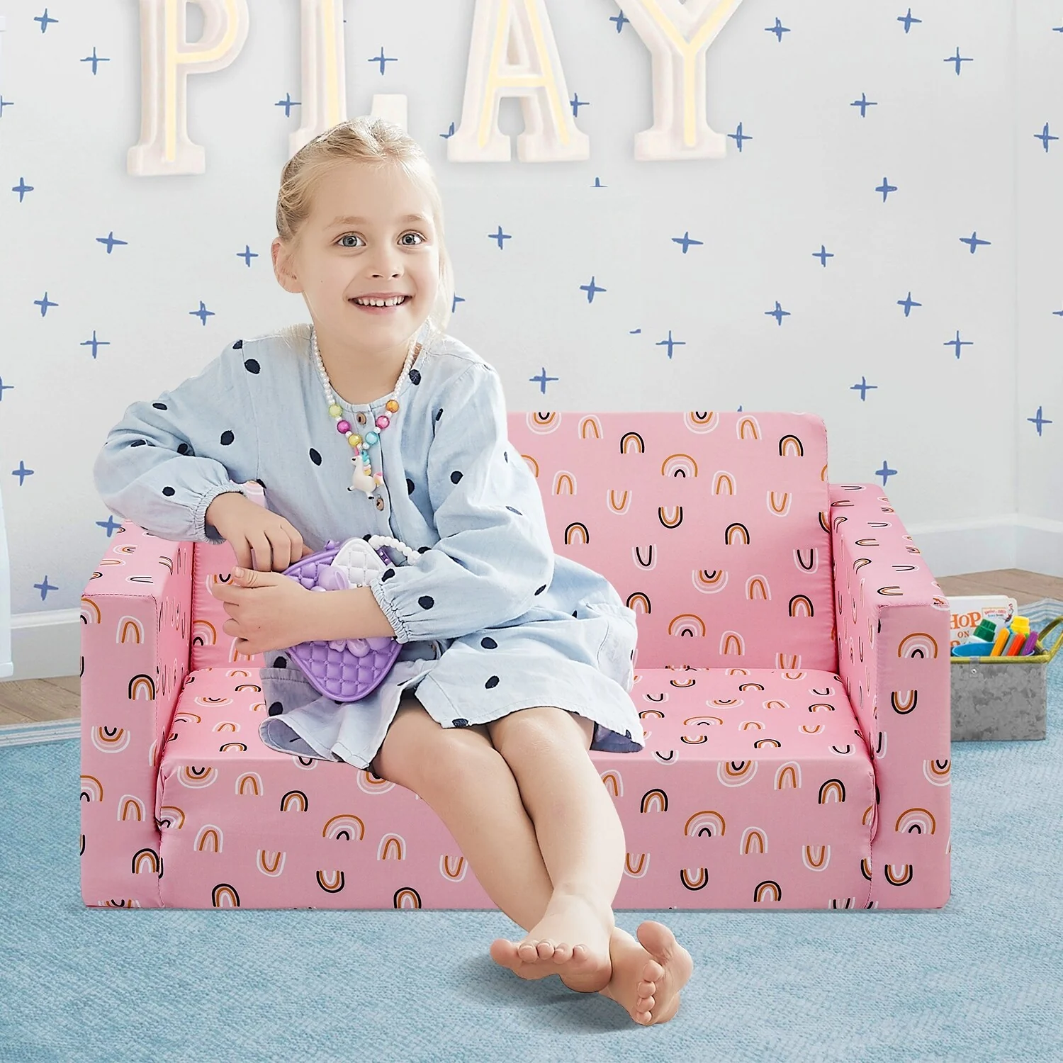 This flip-open chair converts to a lounger/sleeper. Ideal for reading, relaxing, playing, or sleeping, your child will enjoy this chair with siblings/friends.