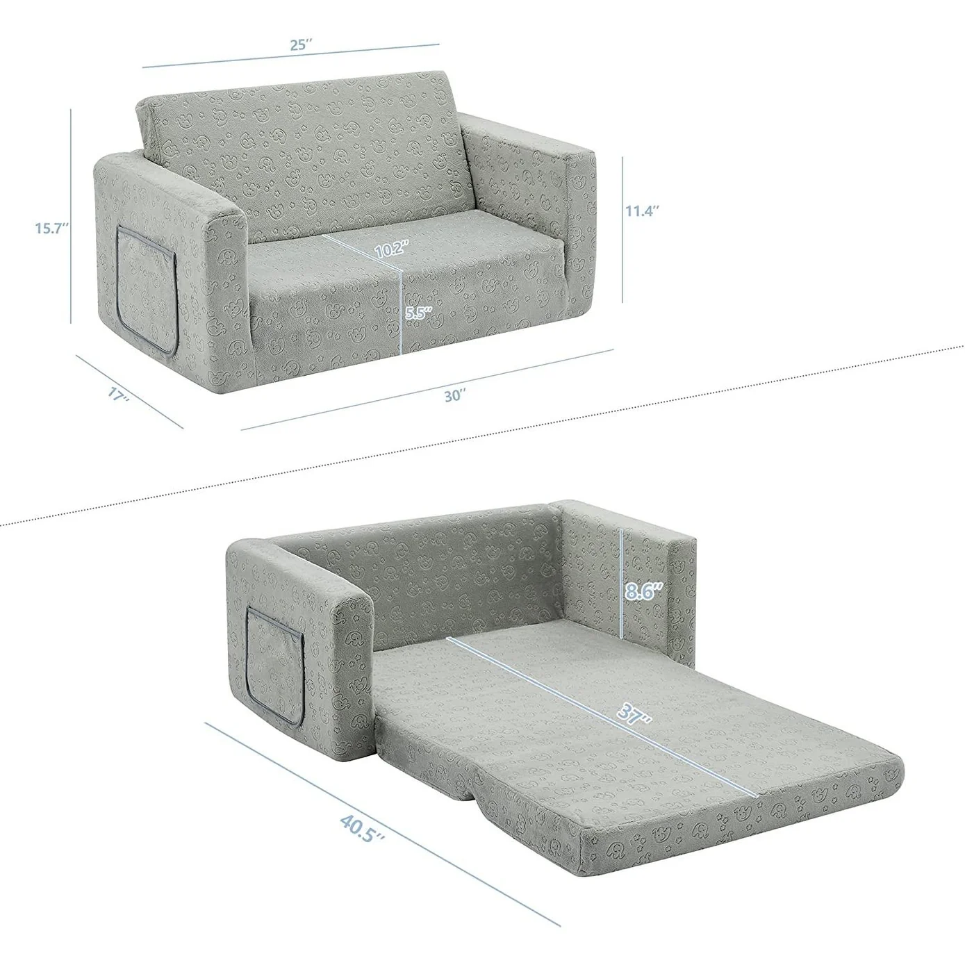 This flip-open chair converts to a lounger/sleeper. Ideal for reading, relaxing, playing, or sleeping, your child will enjoy this chair with siblings/friends.
