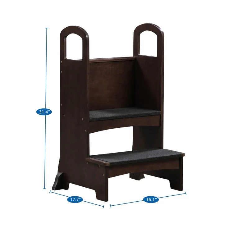 - Step Stool: Color: Espresso. Dimensions: 17.7'D x 16.1'W x 31.4'H