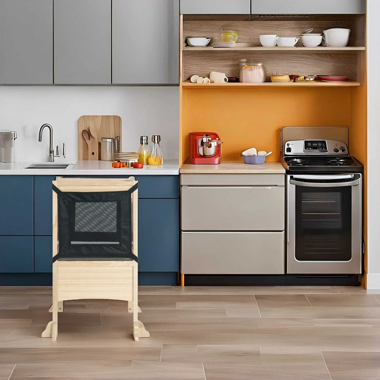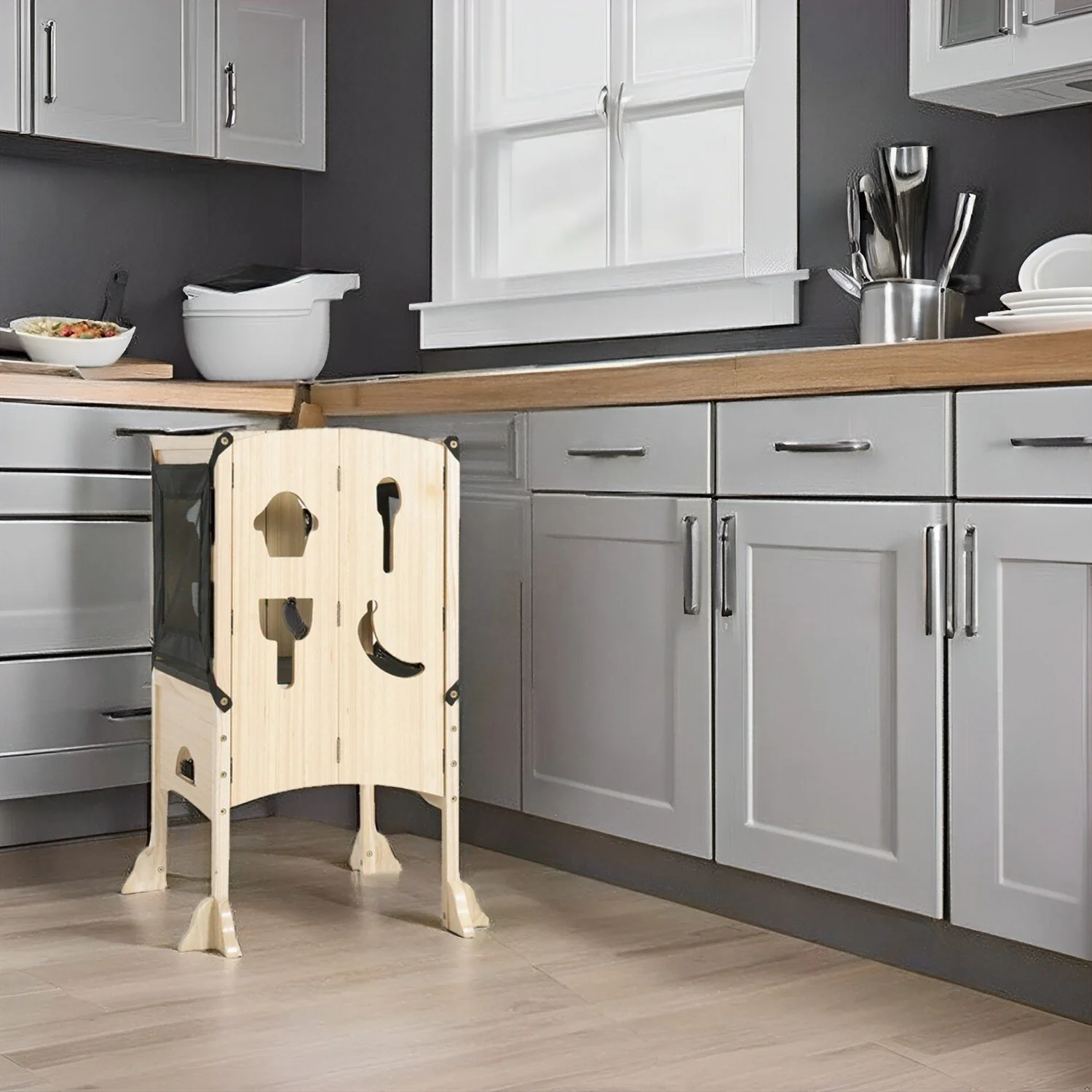 - Non-Slip Surface: The platform features a non-slip surface, providing a secure foothold for your child. This added safety feature prevents slips and ensures stability. The shorter front foot design helps children reach the countertop with ease, and the half-moon-shaped foot hole makes stepping up effortless.