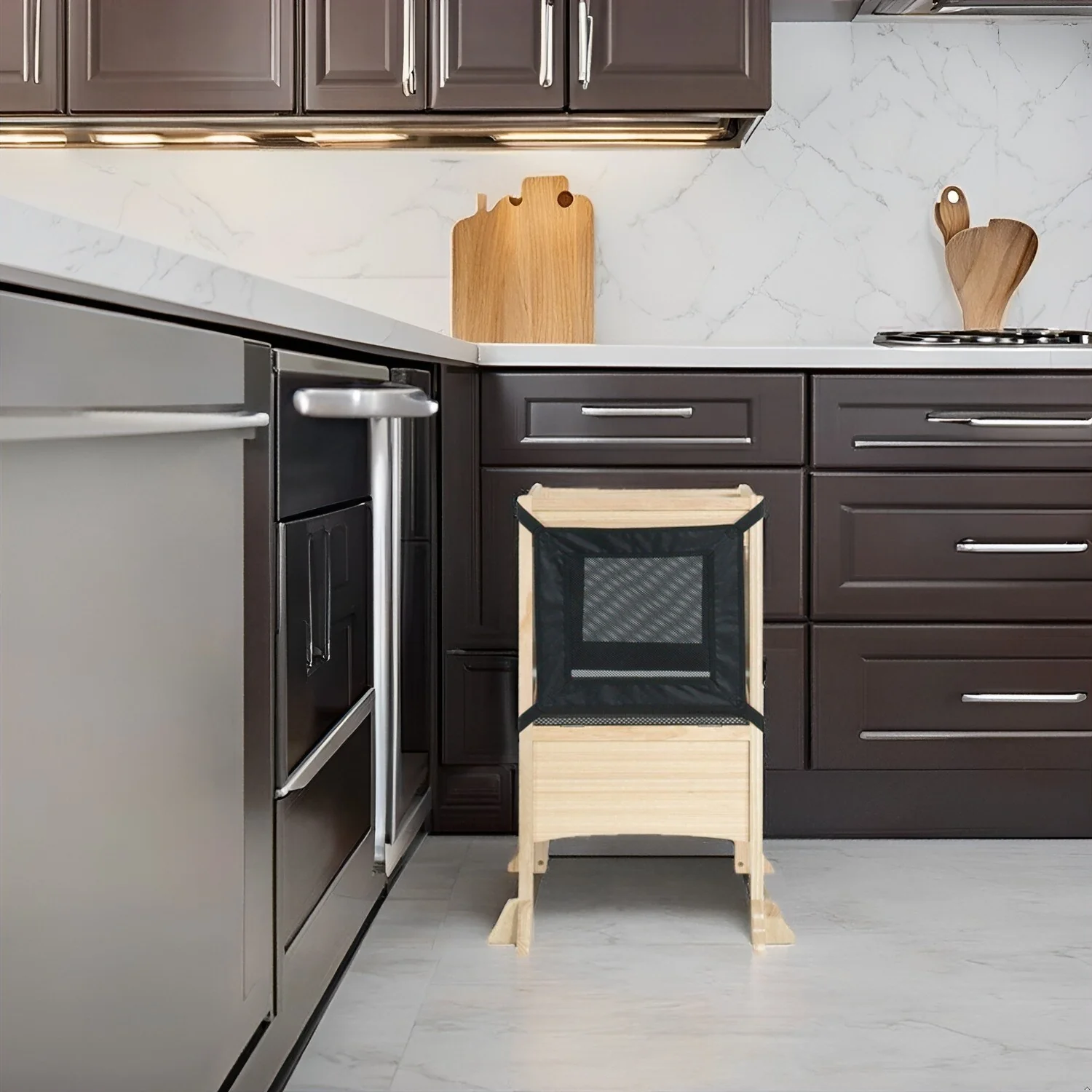 - Portable and Adorable: Our kids' kitchen step stools are crafted for easy storage when not in use. Their compact, space-saving design makes them ideal for small kitchens or for taking on trips, conveniently tucking away when not needed. Made from high-quality, engineered composite wood, this stool offers lasting stability and support.