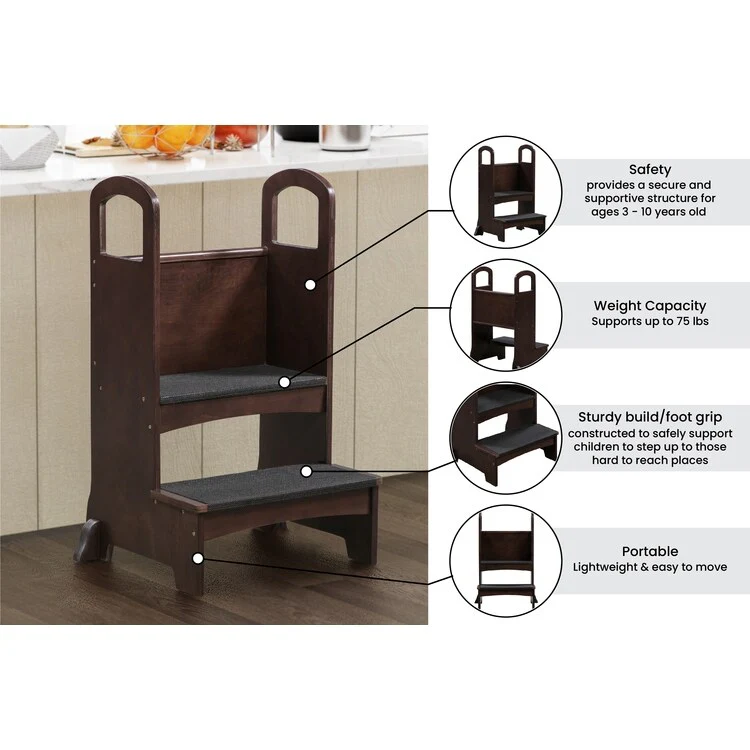 - Kids Step to It: Colors: Natural, Espresso. Dimensions: 17.7'D x 16.1'W x 31.4'H