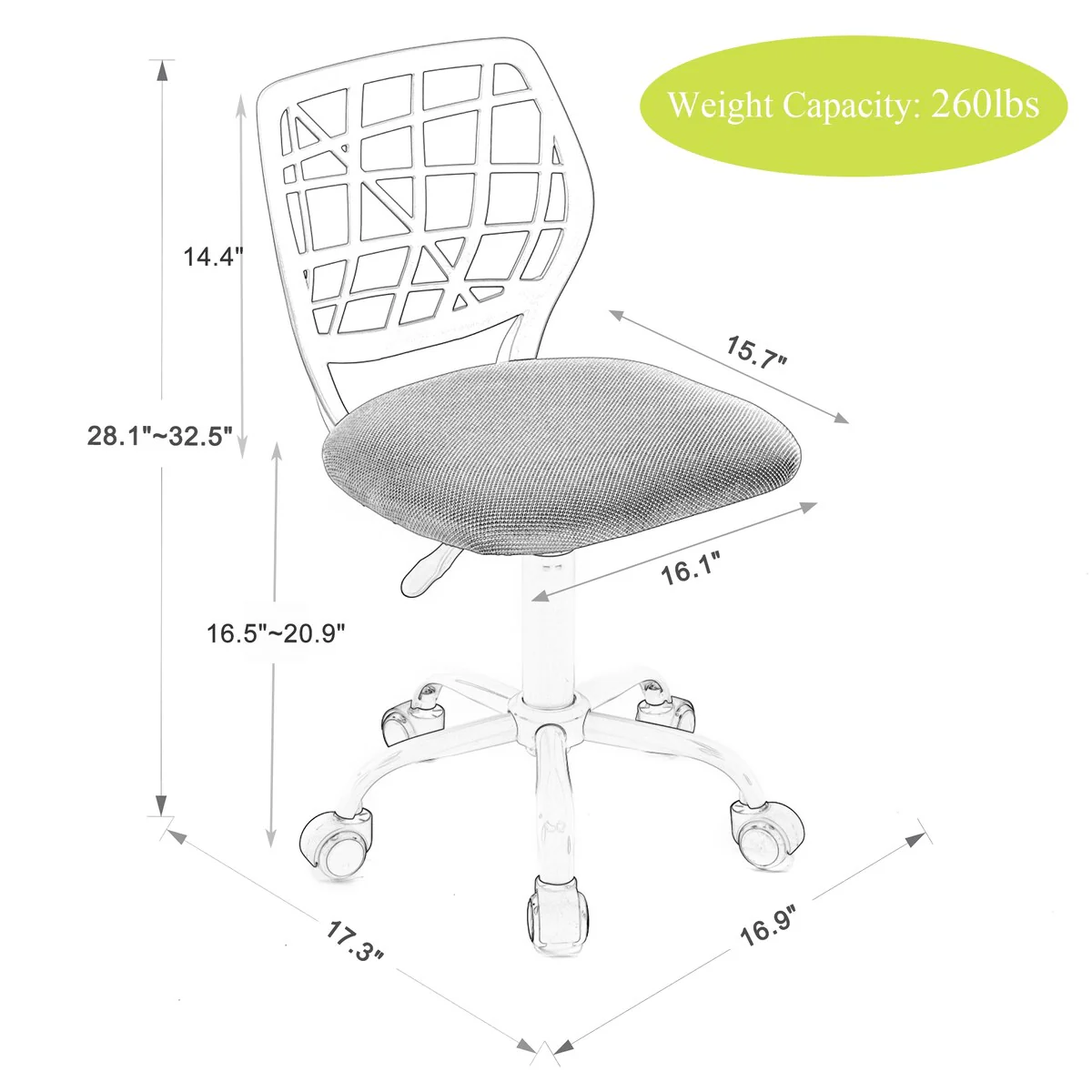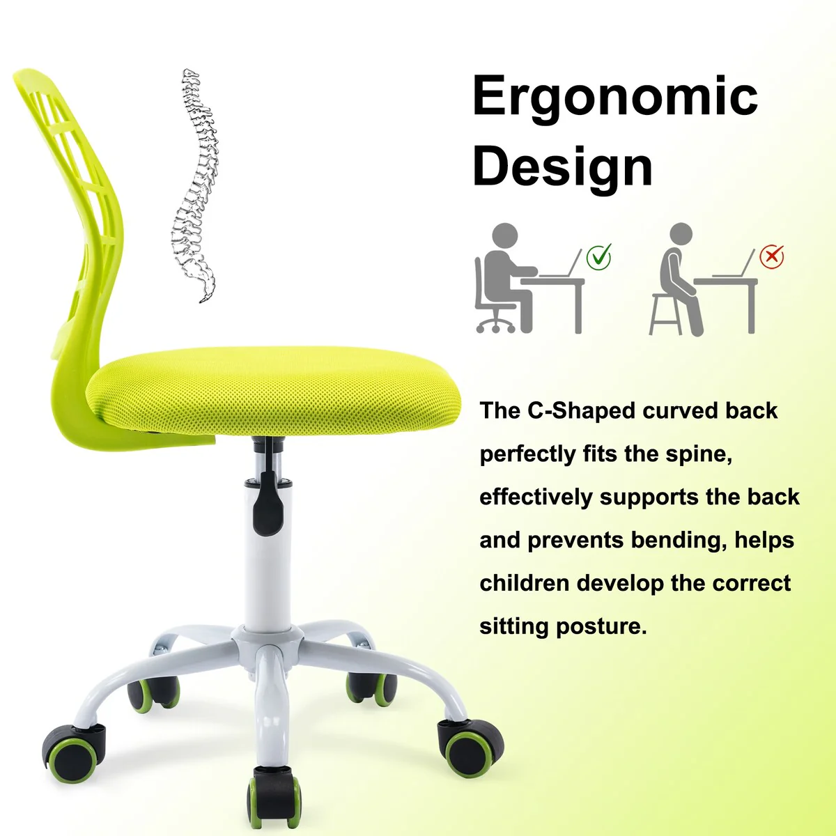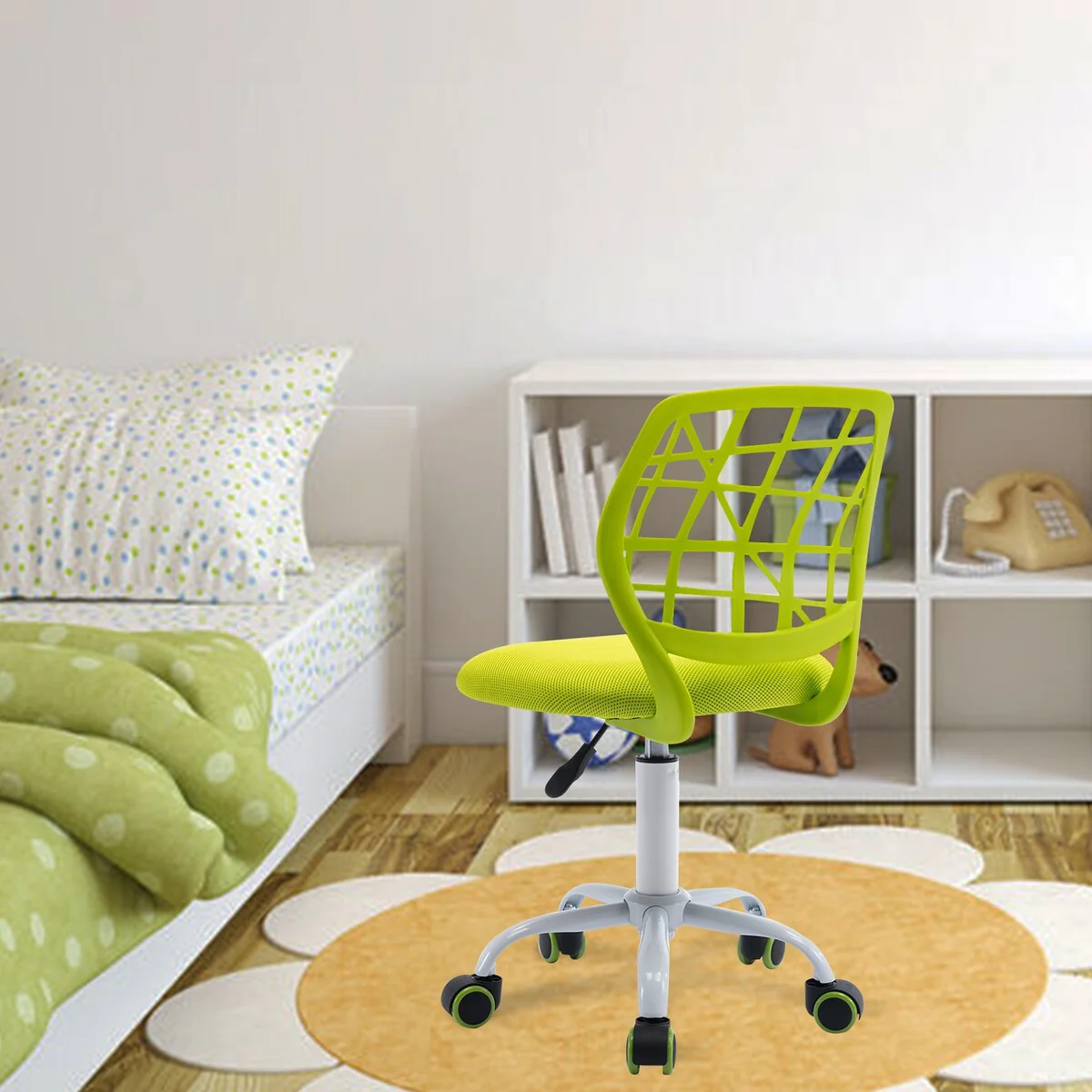 The Mesh Ergonomic Swivel Armless Kids Study Chair with Adjustable Height is the perfect addition to your child's study area. Designed for children and teens aged 3-15, this chair fits perfectly in small spaces and can even be placed under the desk without obstructing the walkway. The upgraded gas-lift enables seamless height adjustment, while the 360-degree universal rubber wheels move effortlessly without leaving any marks on the floor.