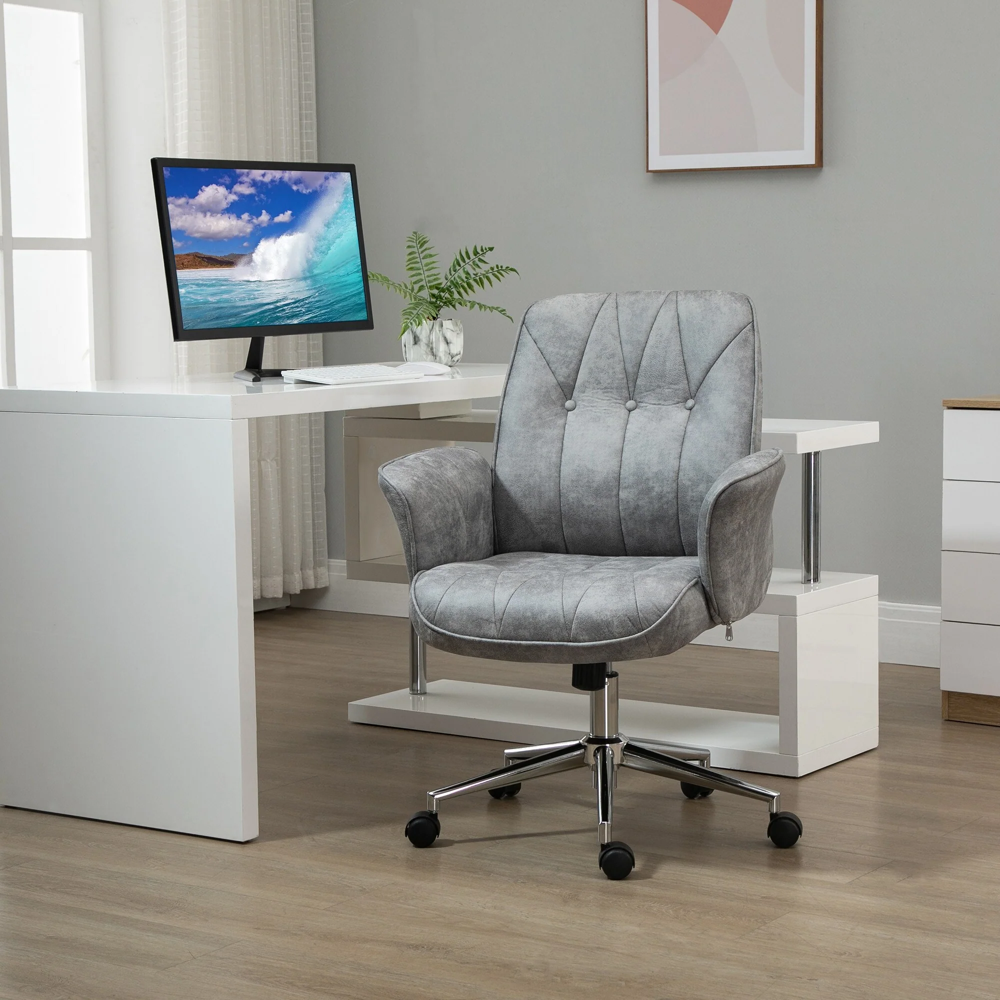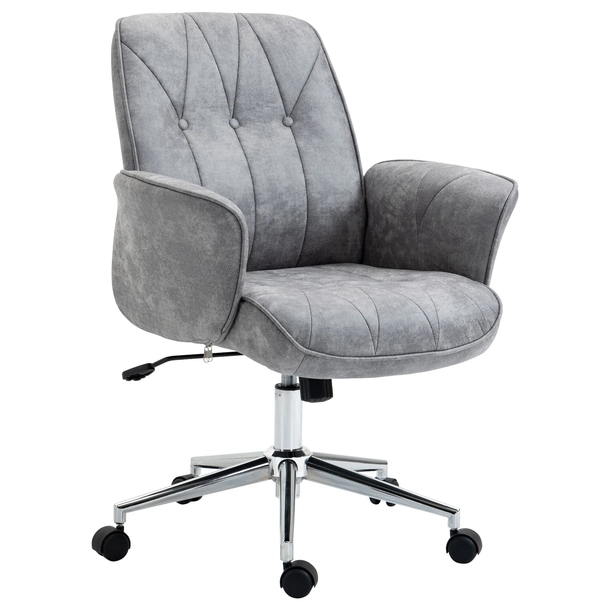 This swivel office chair combines comfort and functionality with its soft microfiber cloth upholstery, curved backrest, and thick padded cushion seat. Designed for long-lasting support, it keeps you relaxed throughout your workday. The tilt function allowsyou to lean back and relieve lumbar pressure, while the adjustable tension knob lets you customize the rocking resistance. With its adjustable seat height and 360° swivel, this chair offers easy mobility and adaptability to your workspace.