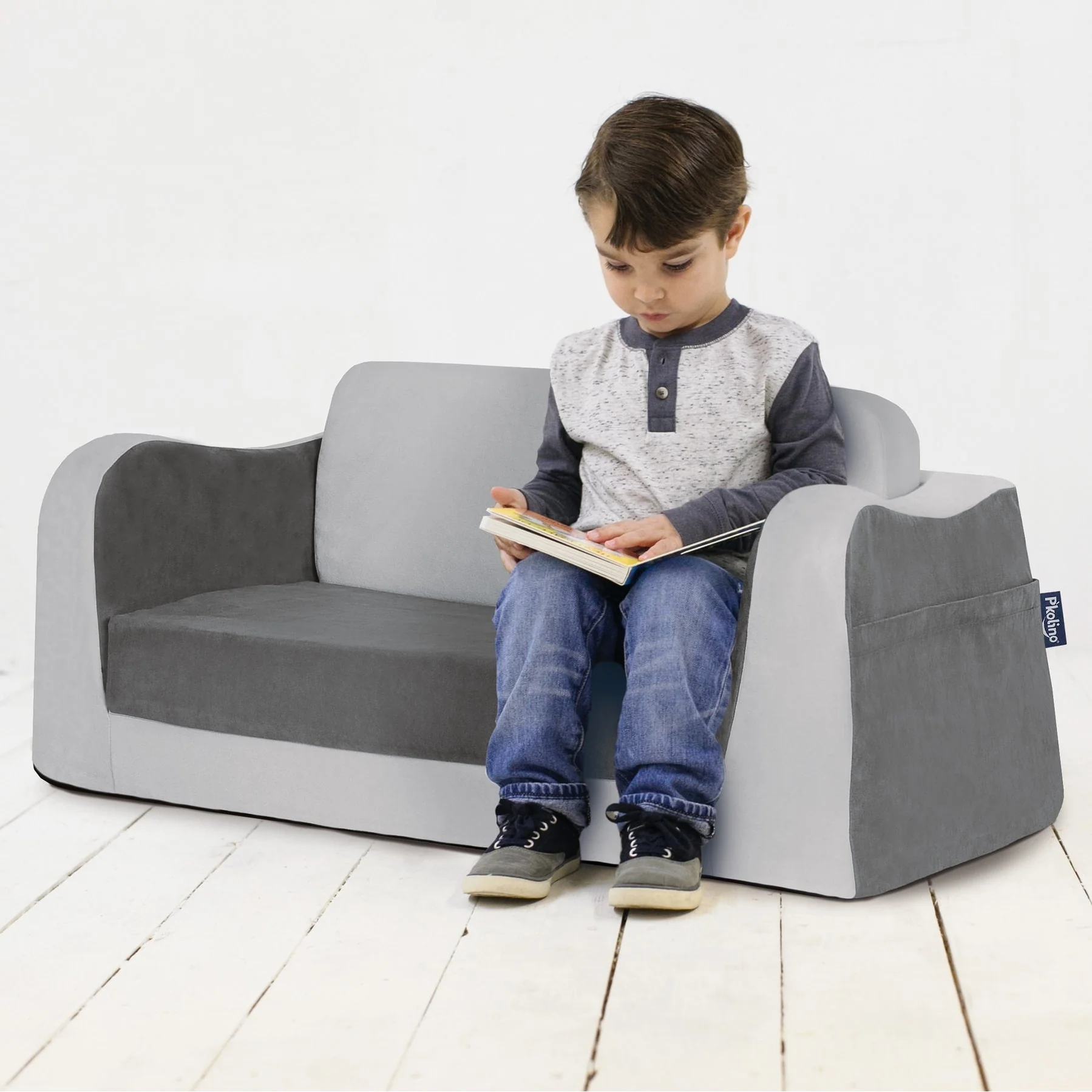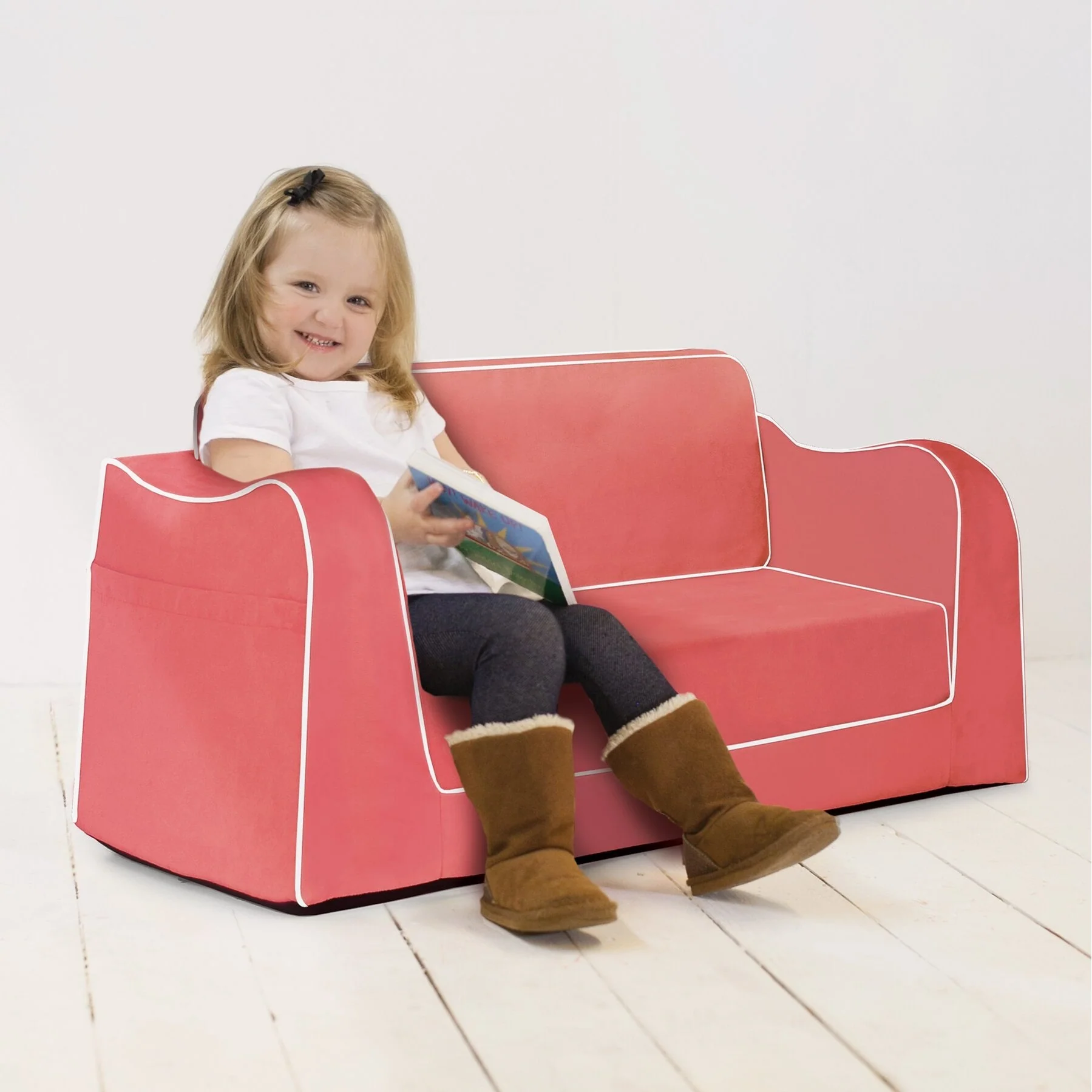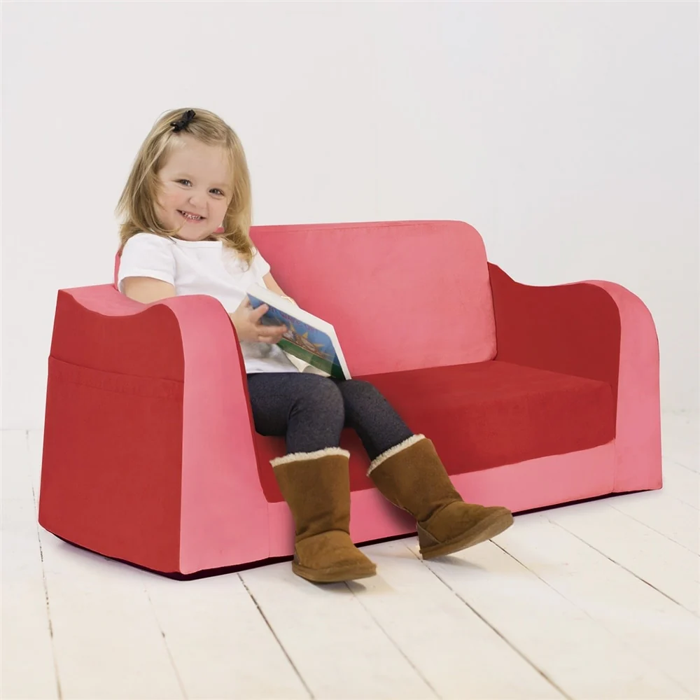 The Little Reader Sofa offers a comfortable, sturdy, and attractive seating option for kids. With its wide base and strong angular lines, this sofa is perfect for reading, relaxing, or even napping. The sofa features cozy foam and supple stain-resistant fabric, as well as book pockets and an easy-to-fold-out sleeper. Made with the highest quality materials, including premium high-density foam and microfiber upholstery, this sofa is built to last.