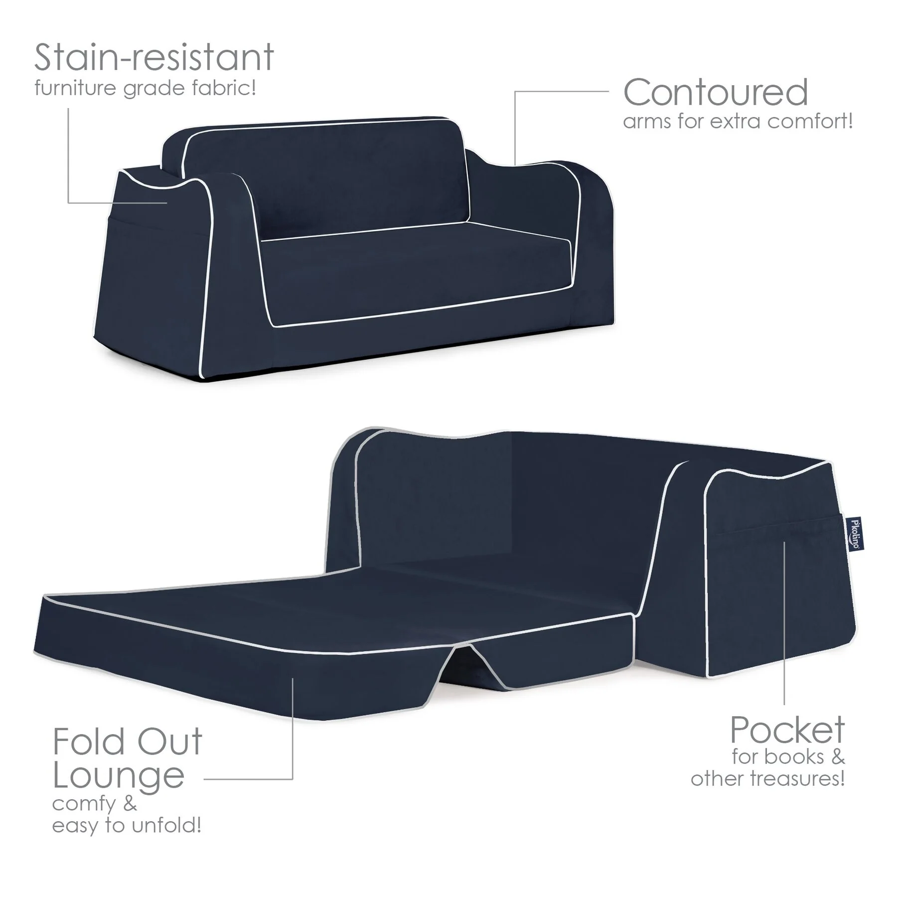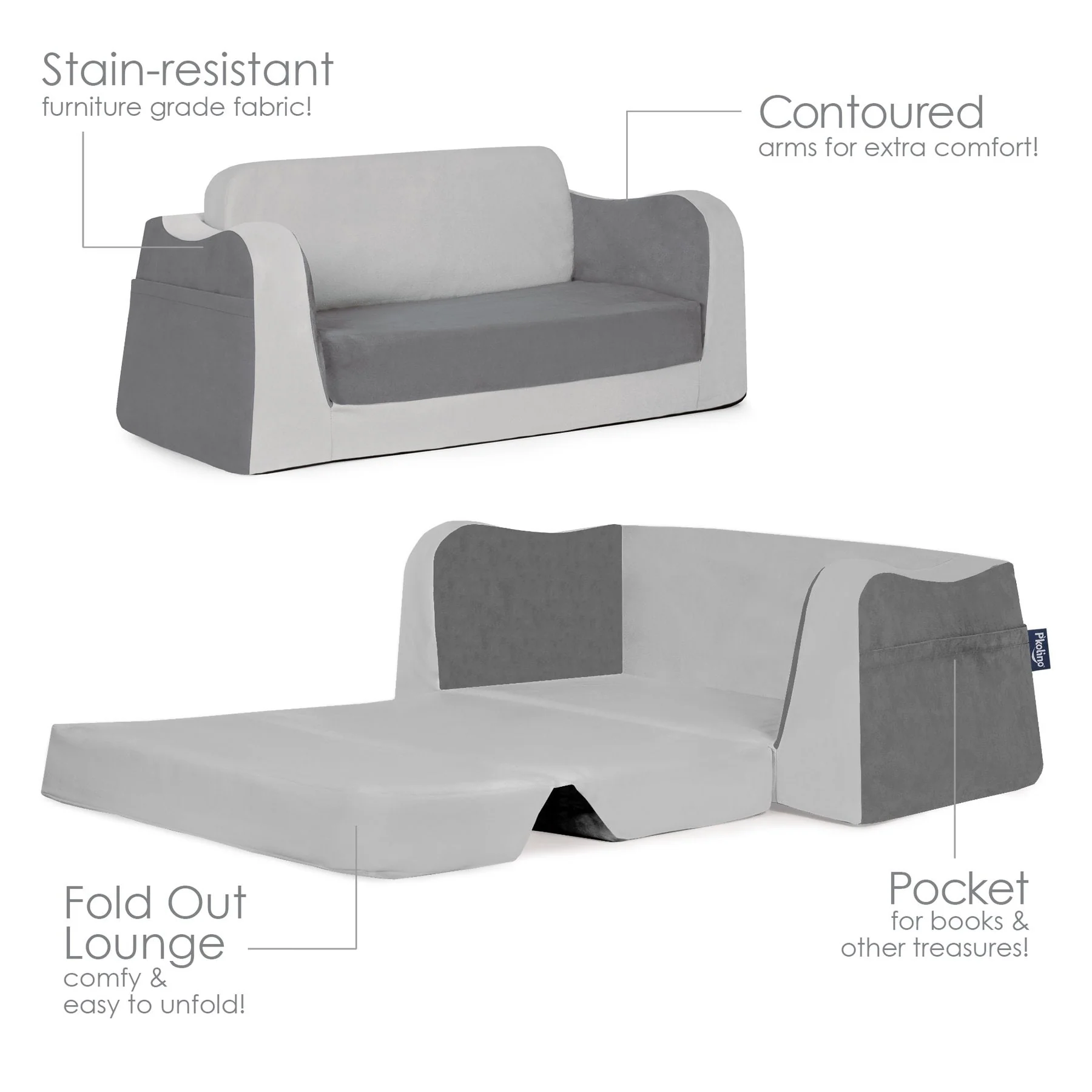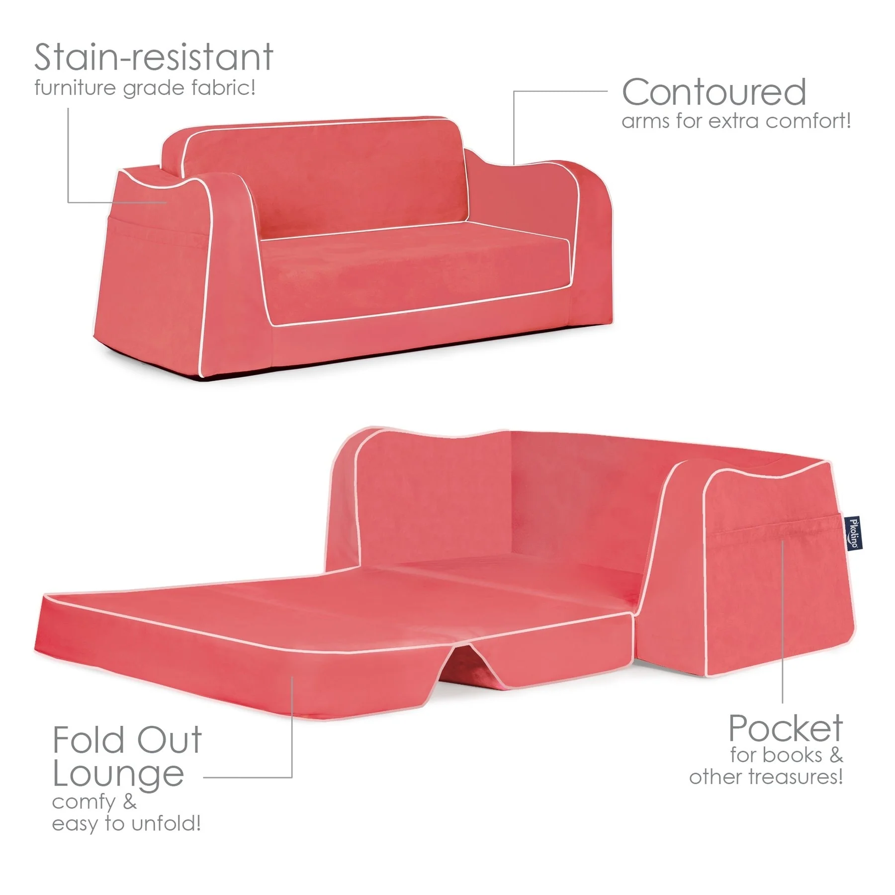 The Little Reader Sofa offers a comfortable, sturdy, and attractive seating option for kids. With its wide base and strong angular lines, this sofa is perfect for reading, relaxing, or even napping. The sofa features cozy foam and supple stain-resistant fabric, as well as book pockets and an easy-to-fold-out sleeper. Made with the highest quality materials, including premium high-density foam and microfiber upholstery, this sofa is built to last.