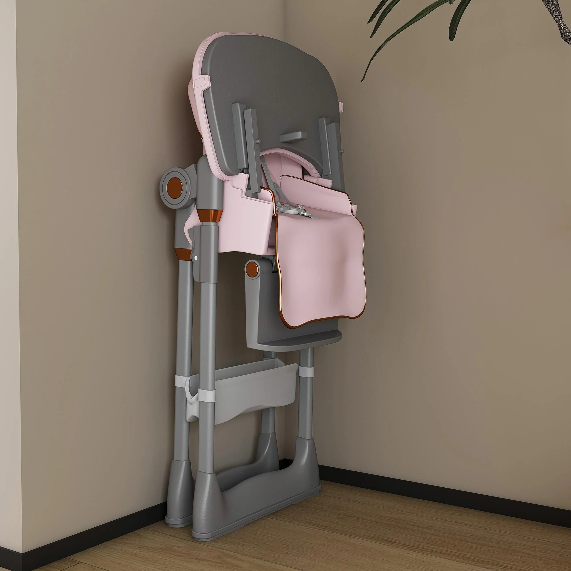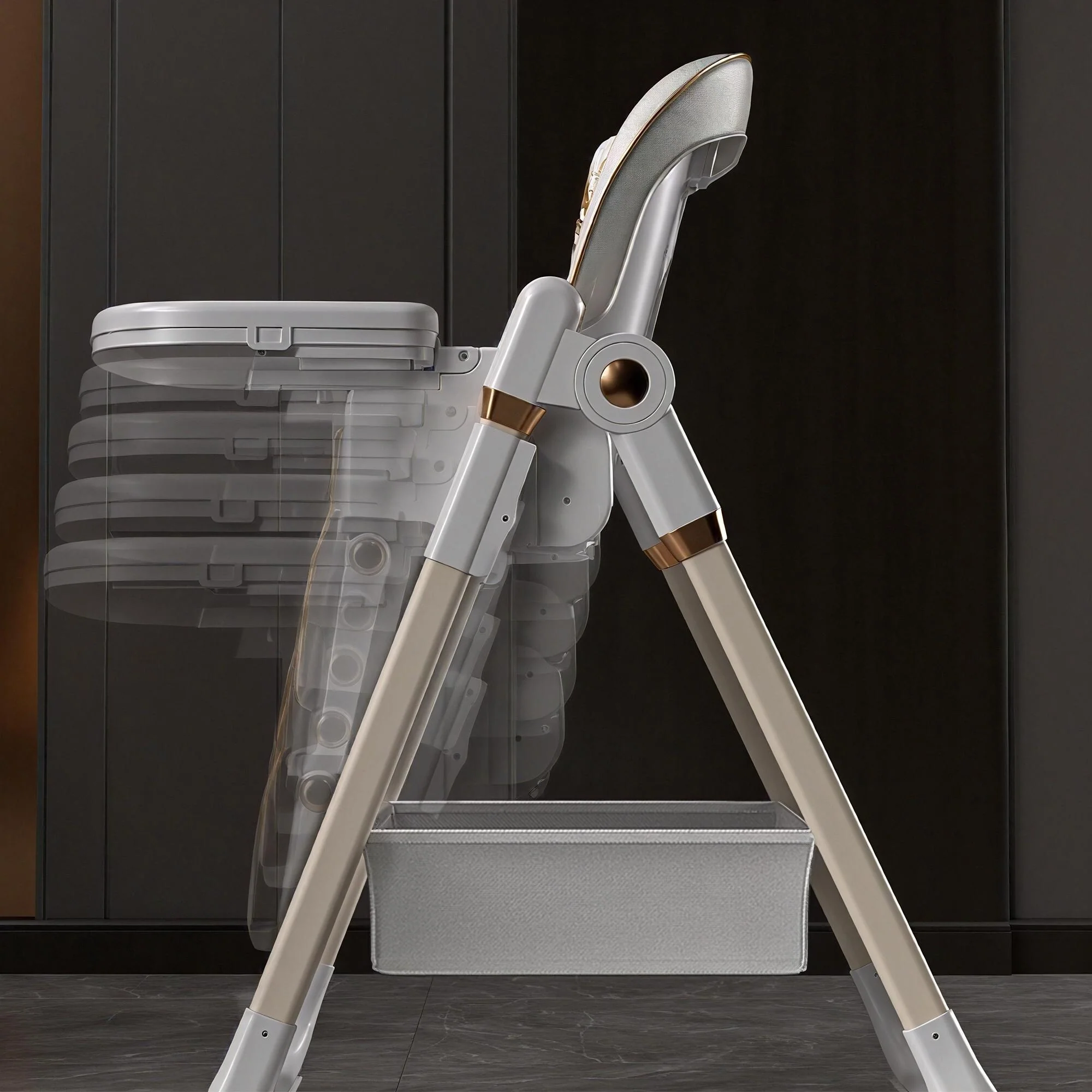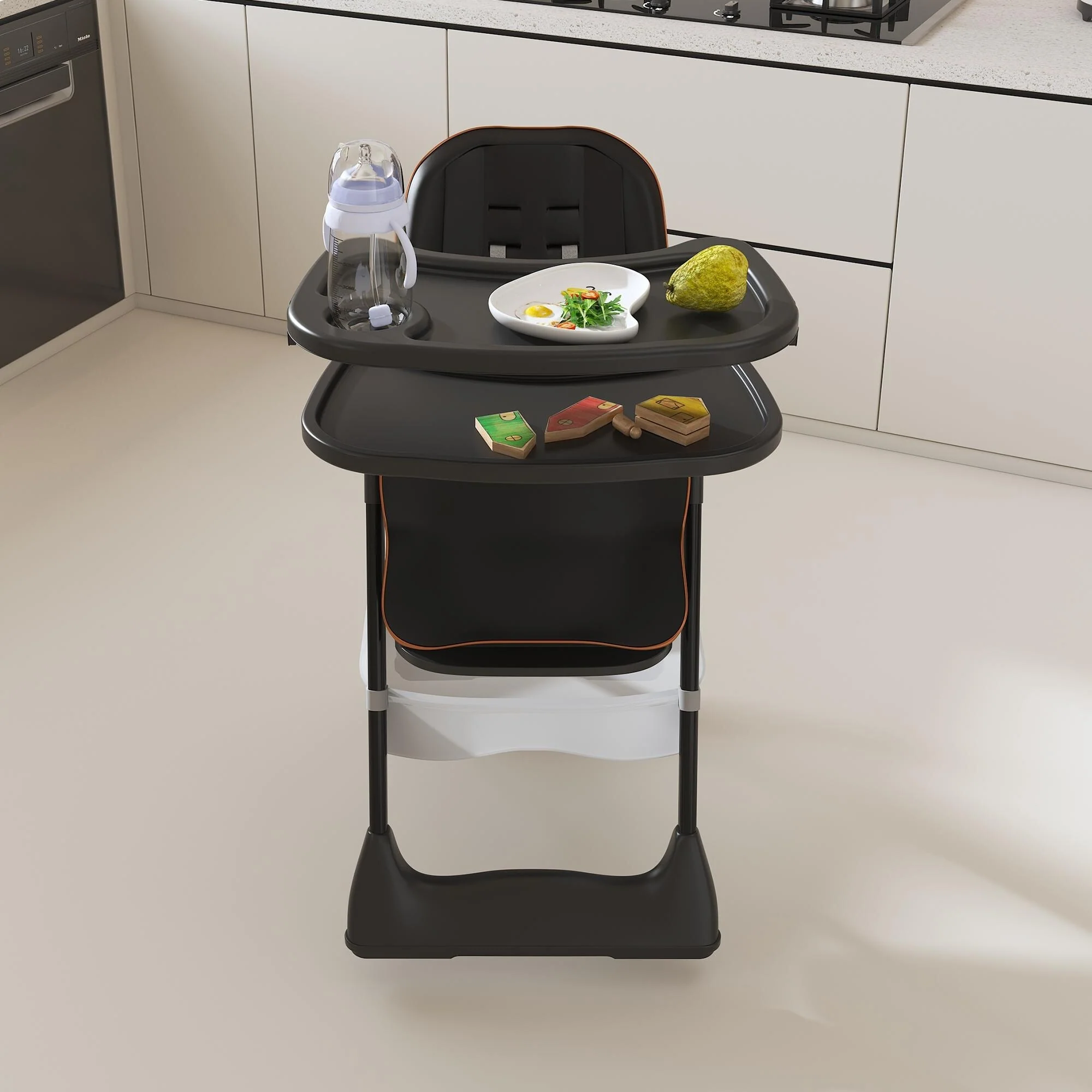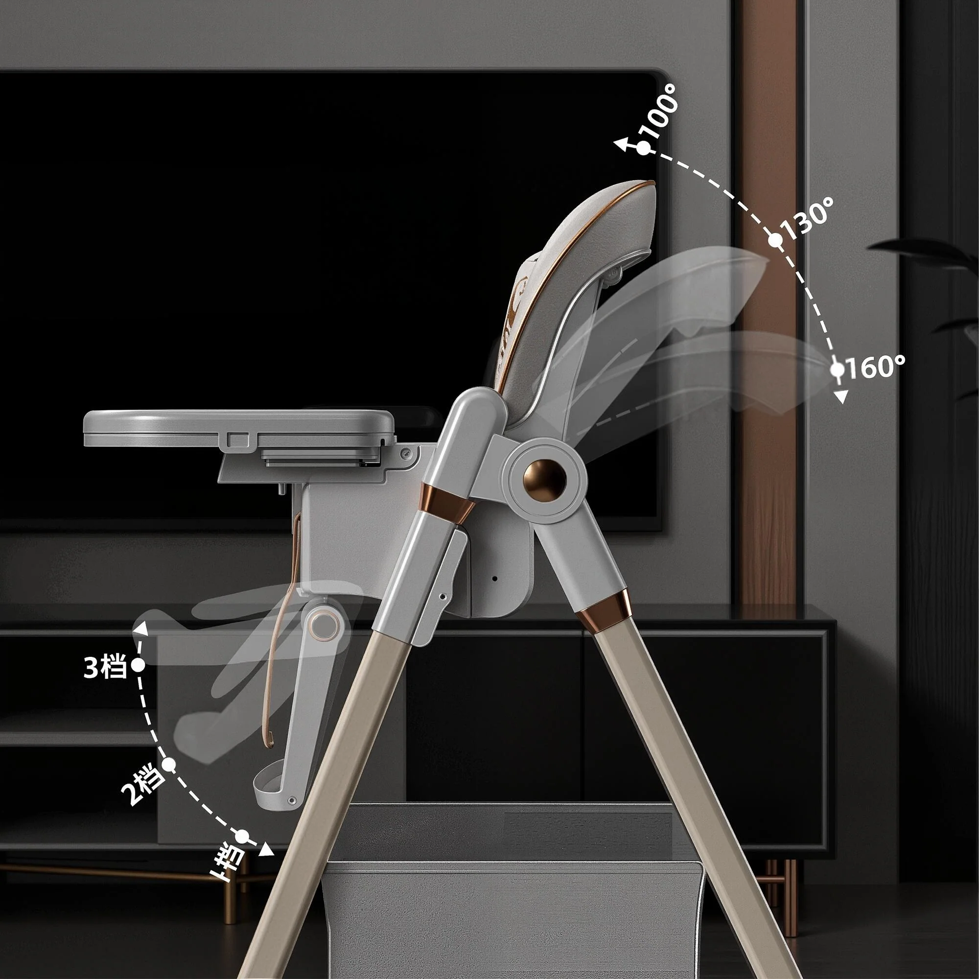 【Multi-functional Foldable Baby High Chair】- Portable dining seat for children aged 6 months to 6 years, featuring a detachable dual-layer tray (meal zone + play area) made of BPA-free food-grade PP material.